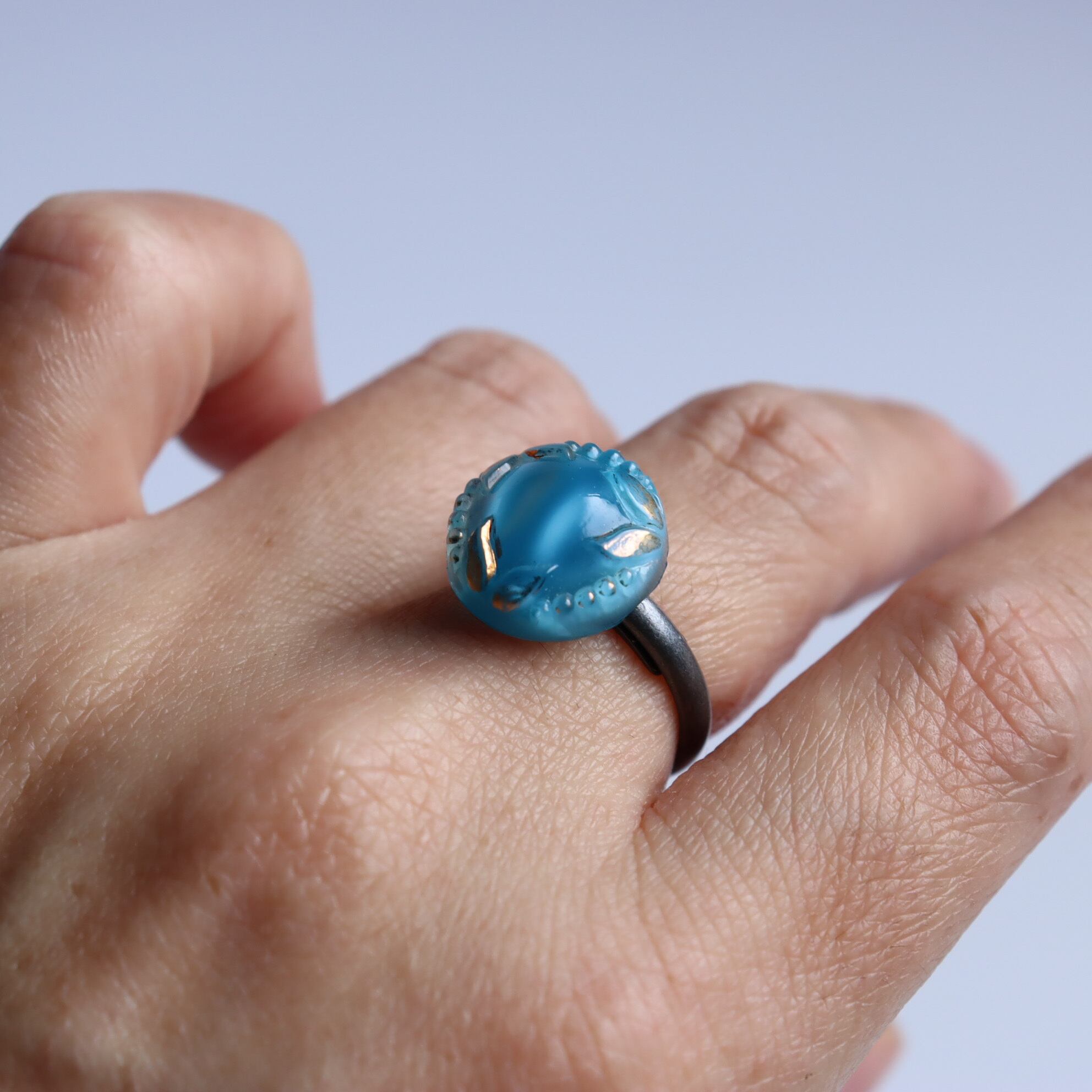 光を通して輝くガラスボタンをぜひ貴方の指で瞬かせていただきたいです。