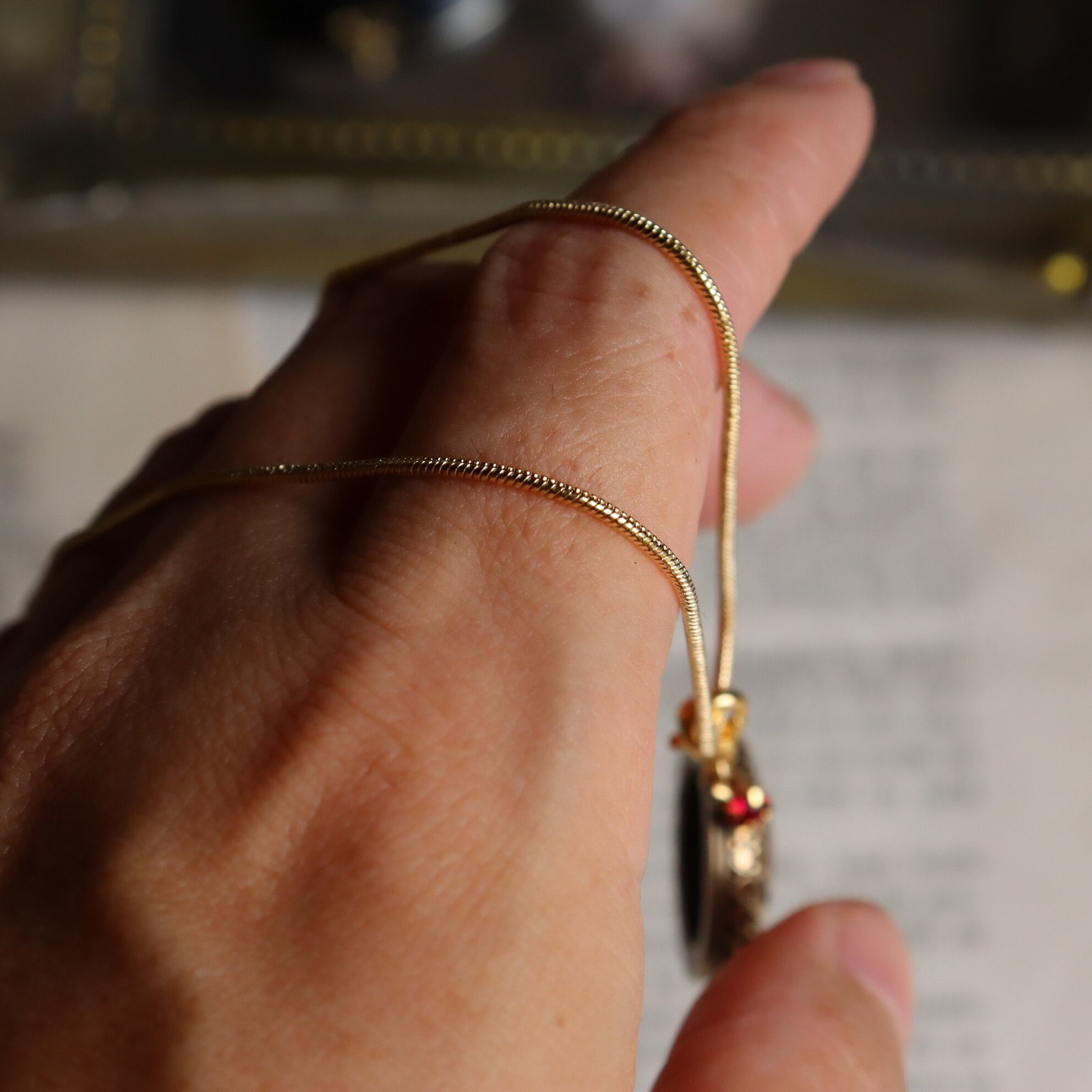 カニ爪金具を合わせており、ネックレストップは着脱可能。お手持ちのチェーンに付け替えて楽しんでいただくこともできます。付属の45cmスネークチェーンは肌になじむデザインで、シンプルなニットやワンピースにもよく映えます。