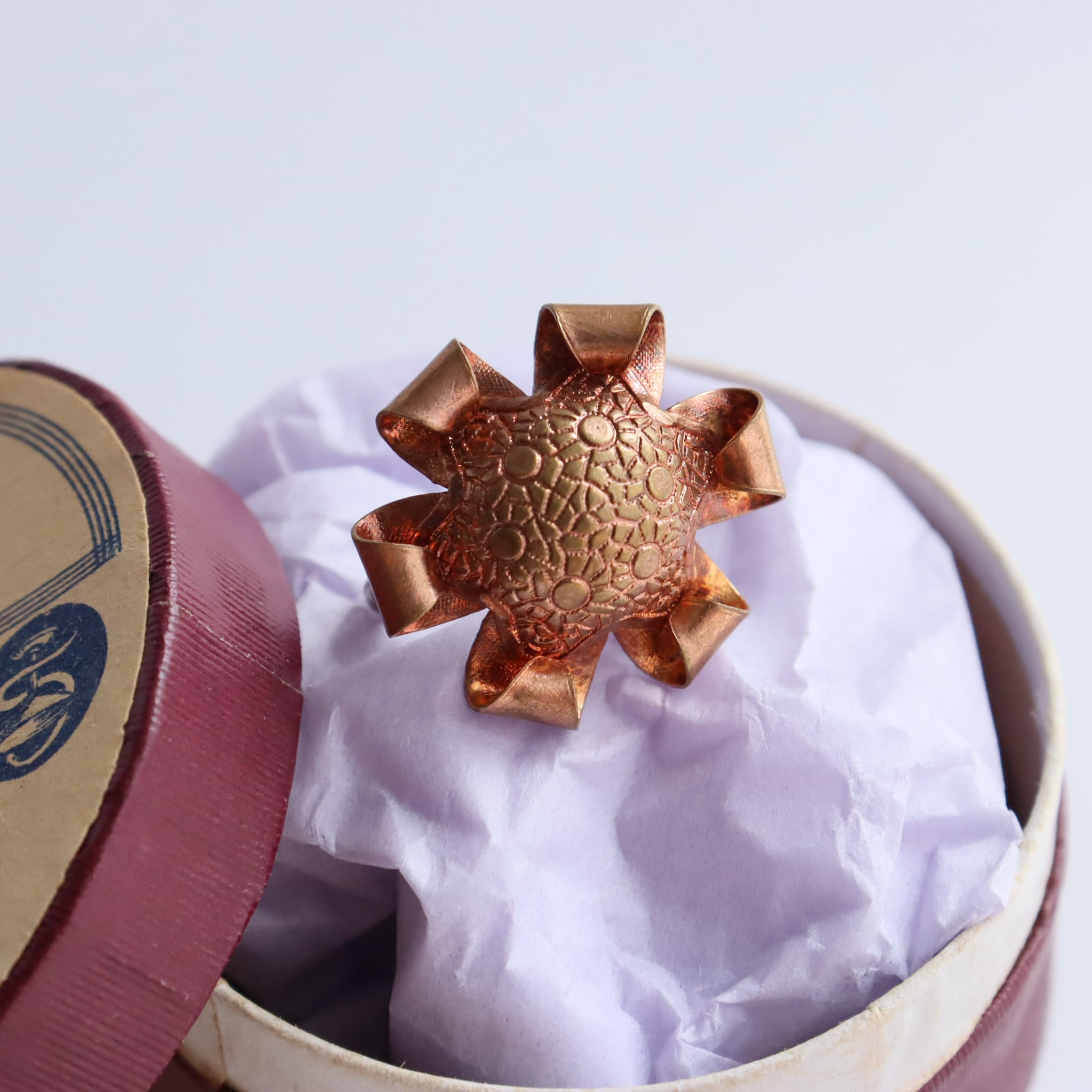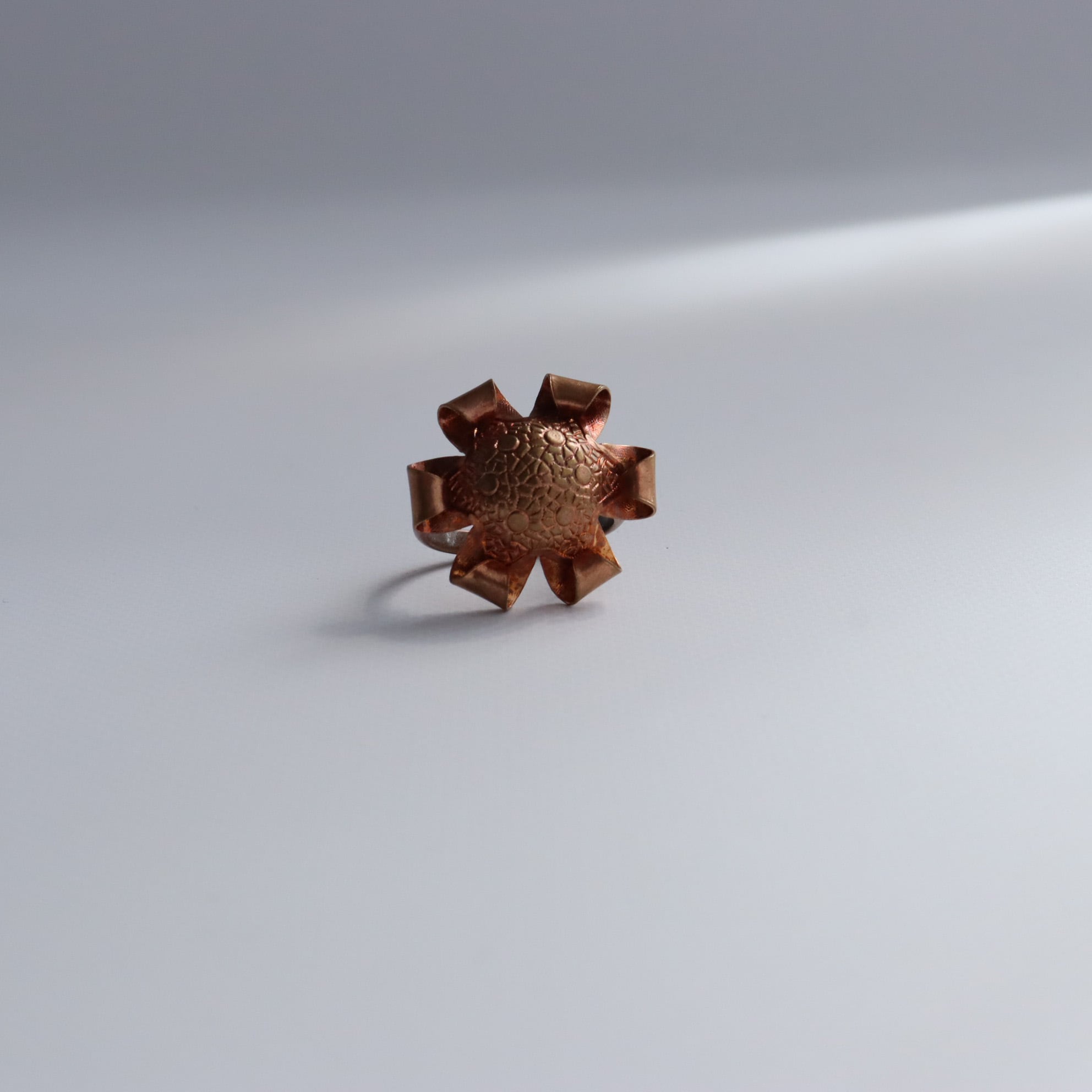 一枚の銅板から、一輪の花を切り出したかのようなデザイン。