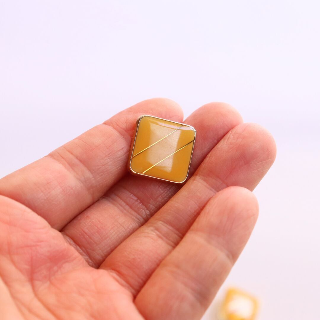 フランス製ビンテージボタンのピアスでお仕上げさせて頂きます