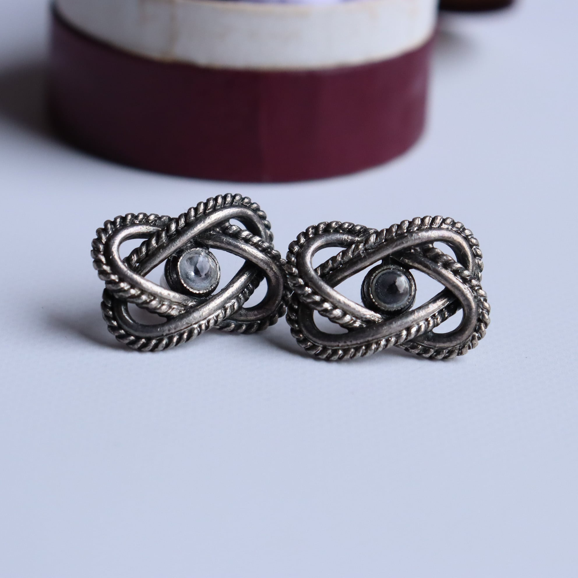 中心にはクリスタルのような装飾が施され、耳元に静かな輝きを添えてくれる一点です。