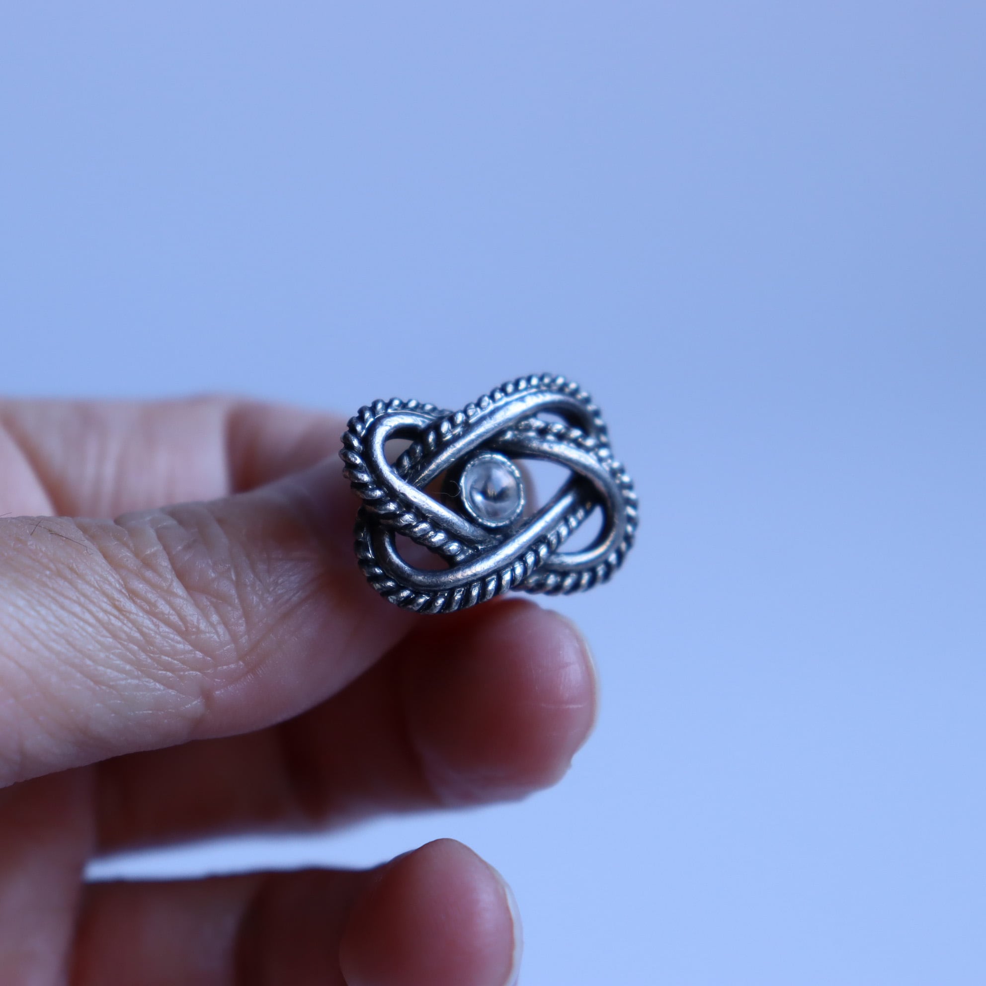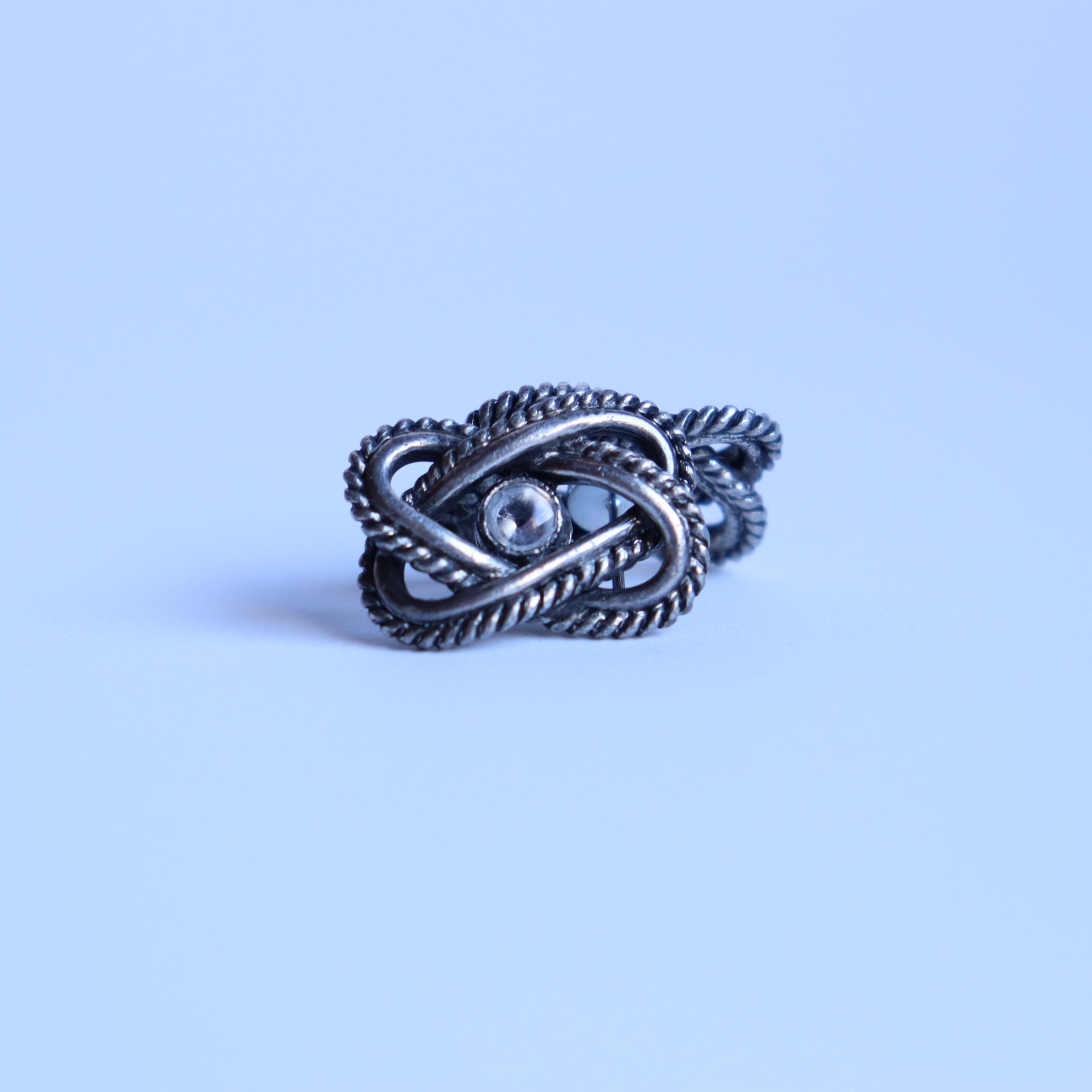 そのメタルが綱のように絡み合い、丸みを帯びた優しいデザインを描いています。