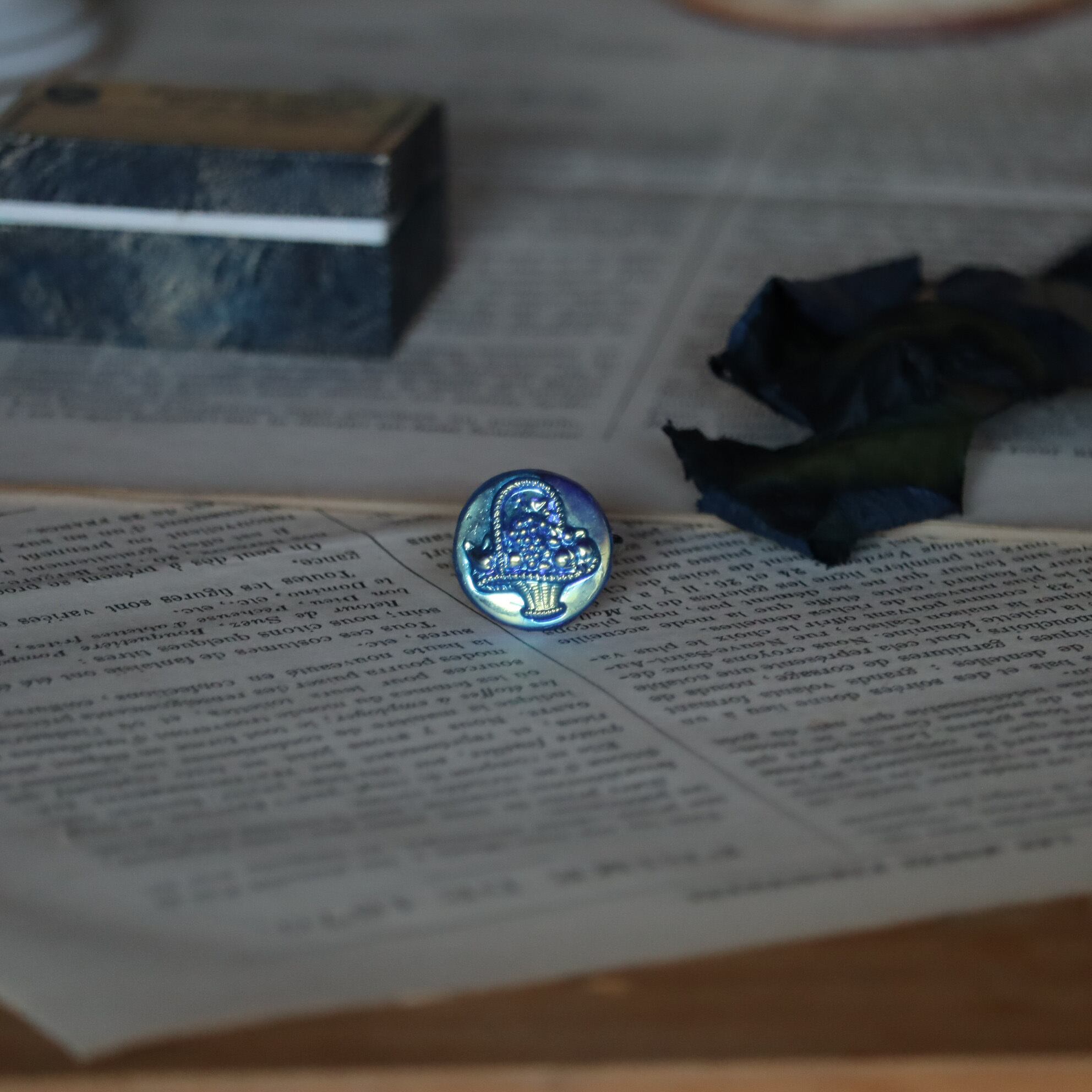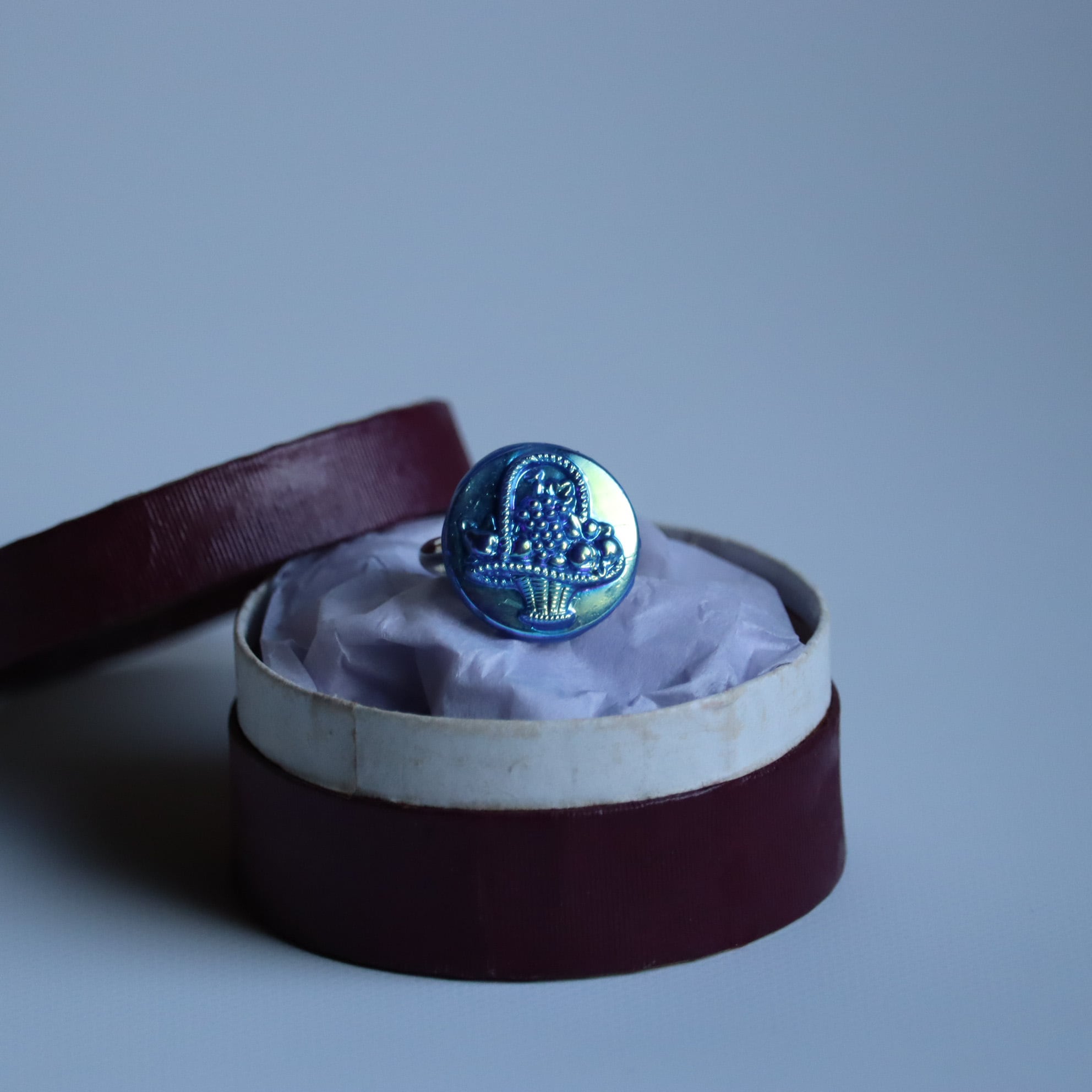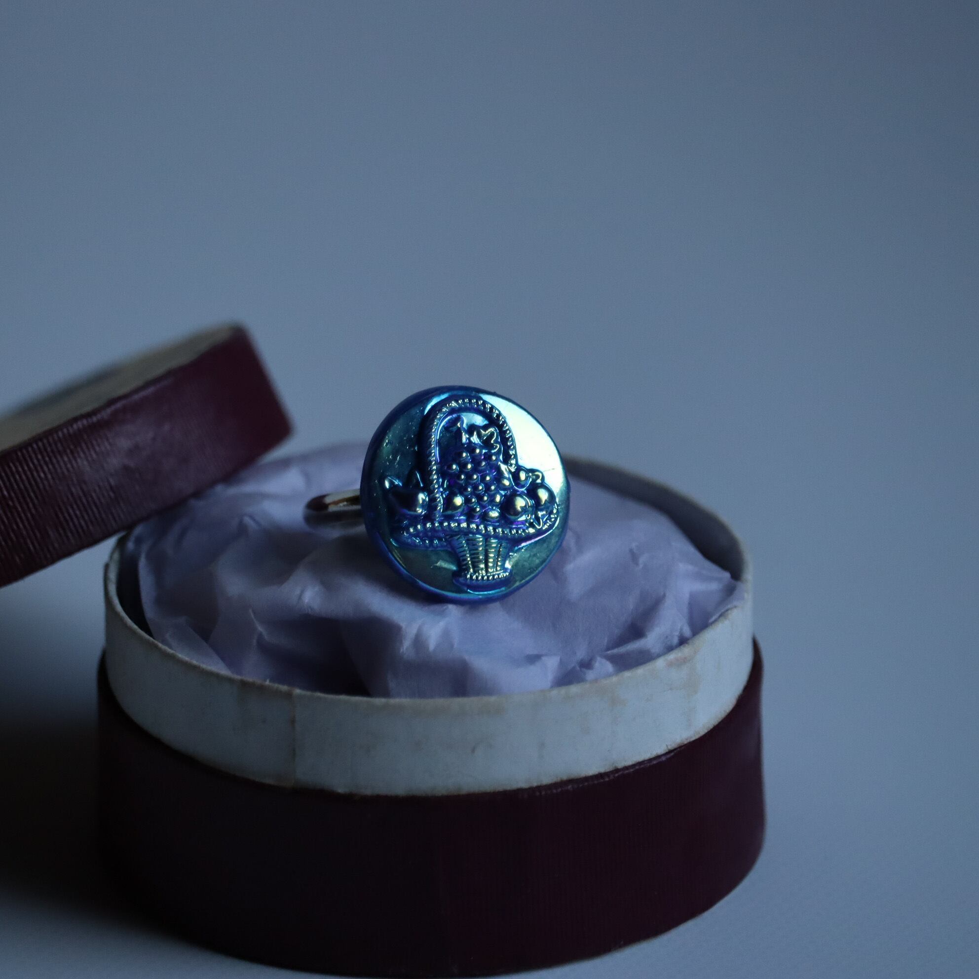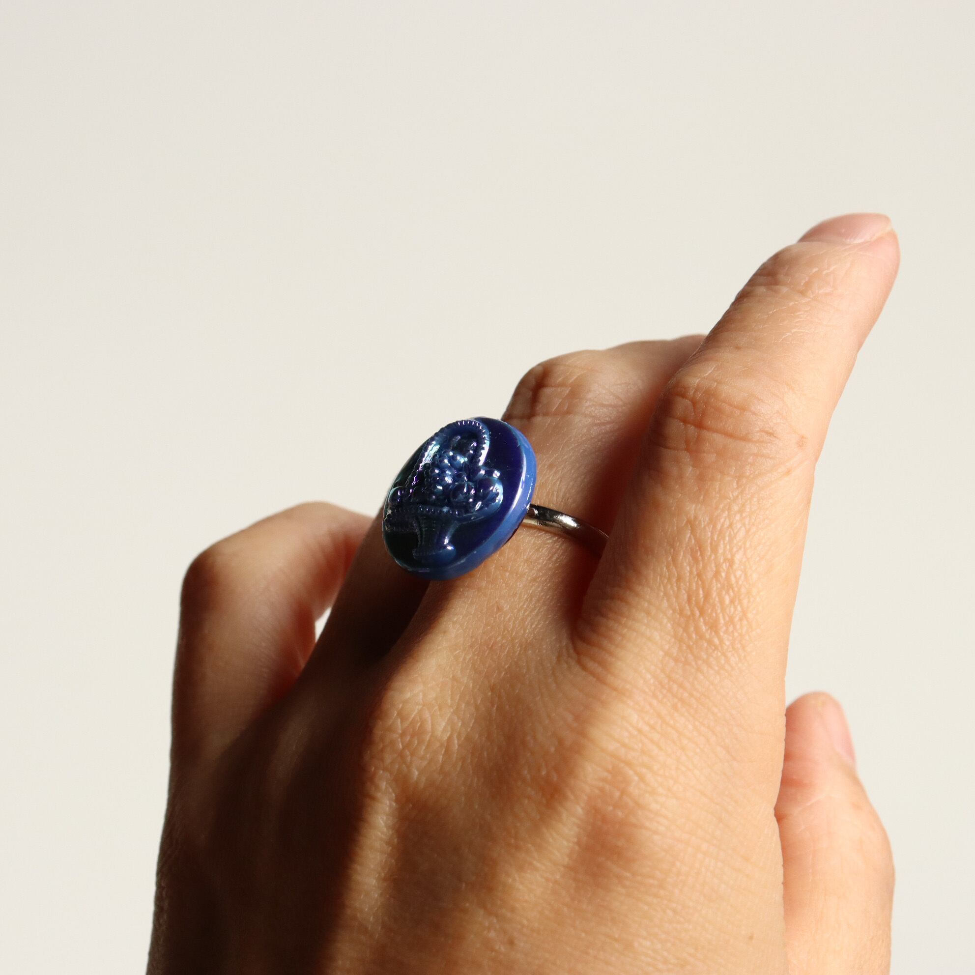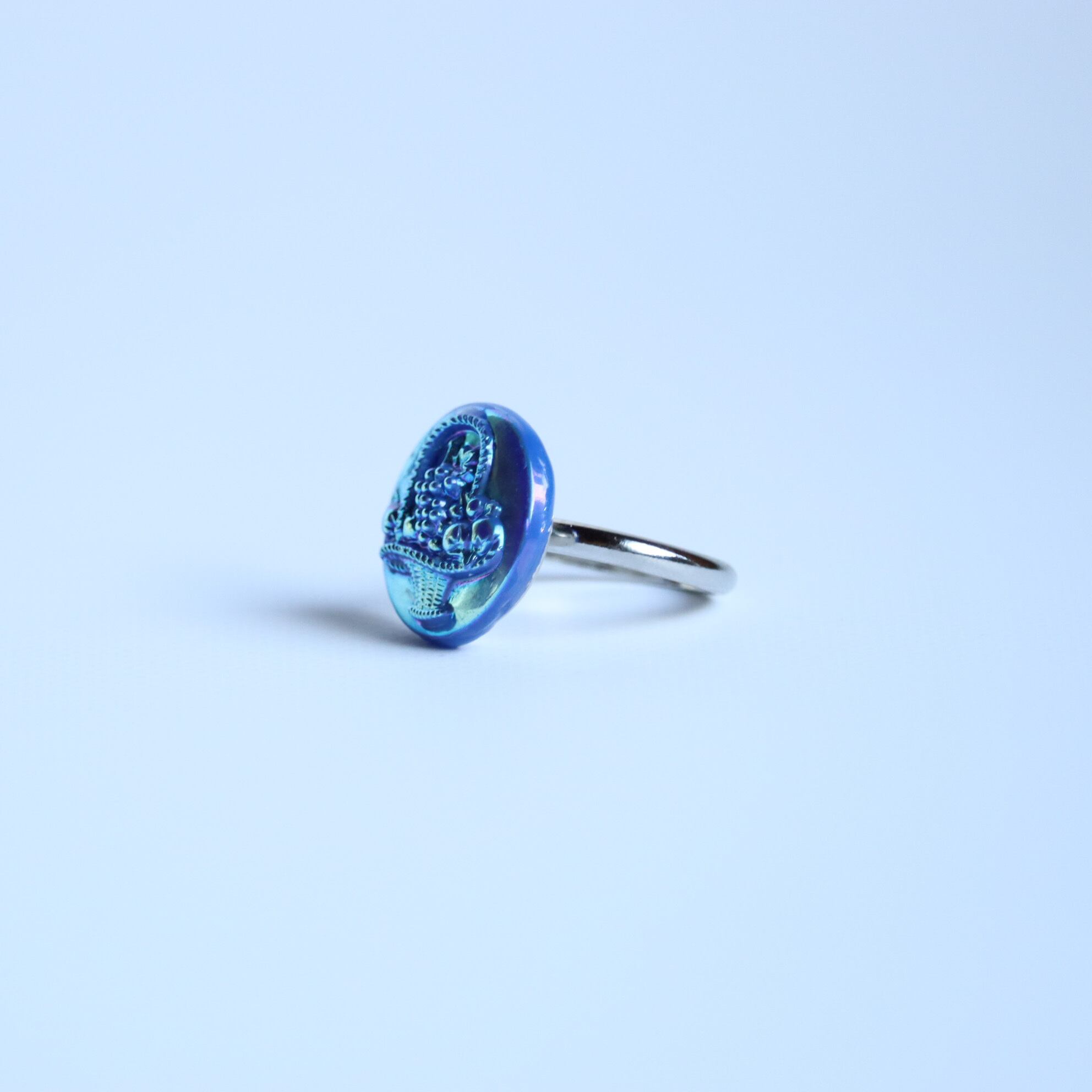 1920年、チェコで作られたアンティークガラスボタンを用いた指輪です。