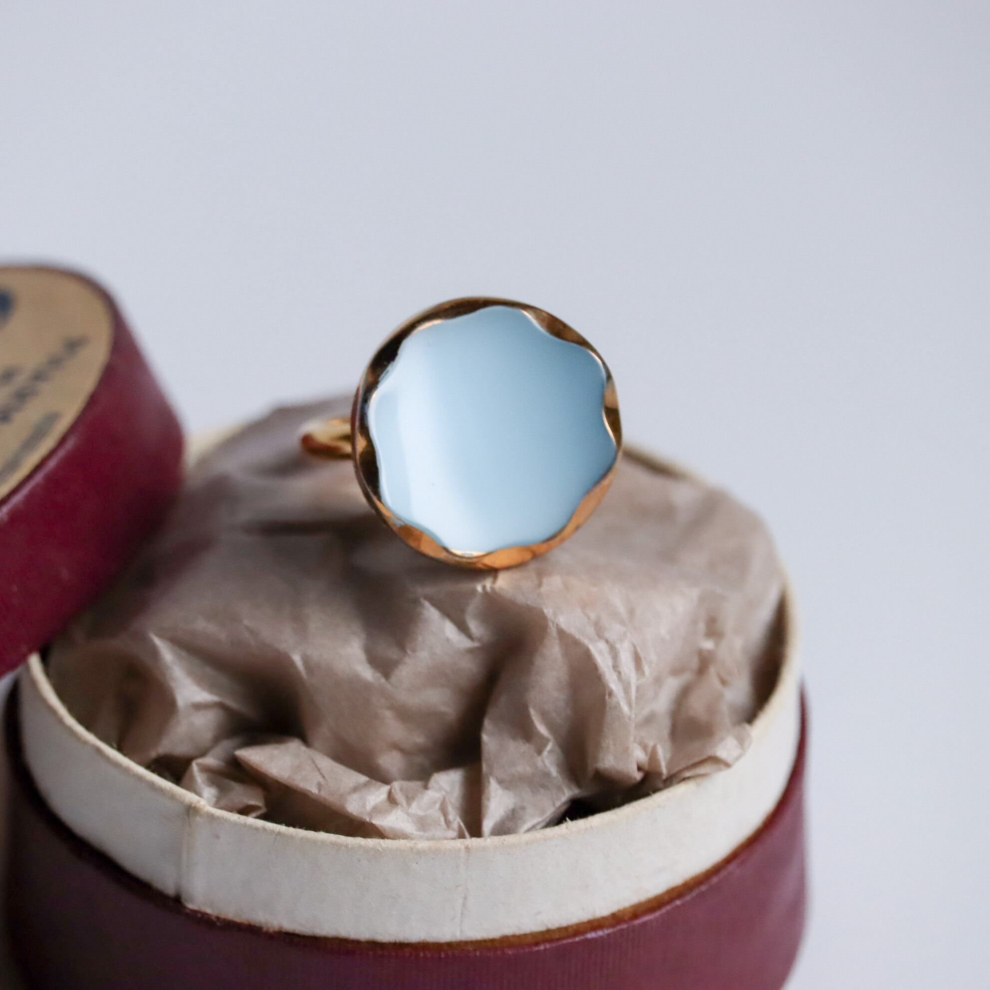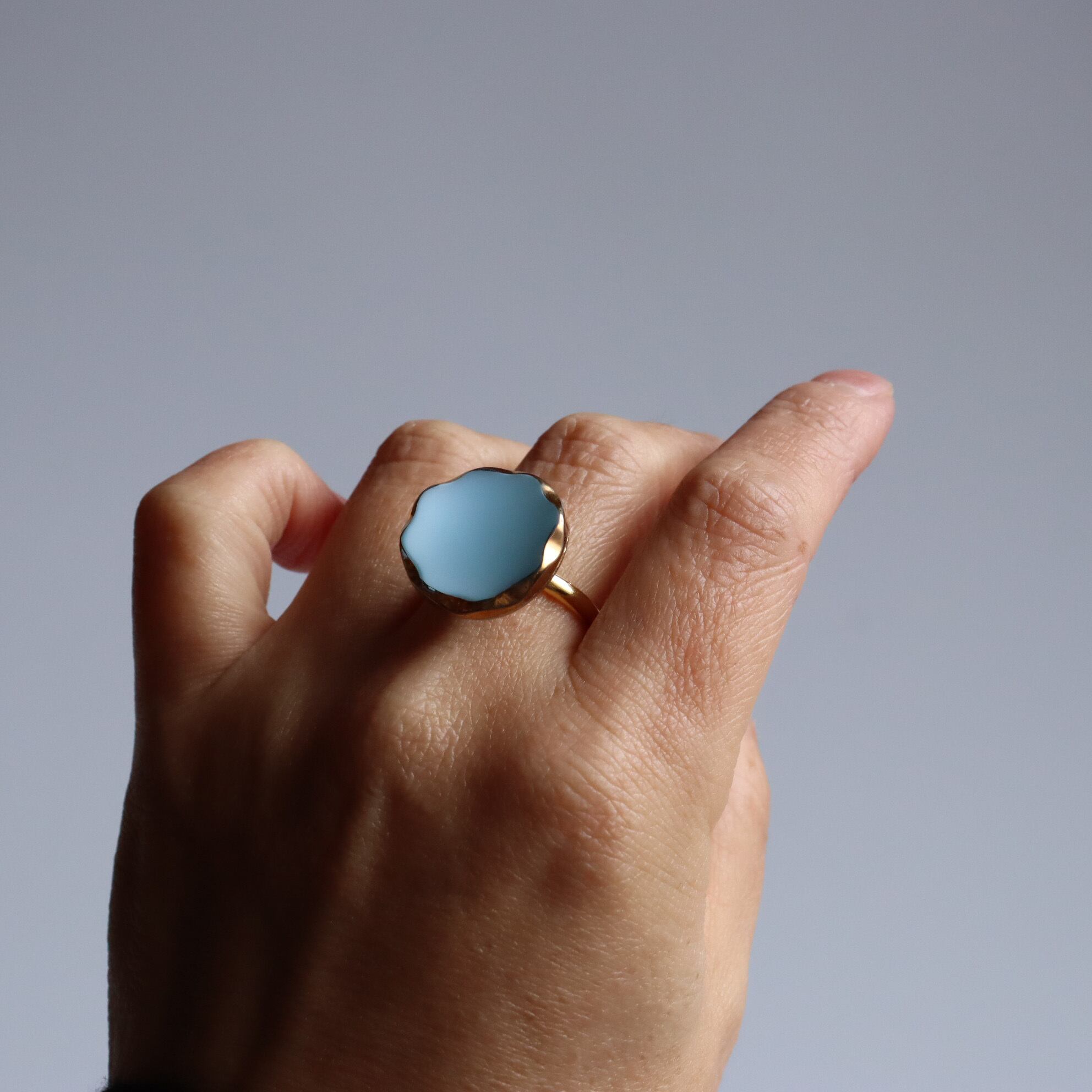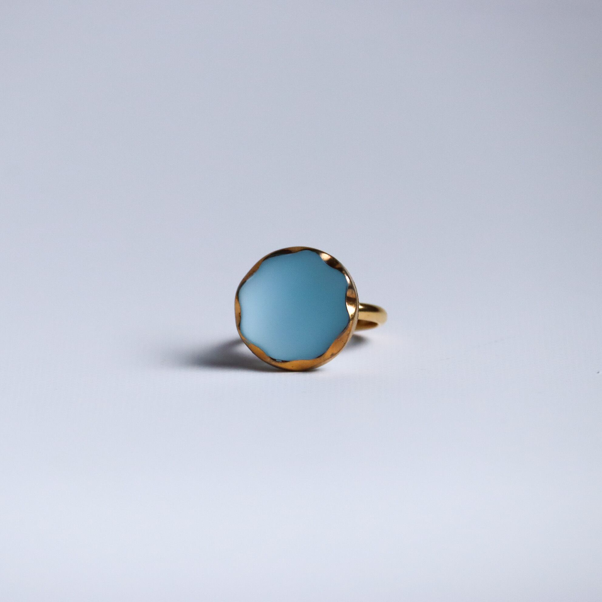 ヴィンテージガラスボタンを使用した、ボタンリングのご紹介です。