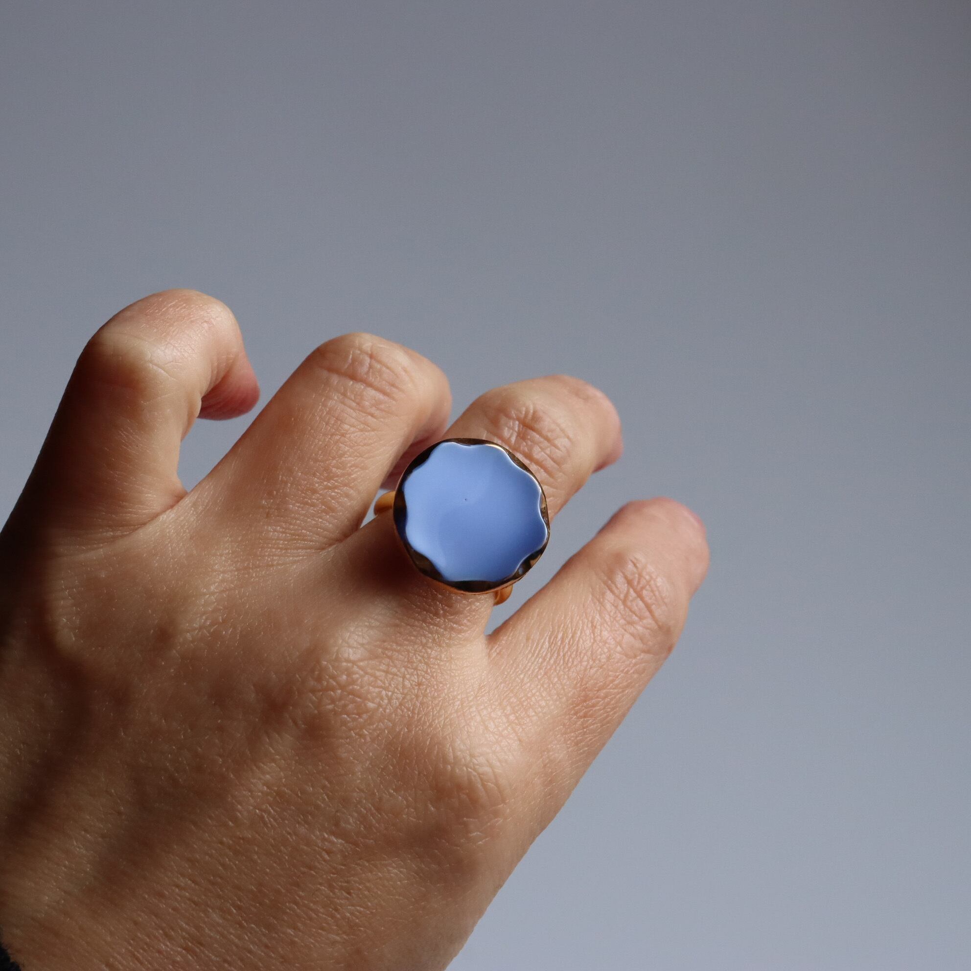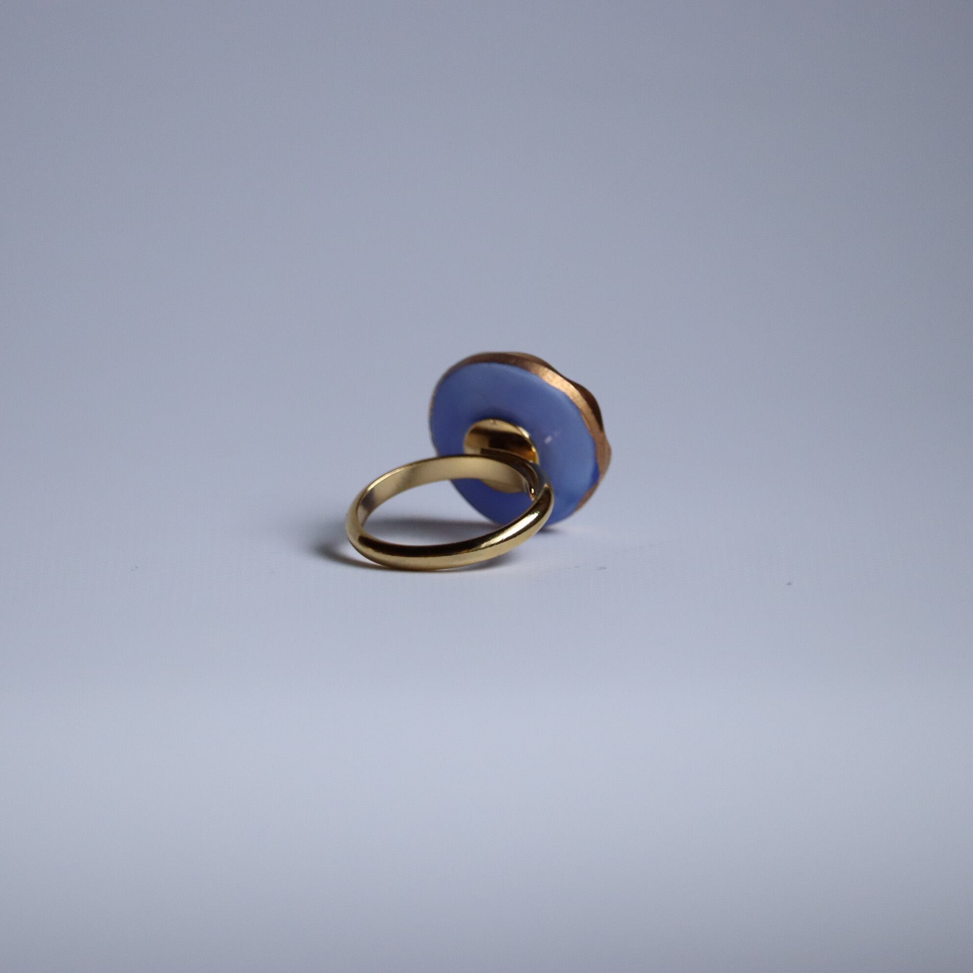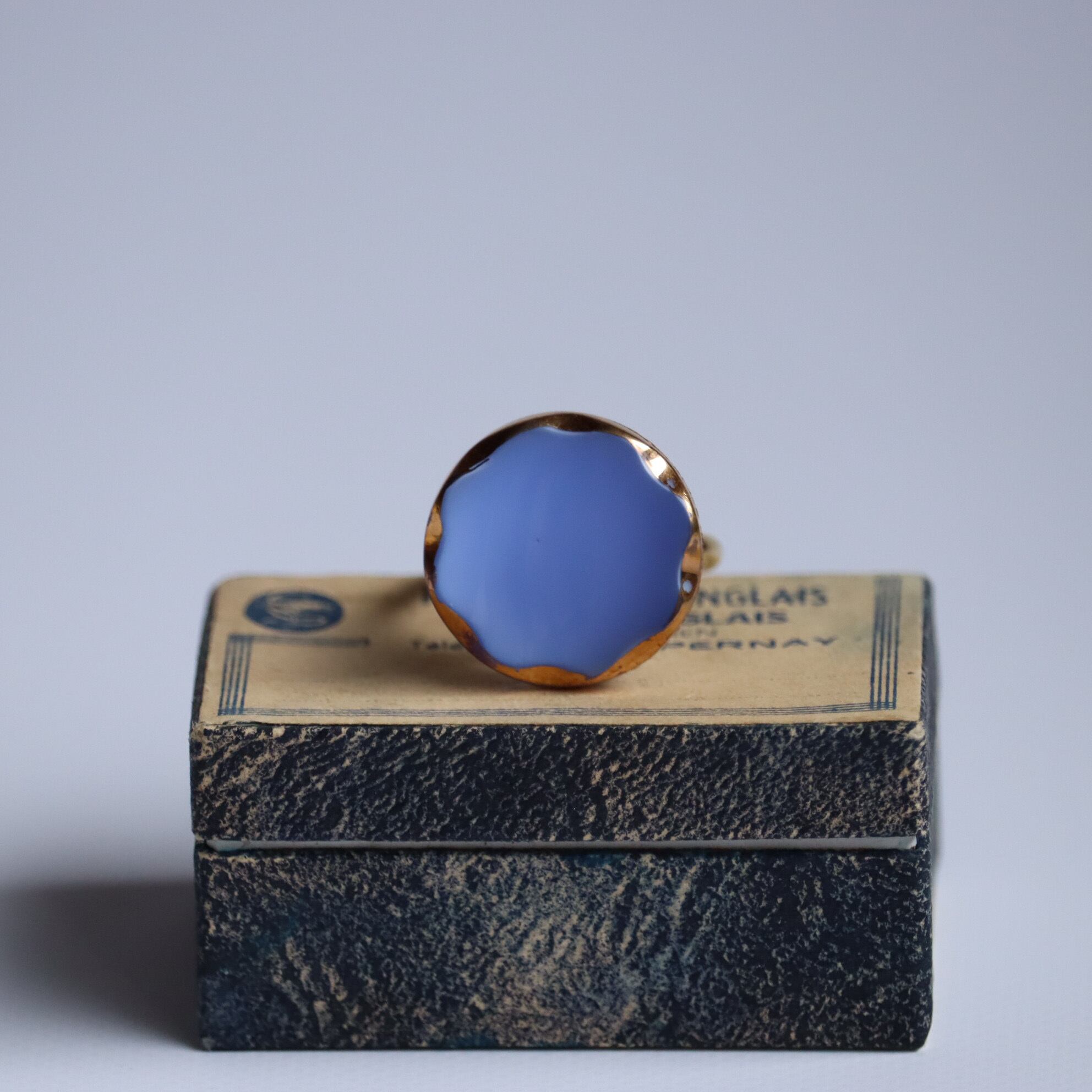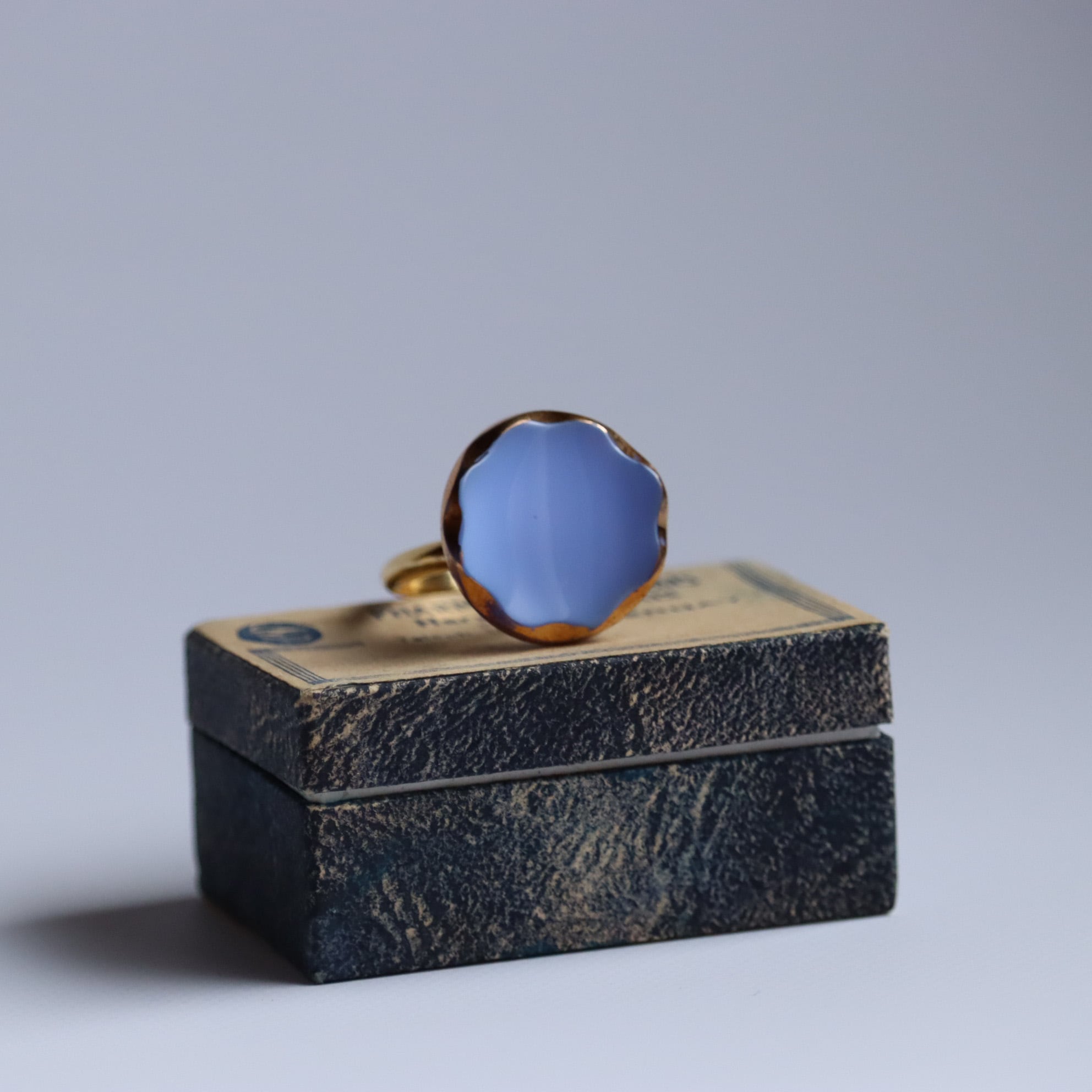 ヴィンテージガラスボタンを使用した、ボタンリングのご紹介です。