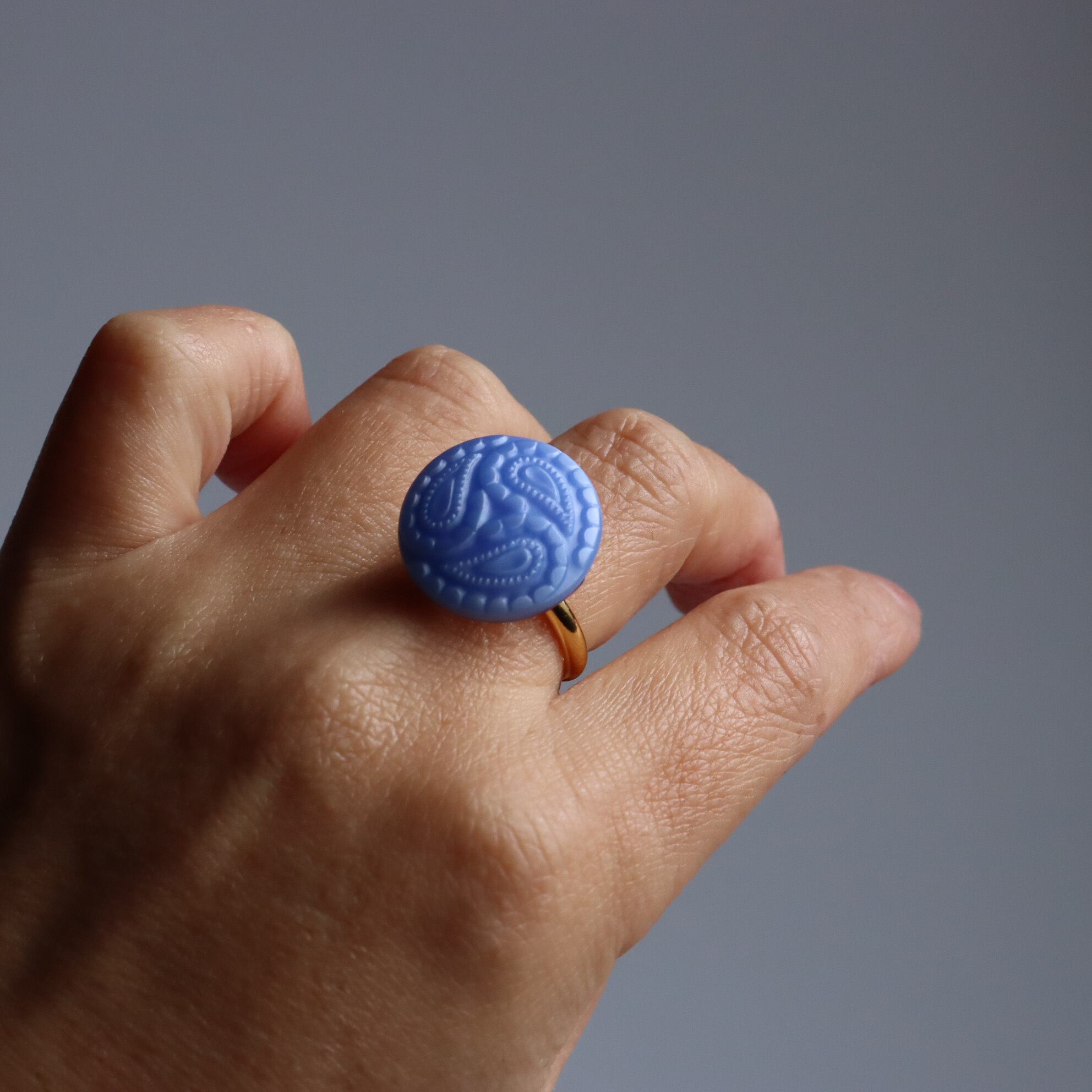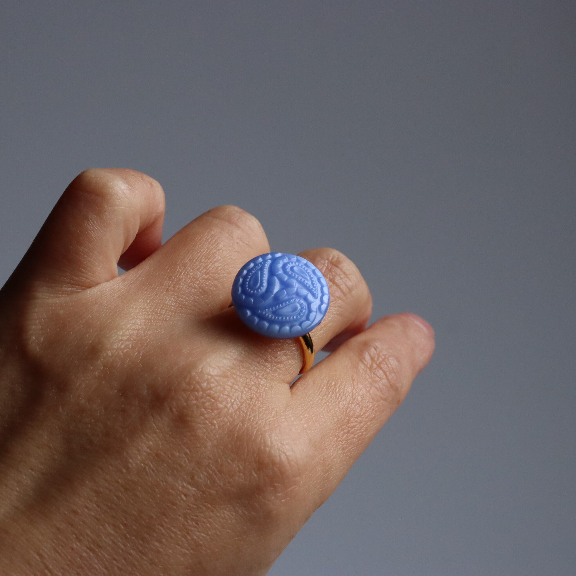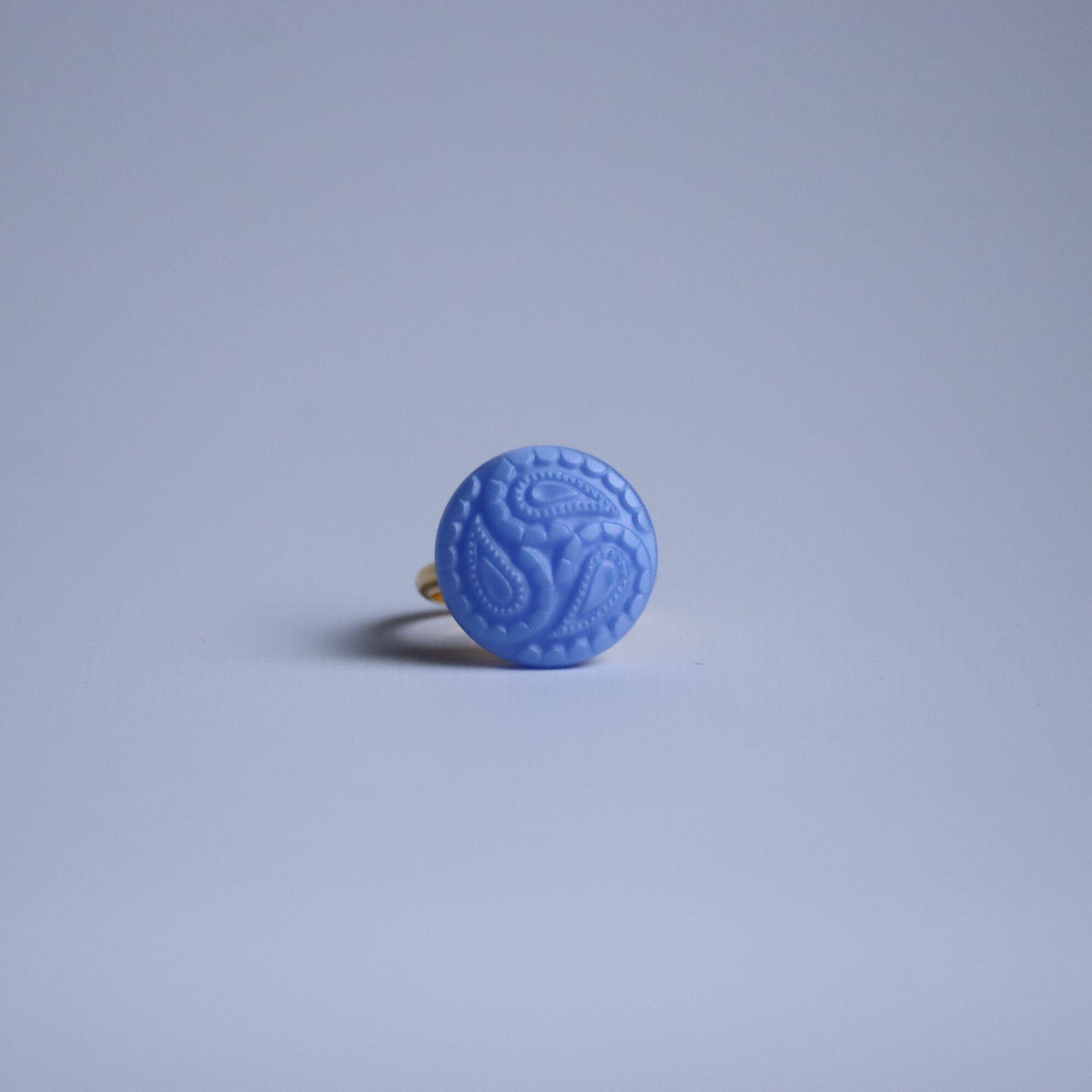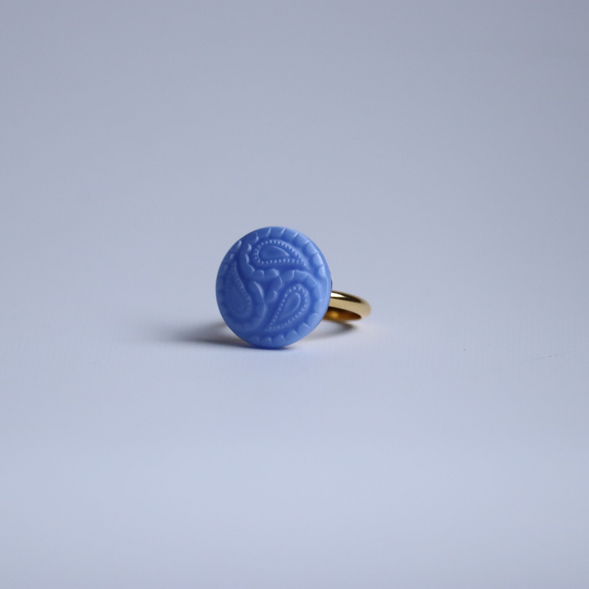 ペイズリー柄が印象的なボタンリングのご紹介です。