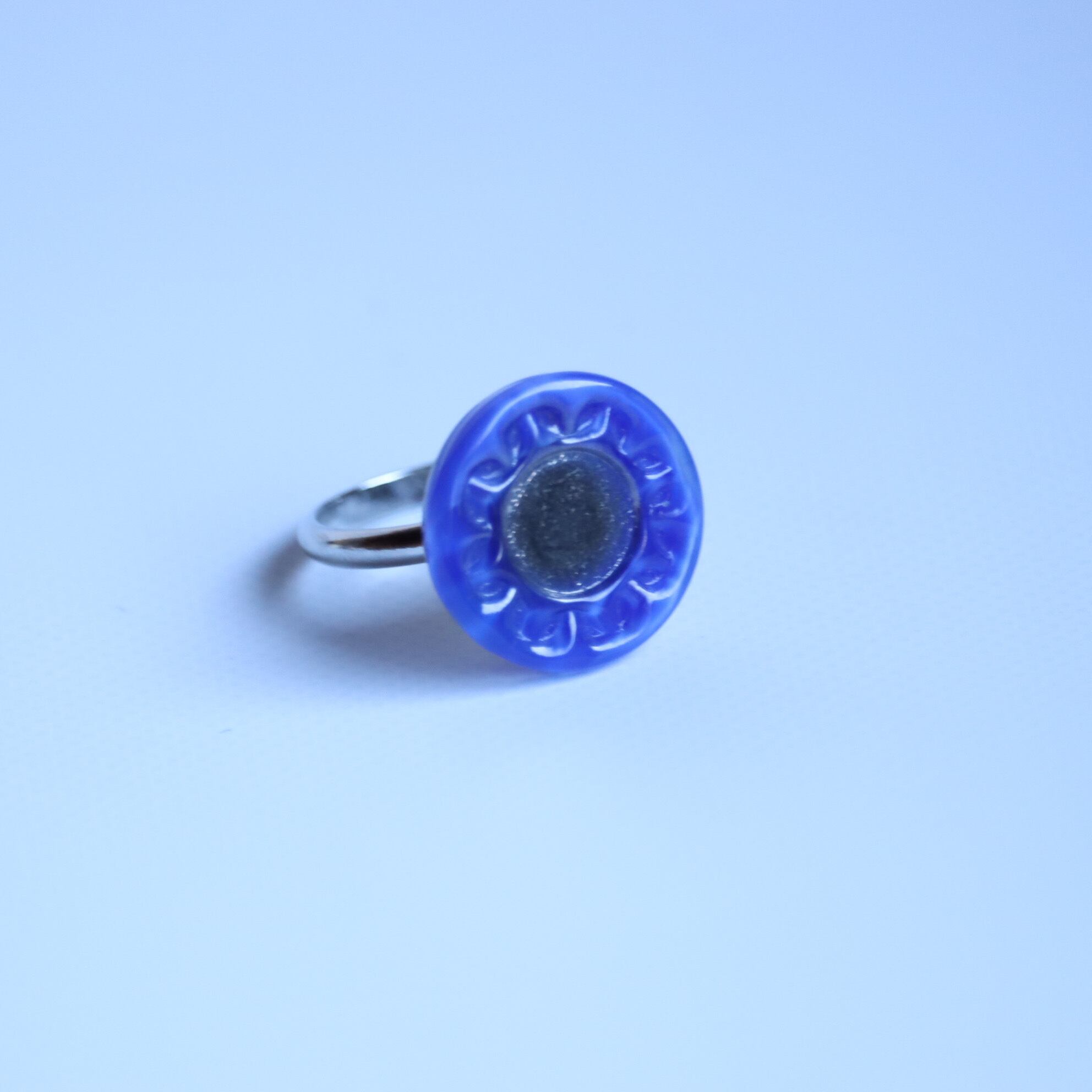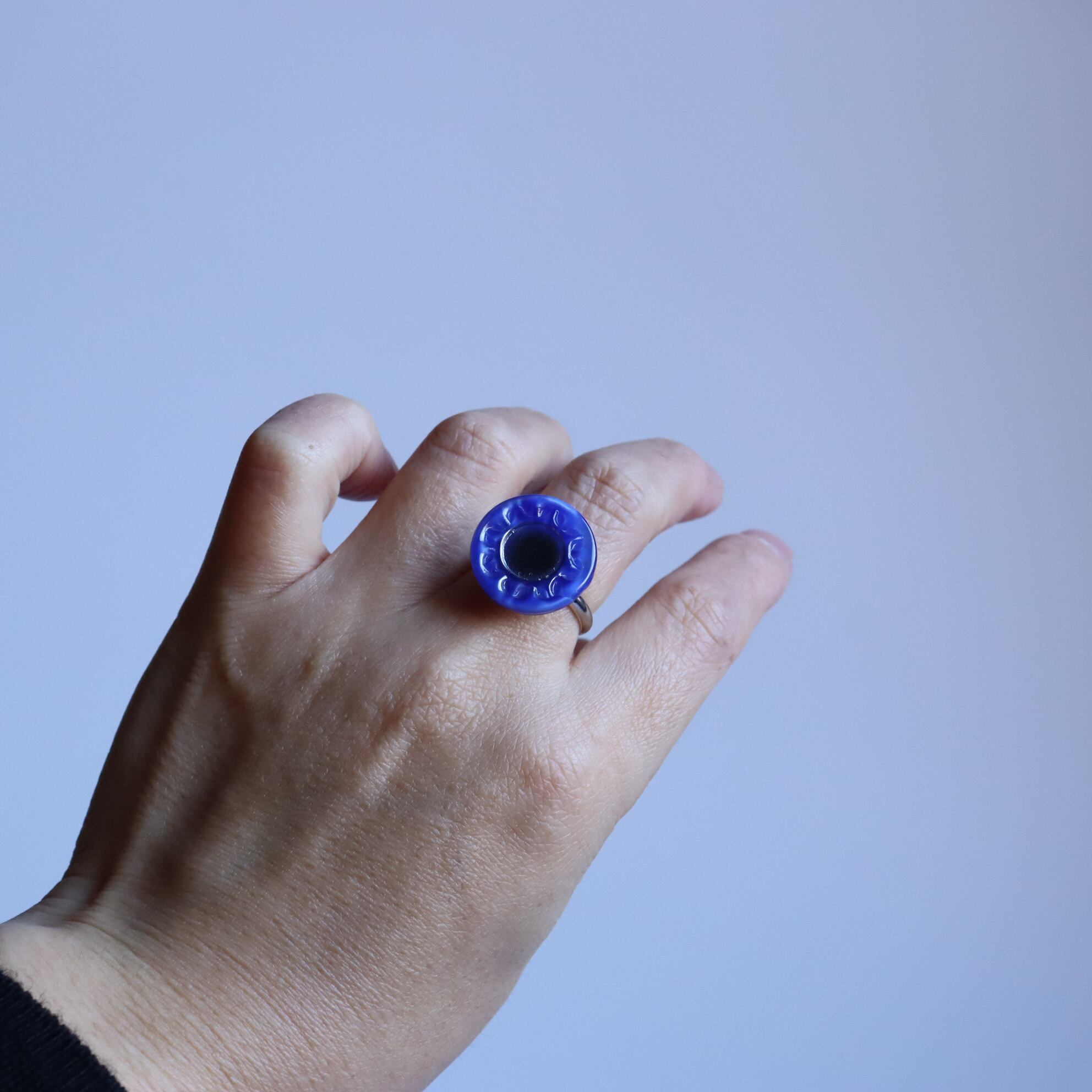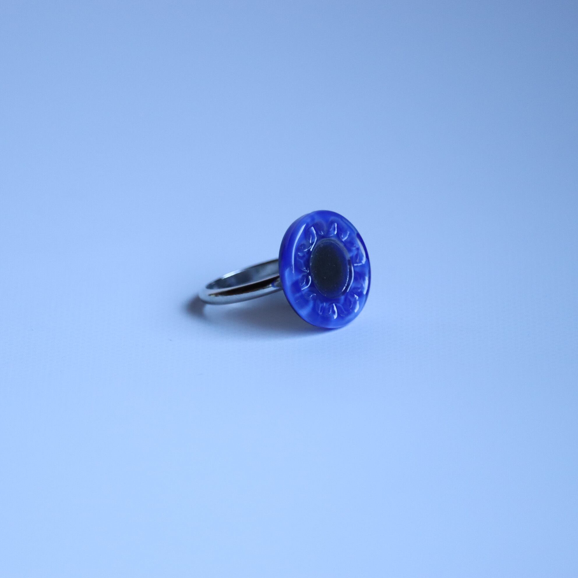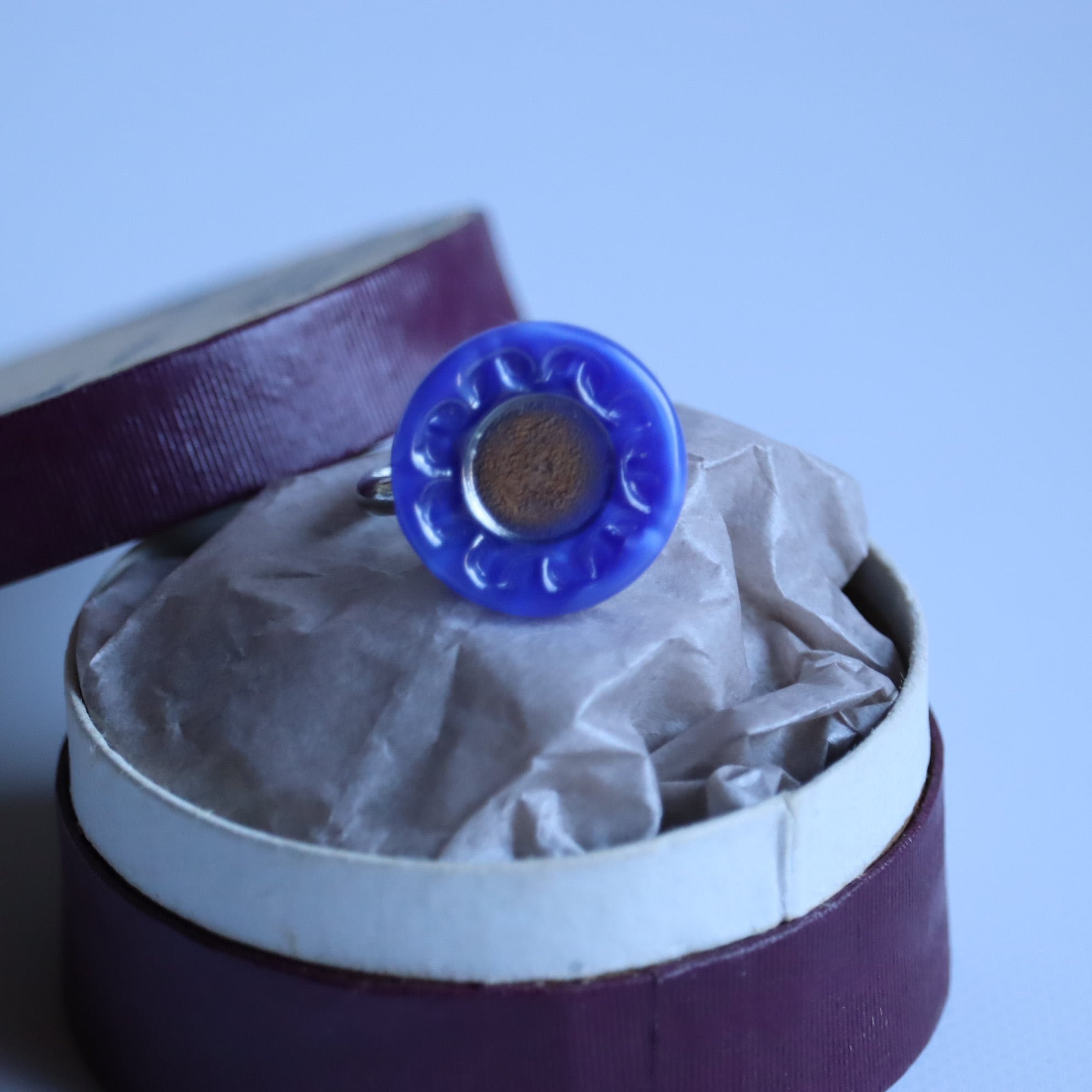 ぺたっと薄く、指にすっとなじむガラスボタン。