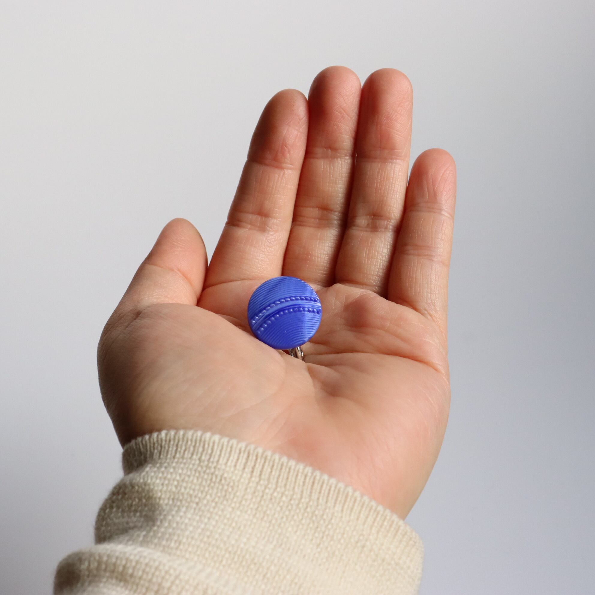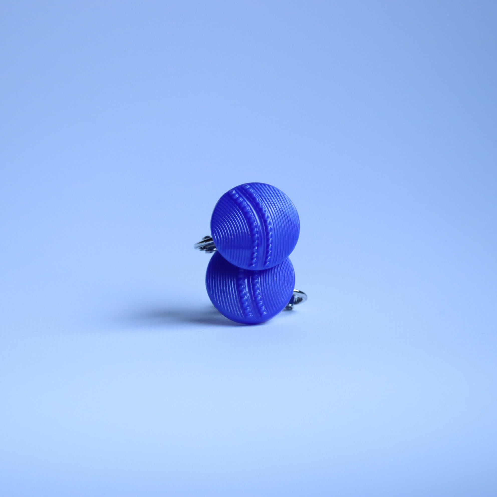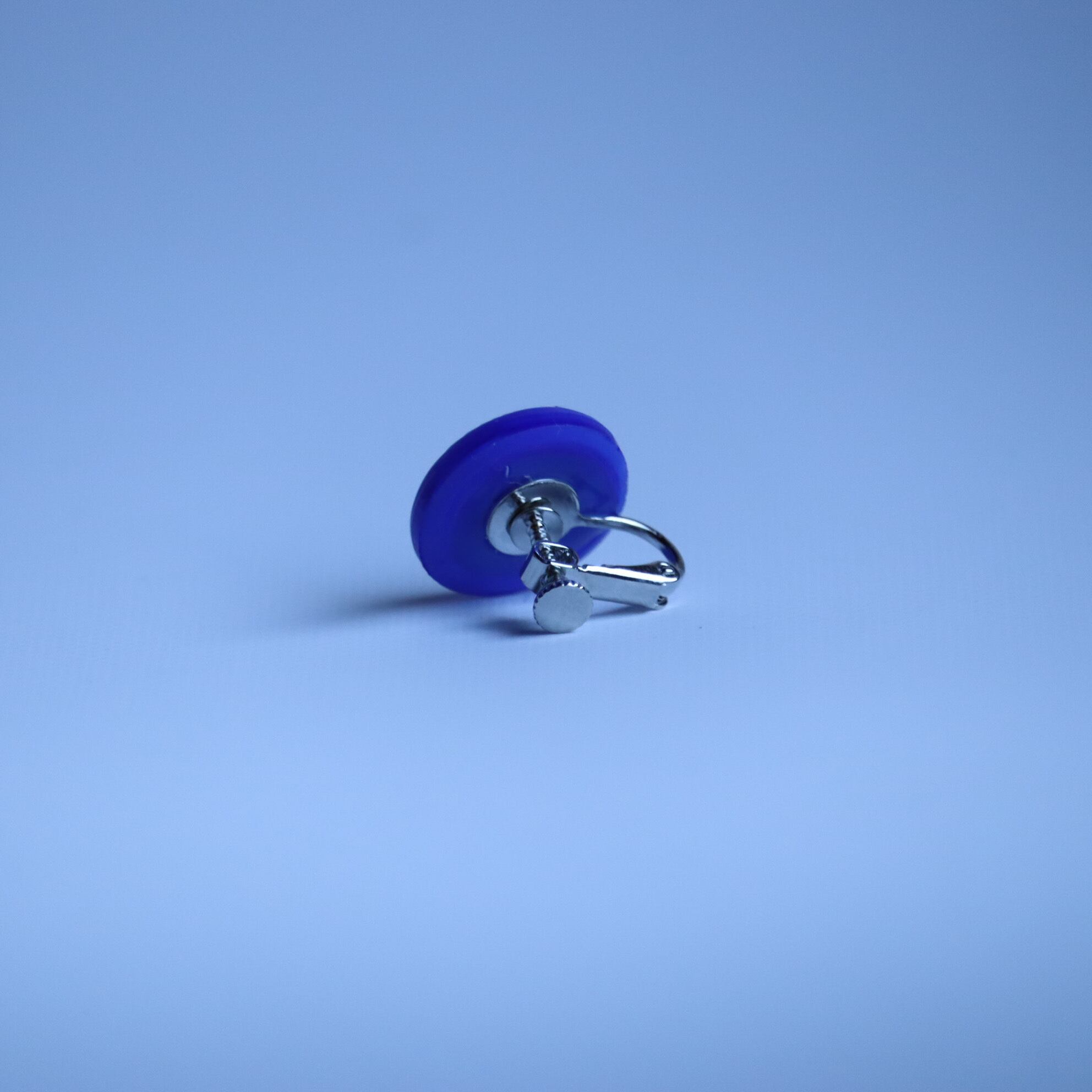 深く澄んだ色合いのガラスボタンを使用した耳飾りのご紹介です。