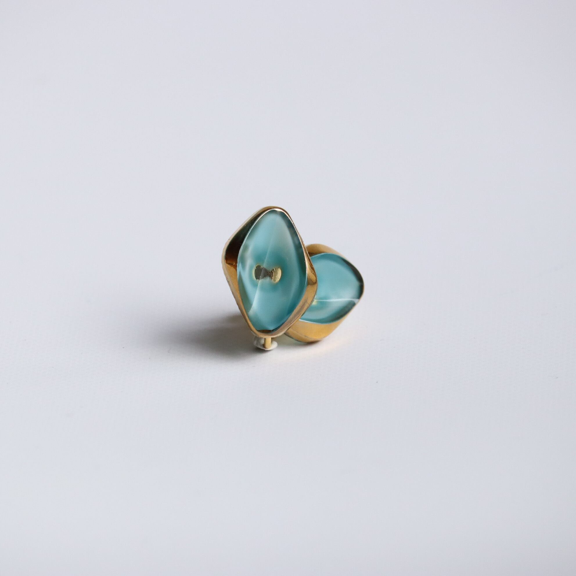 ボタンの中で、水がゆっくりとうごめくような幻想的な色合い。