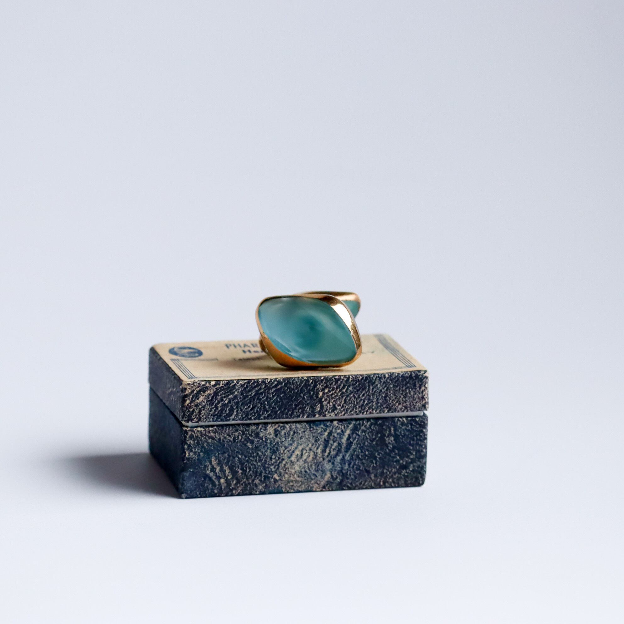 ボタンの中で、水がゆっくりとうごめくような幻想的な色合い。