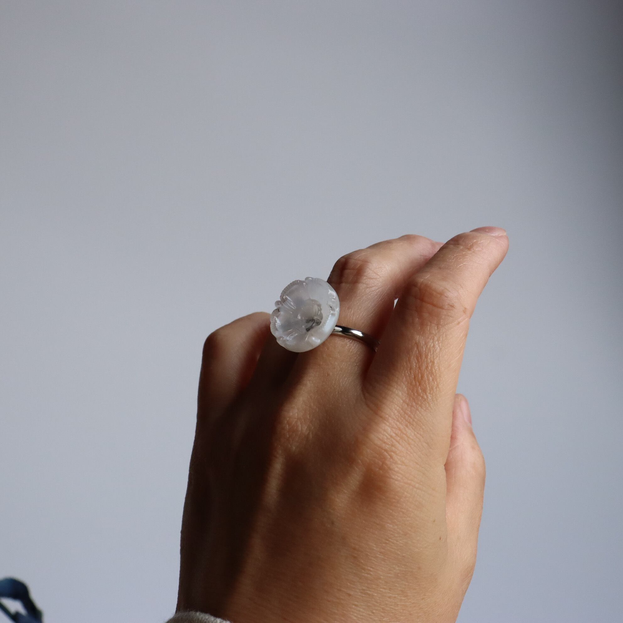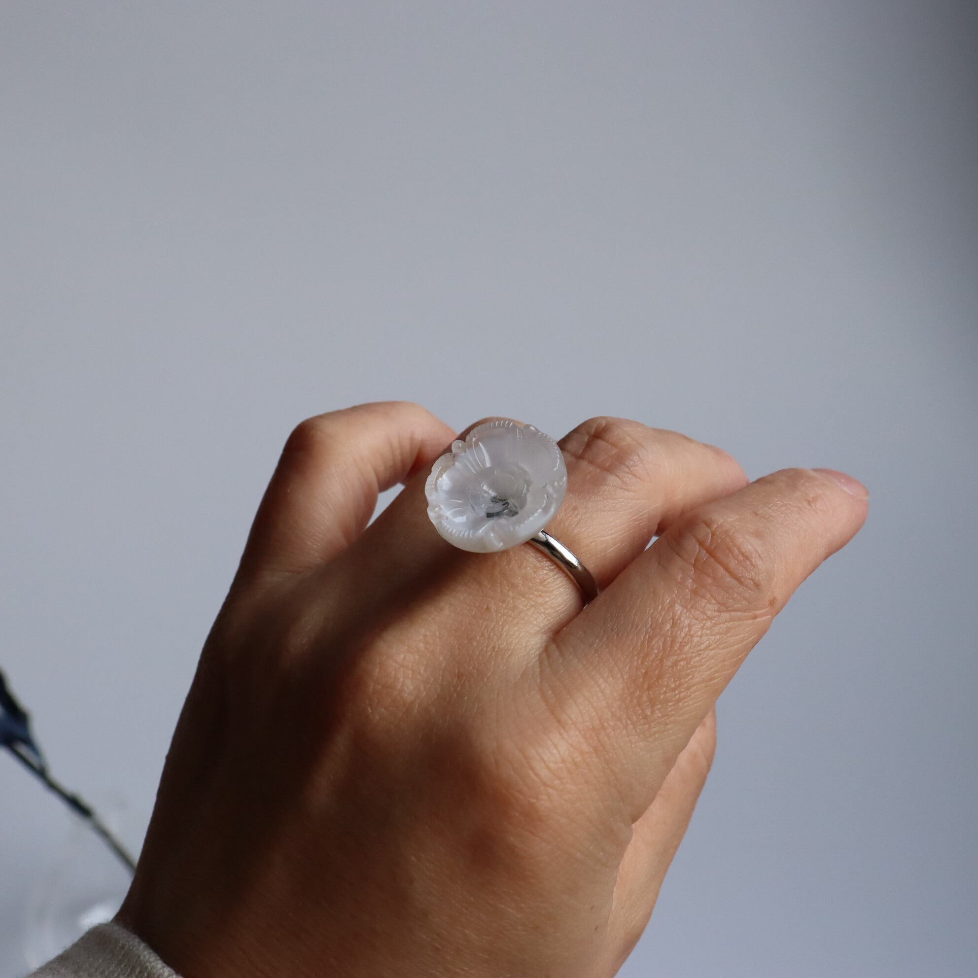 ムーングロウガラスを使用した指輪のご紹介です。