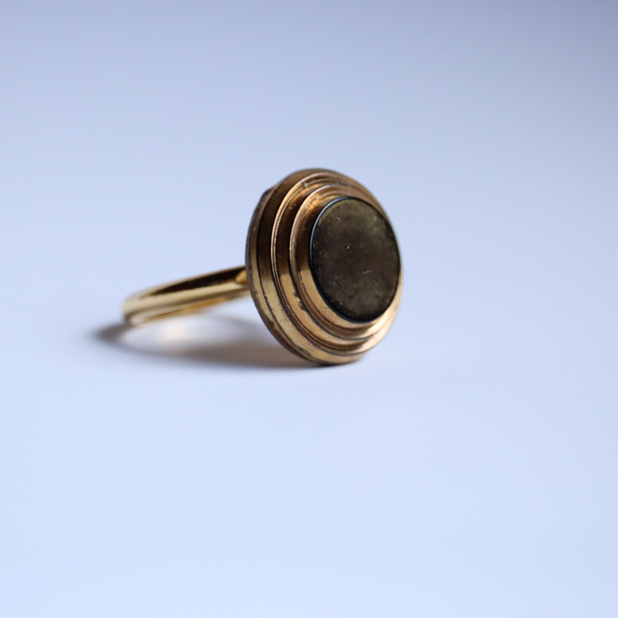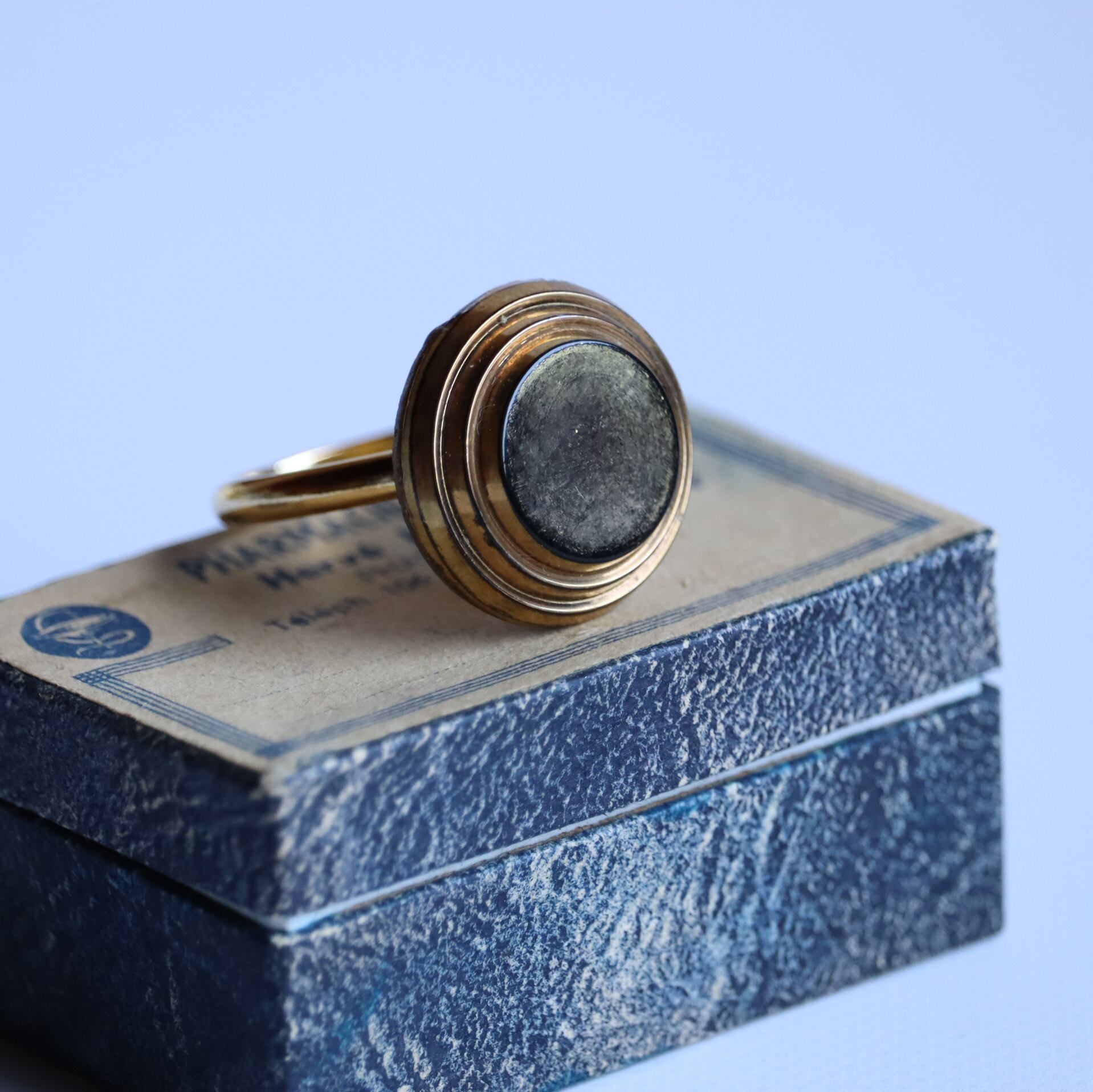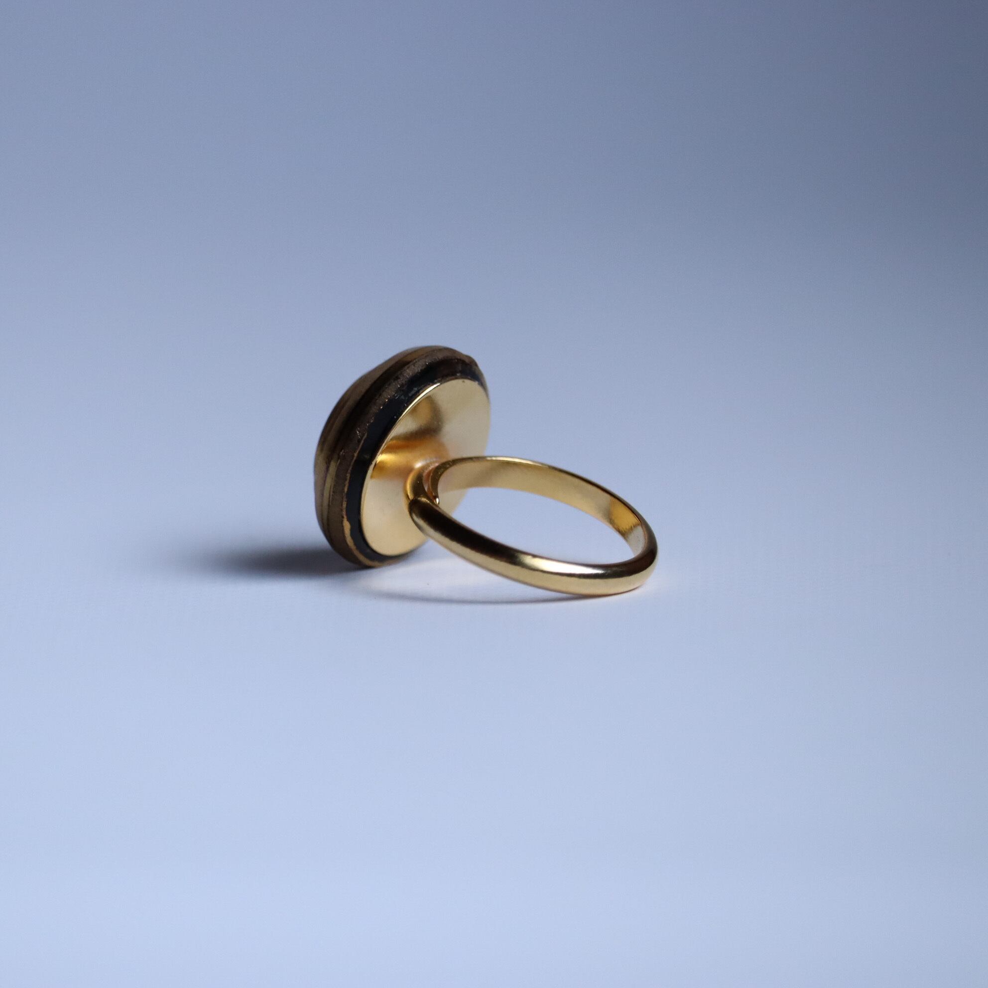 ヴィンテージガラスボタンを使用した指輪のご紹介です。
