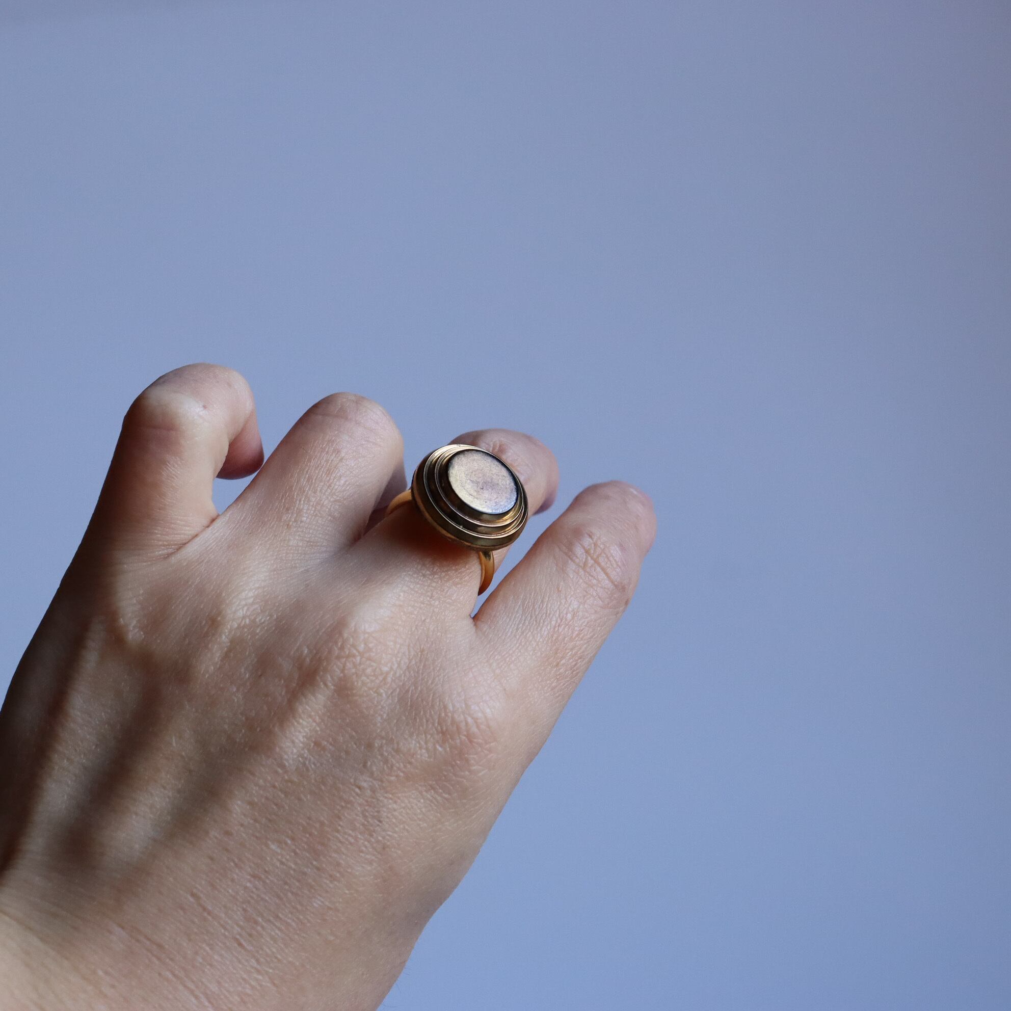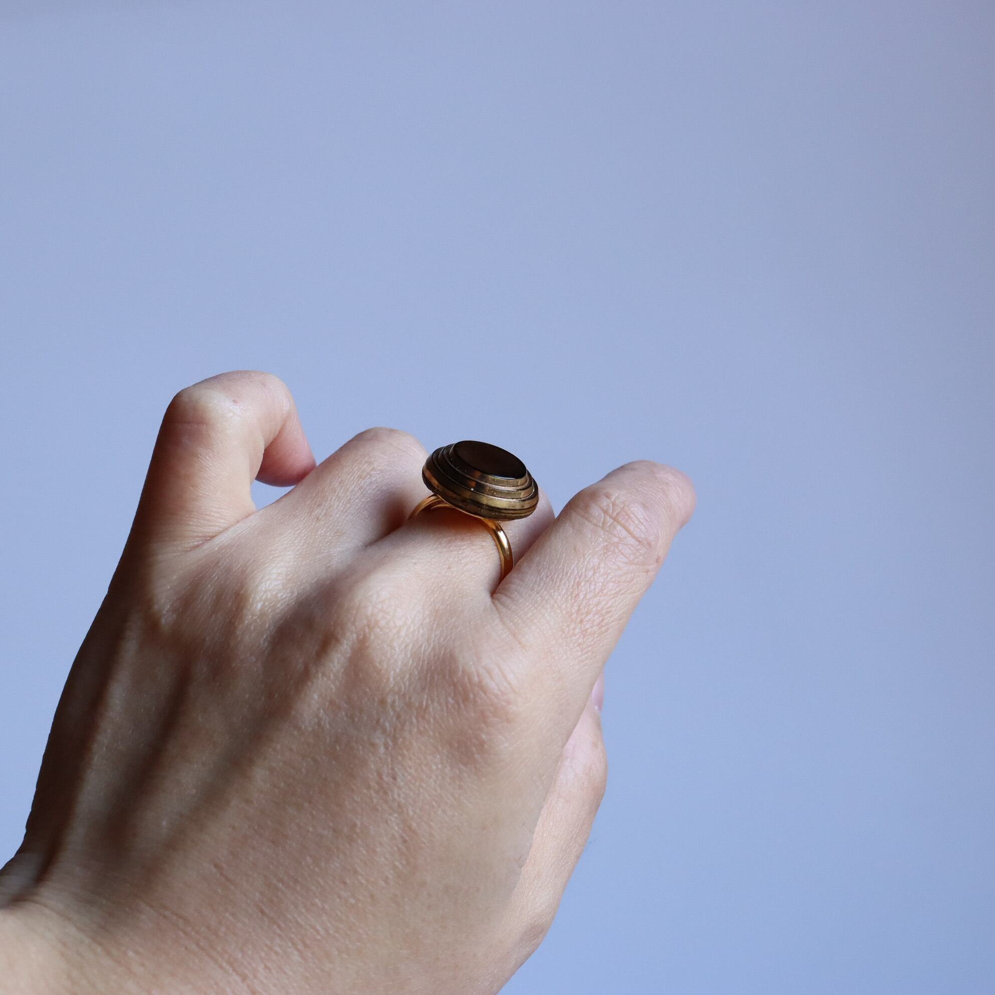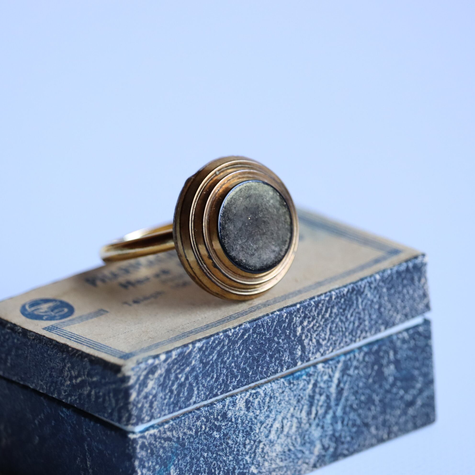 ヴィンテージガラスボタンを使用した指輪のご紹介です。