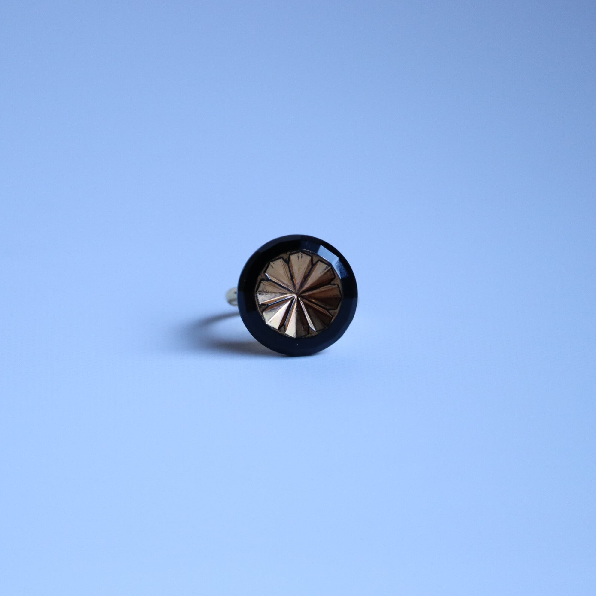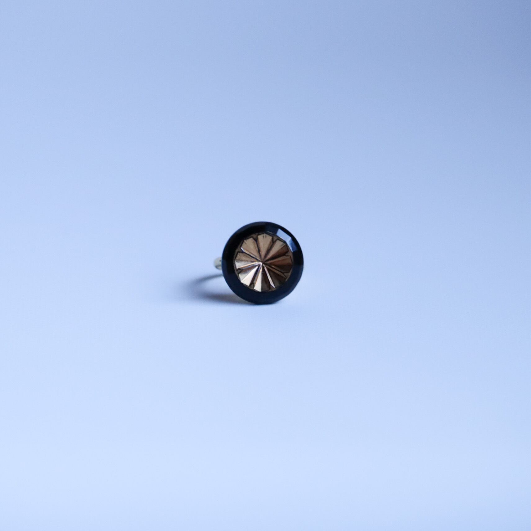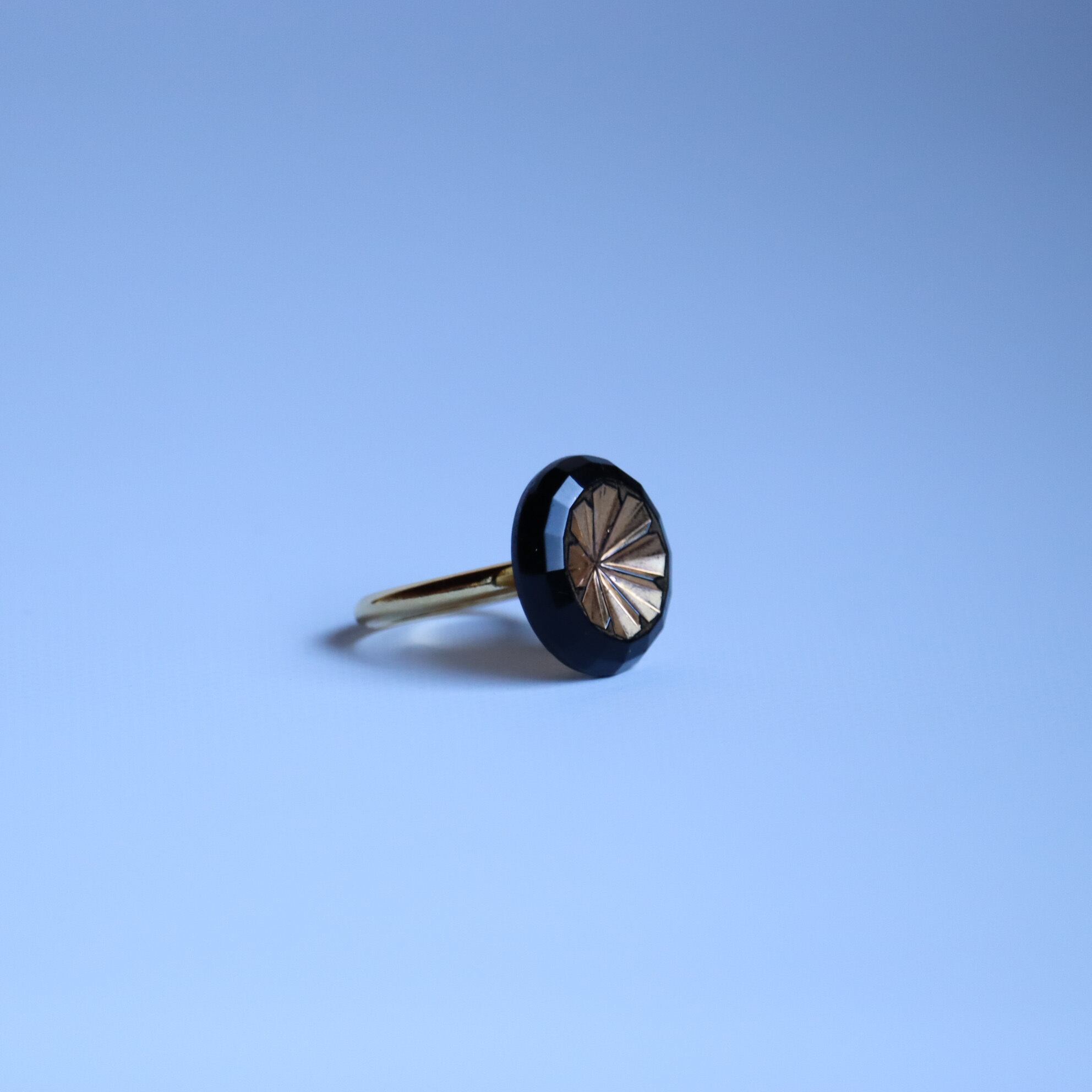 ヴィンテージガラスボタンを使用した指輪のご紹介です。
