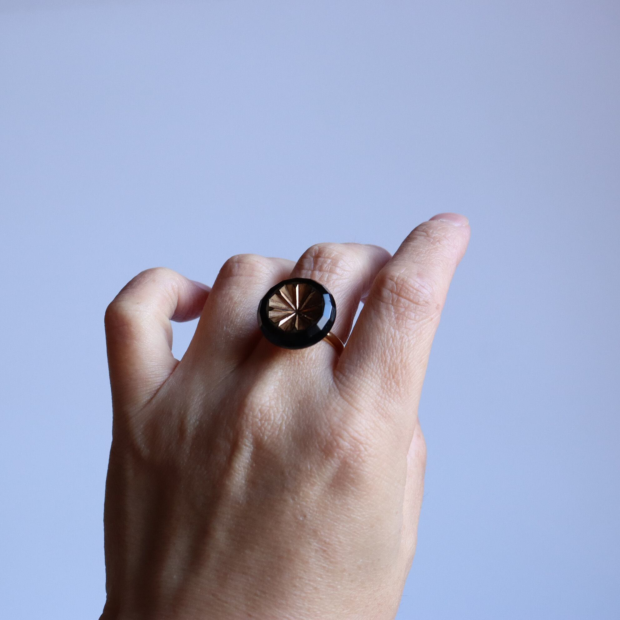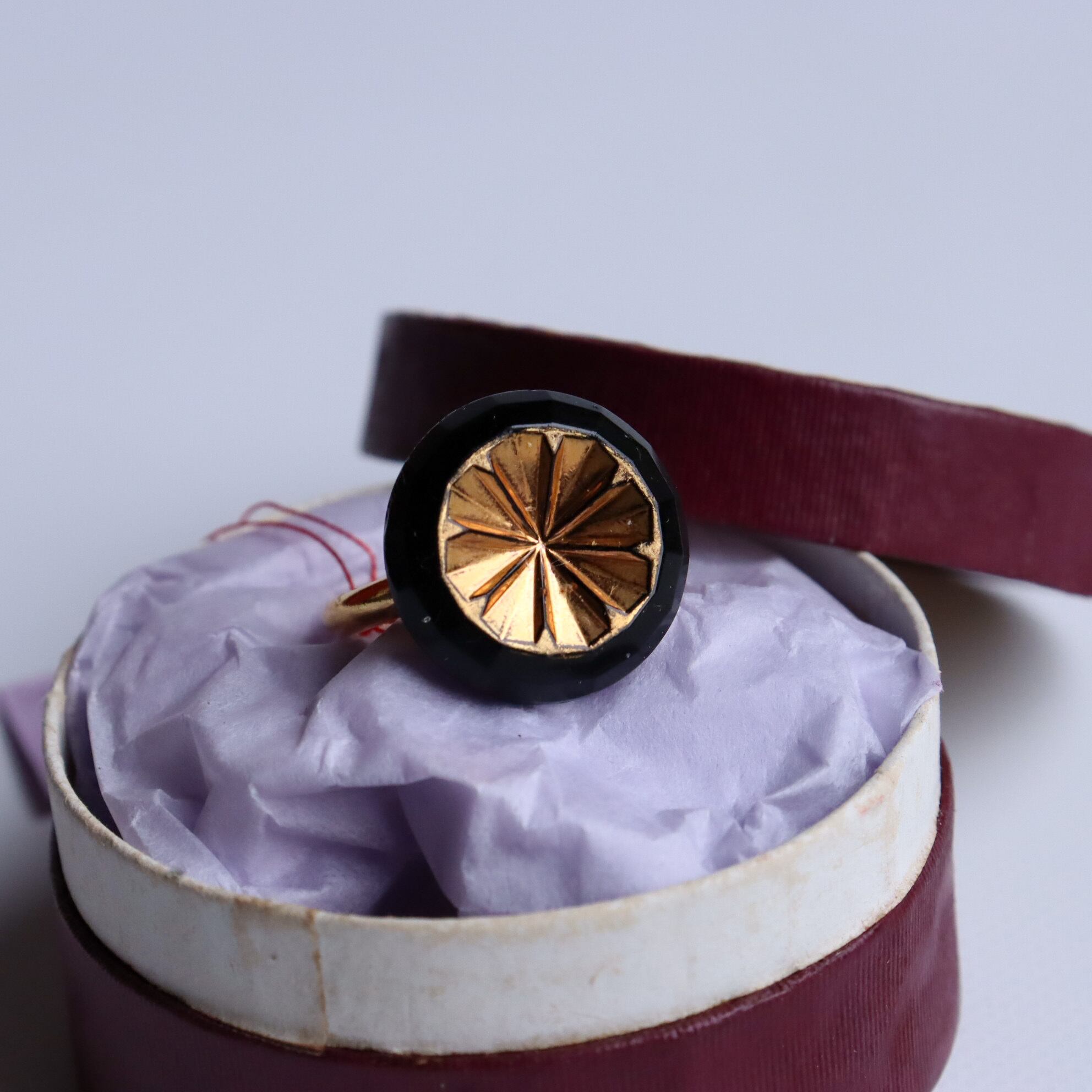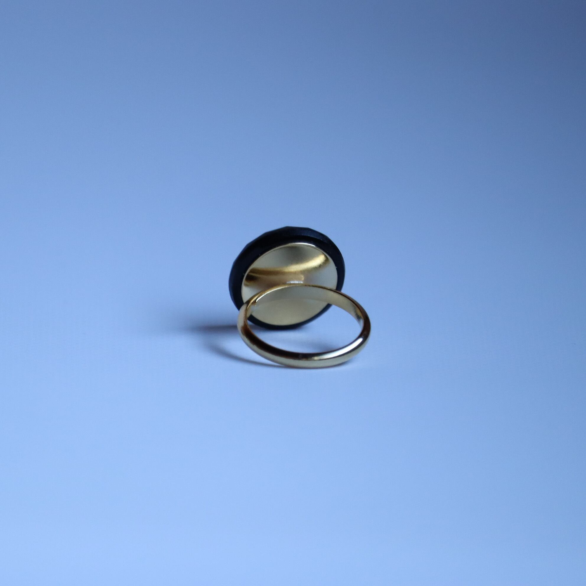 ヴィンテージガラスボタンを使用した指輪のご紹介です。