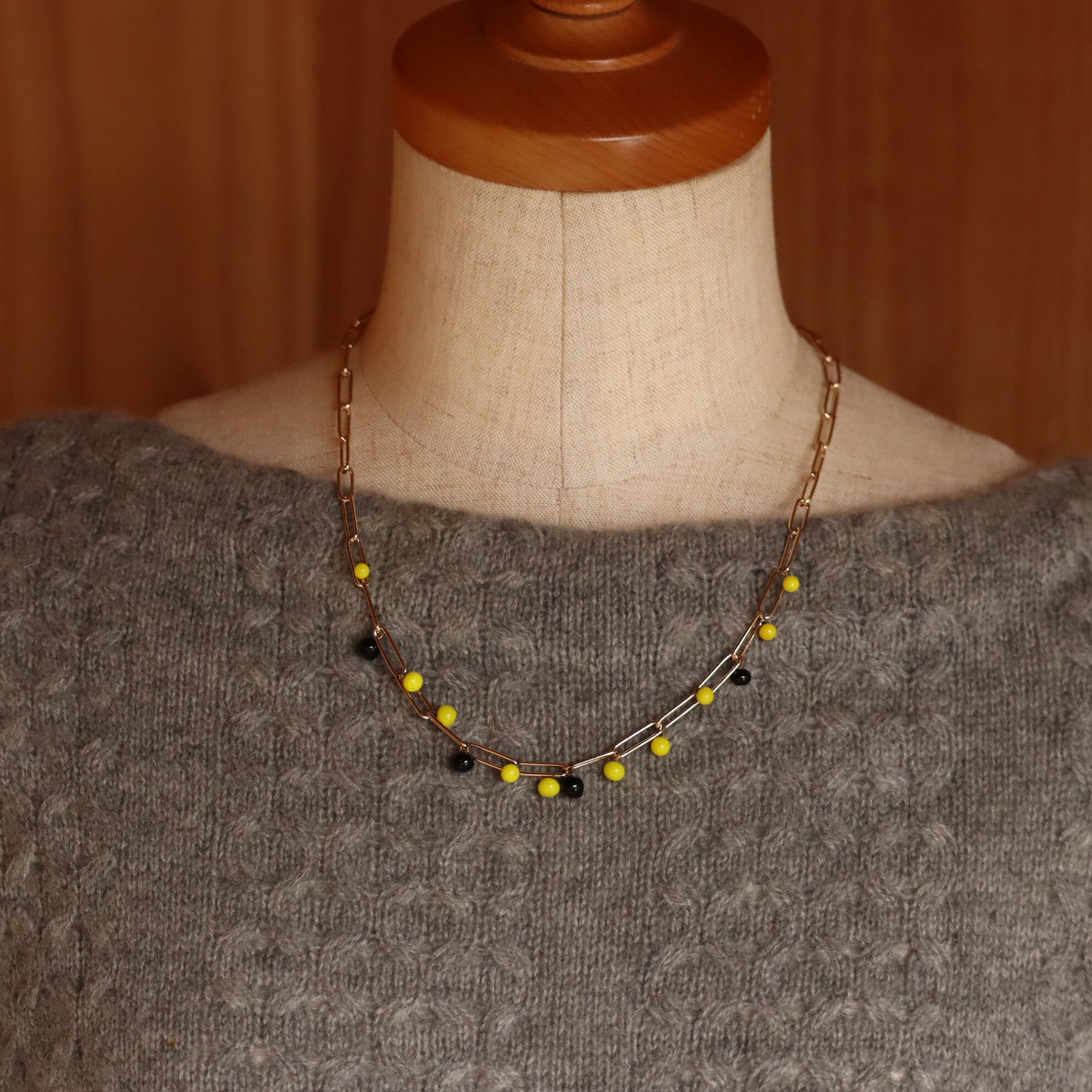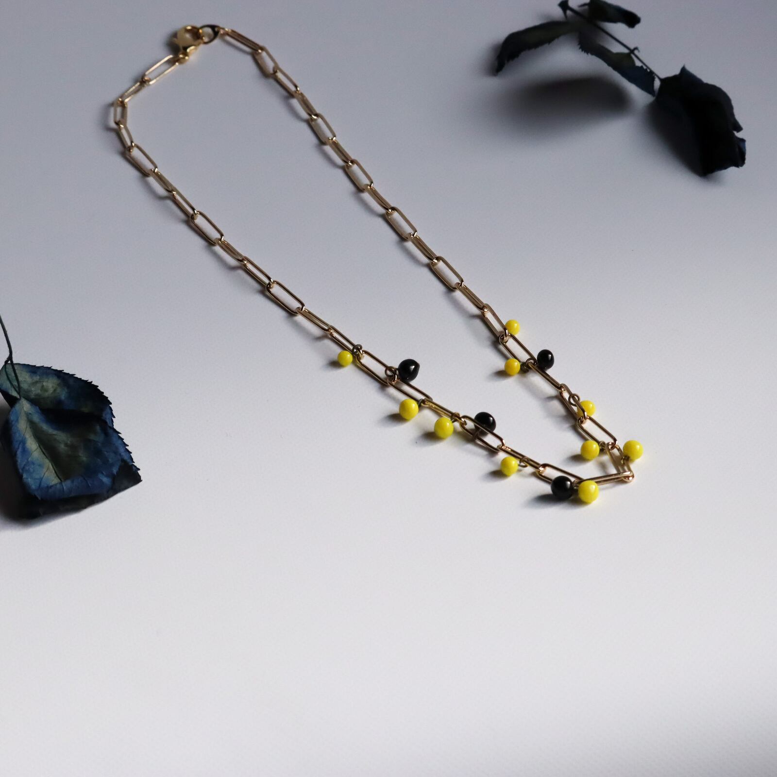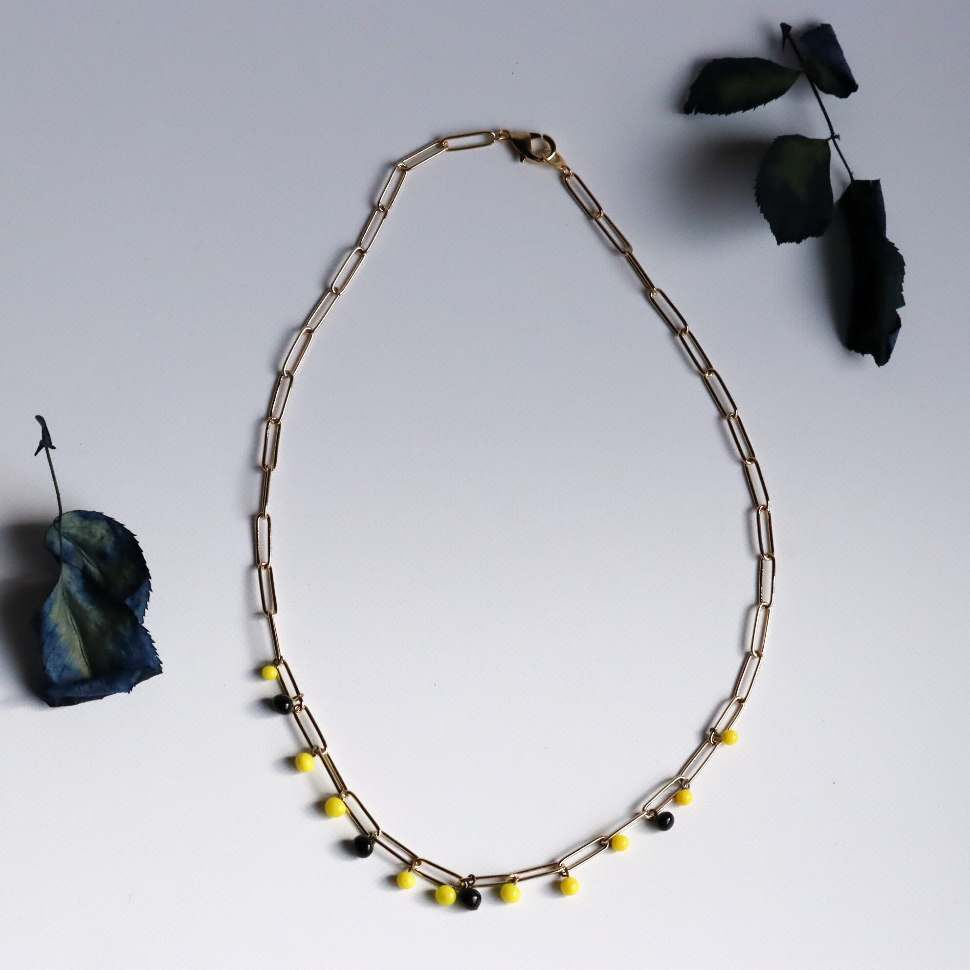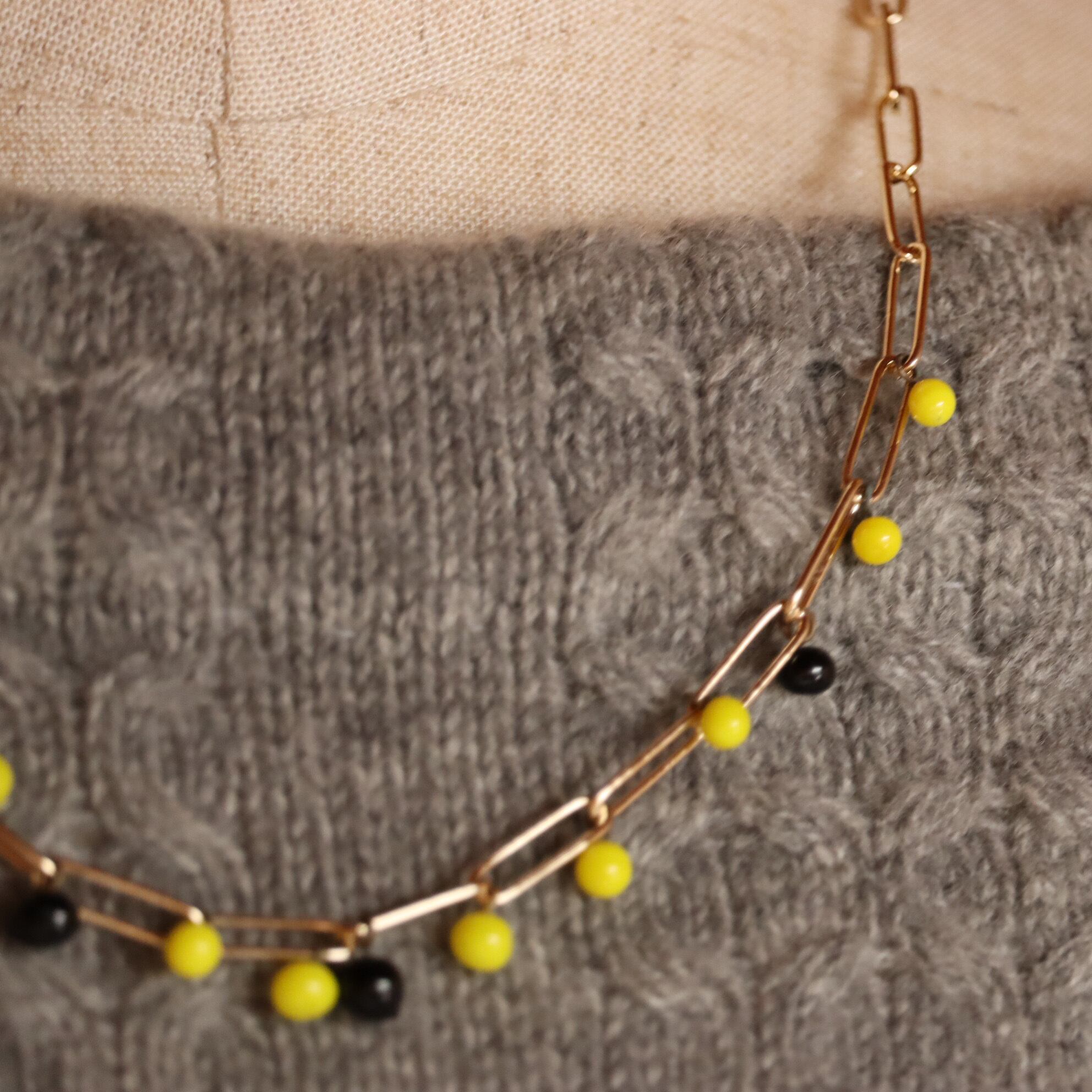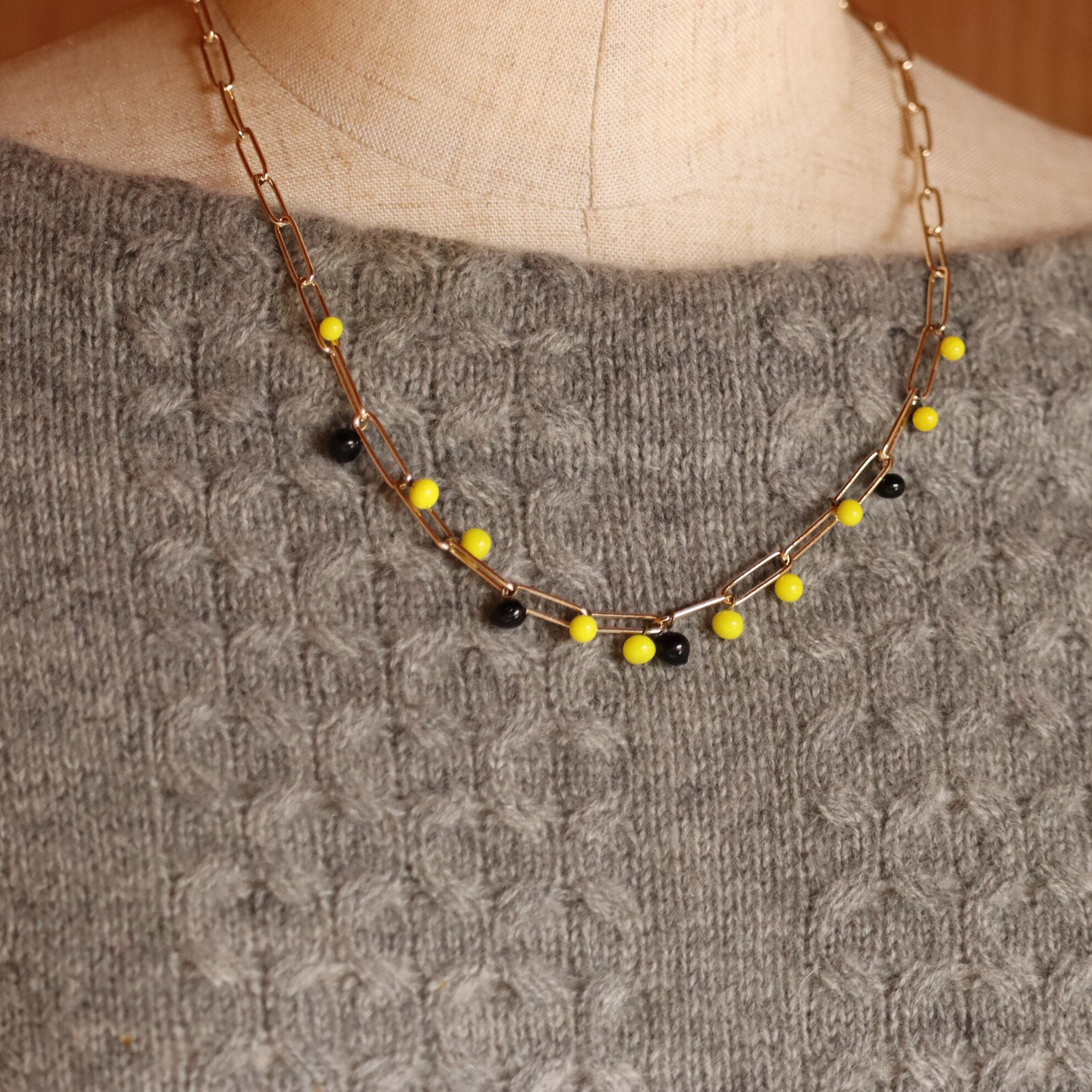 ビーズの色は、鮮やかな黄色と深い黒。