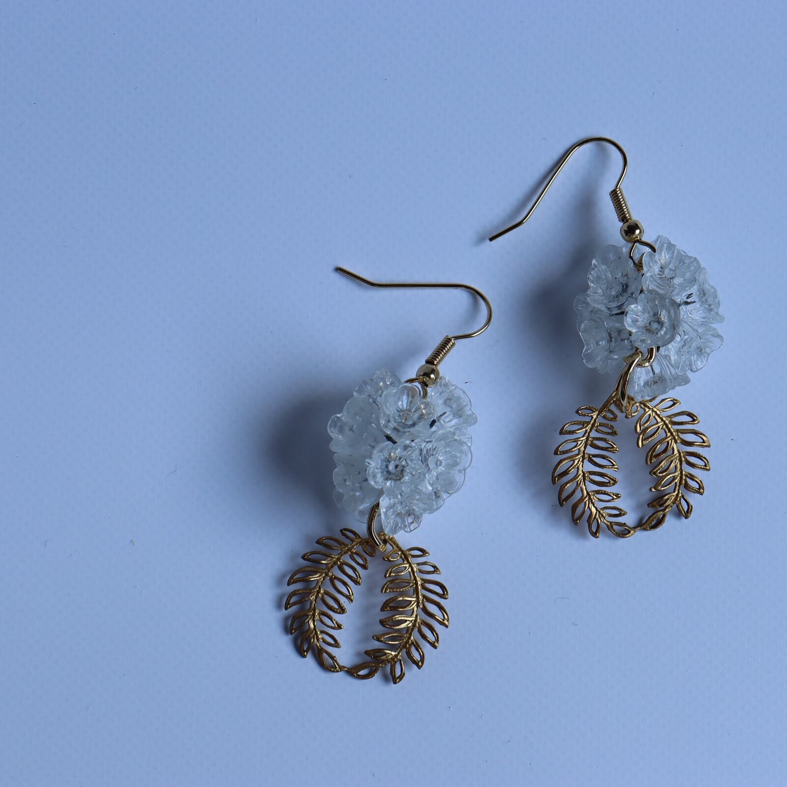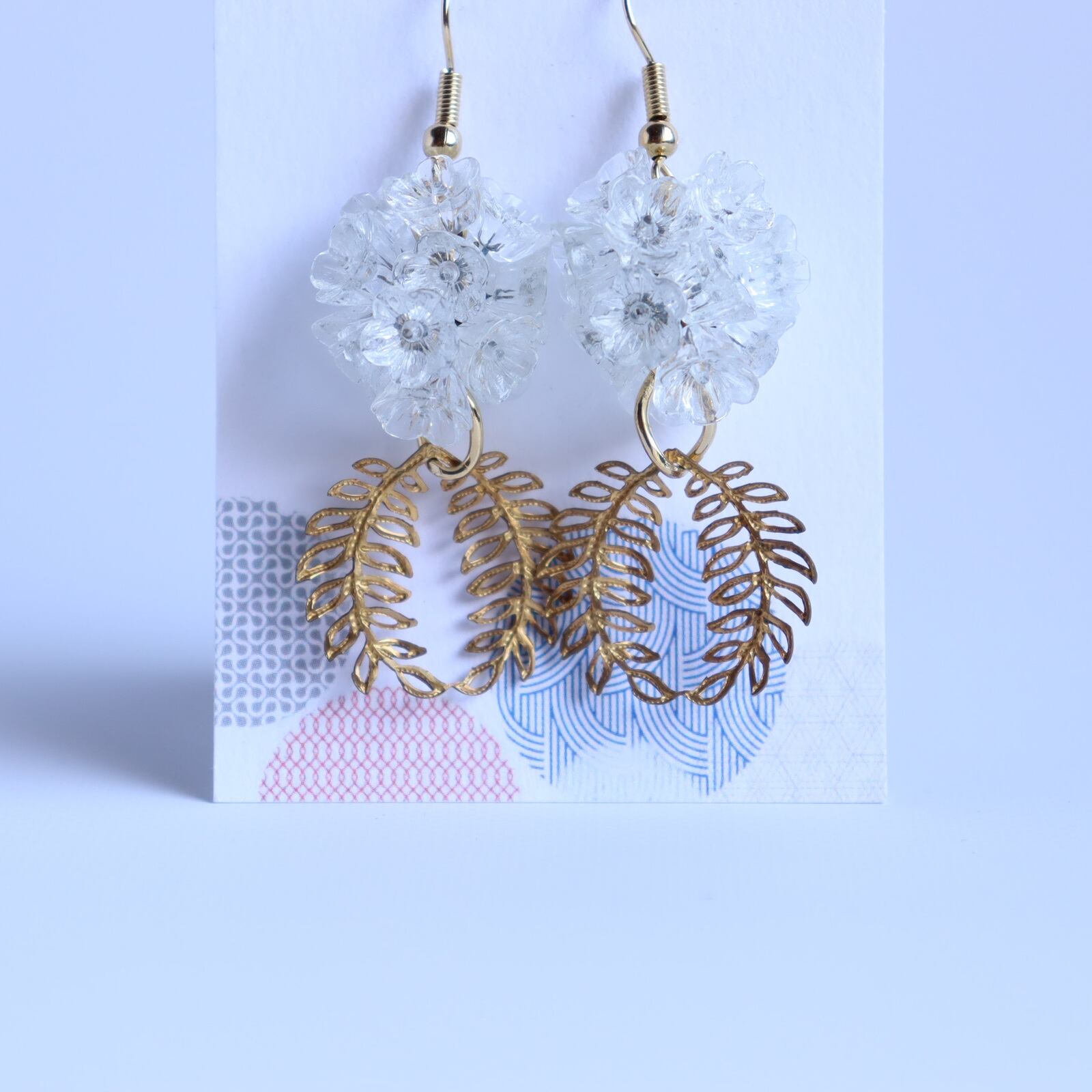 下には、ミリアム・ハスケルのパーツとして知られる、月桂樹モチーフの真鍮製パーツをあしらい、クラシカルな印象を添えました。