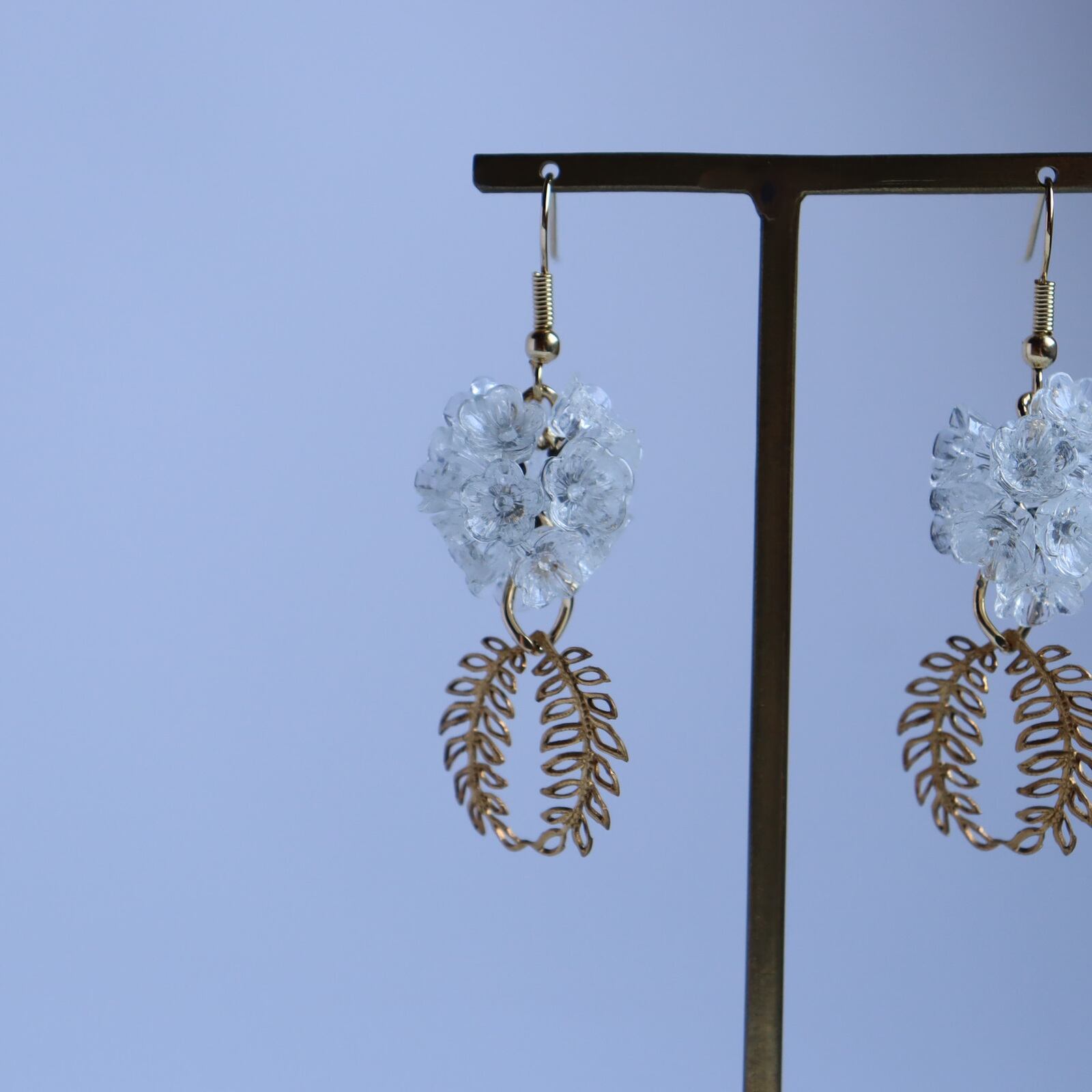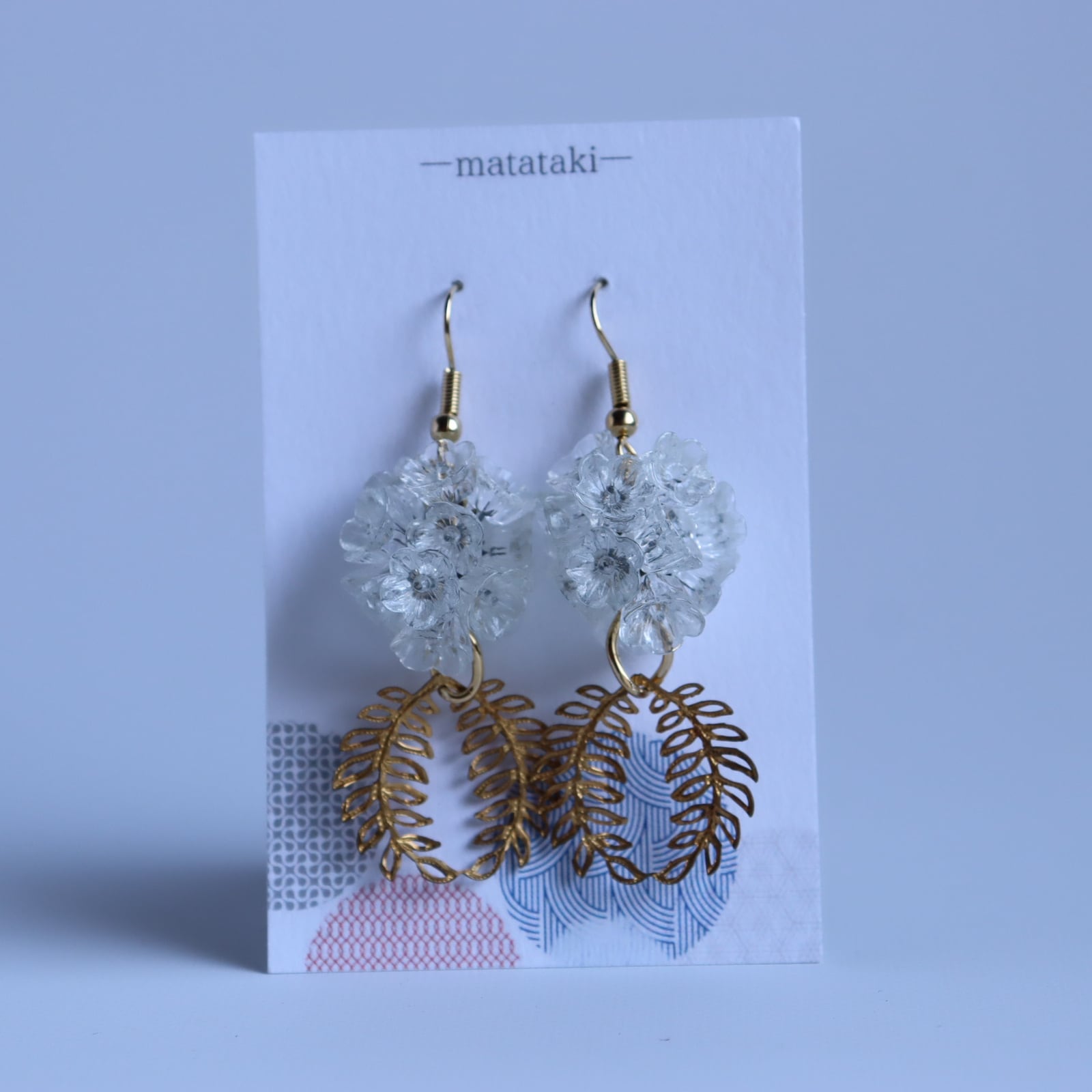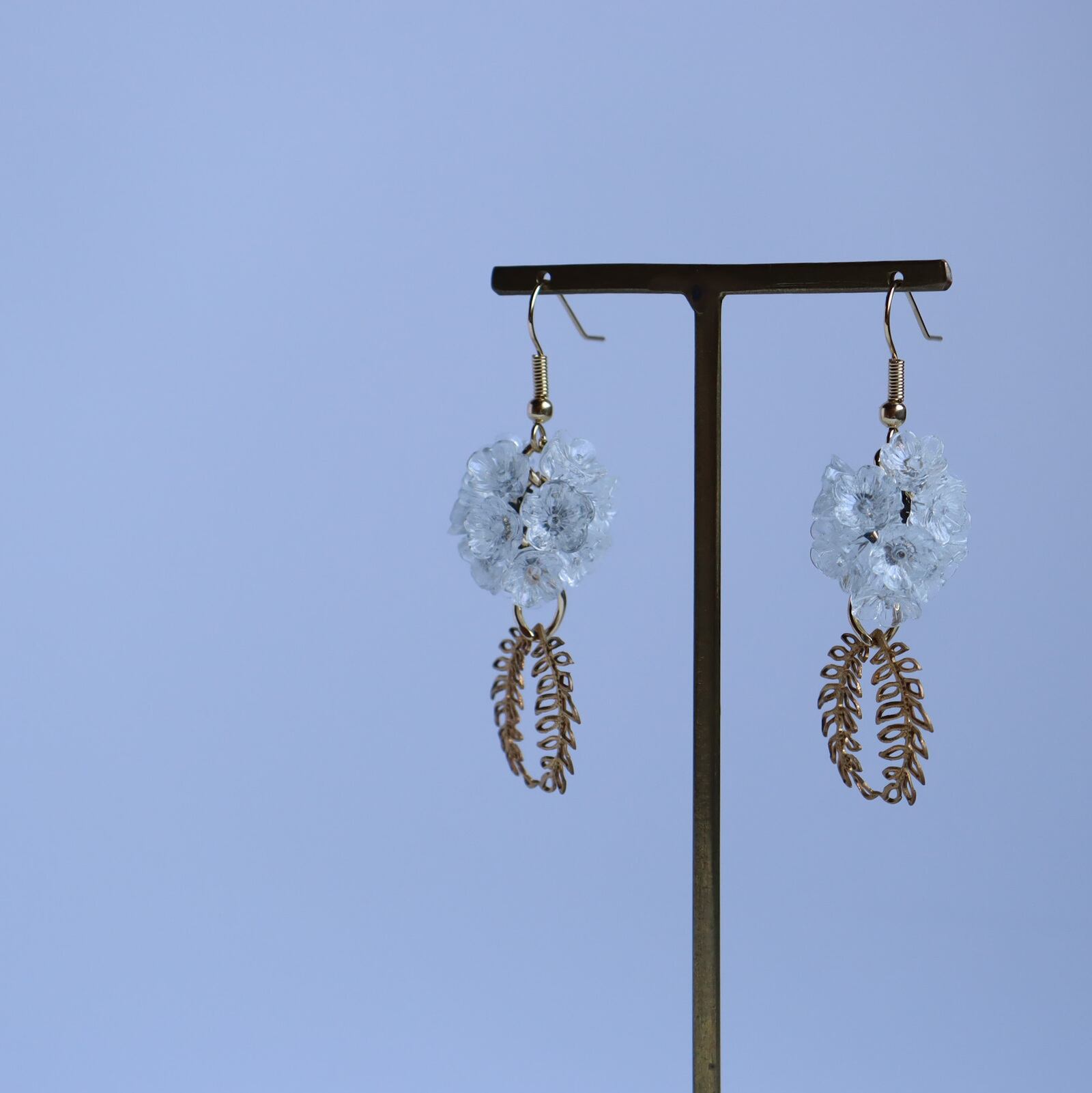透明感のある「花玉」モチーフが中心に配置され、光を受けると繊細にきらめきます。