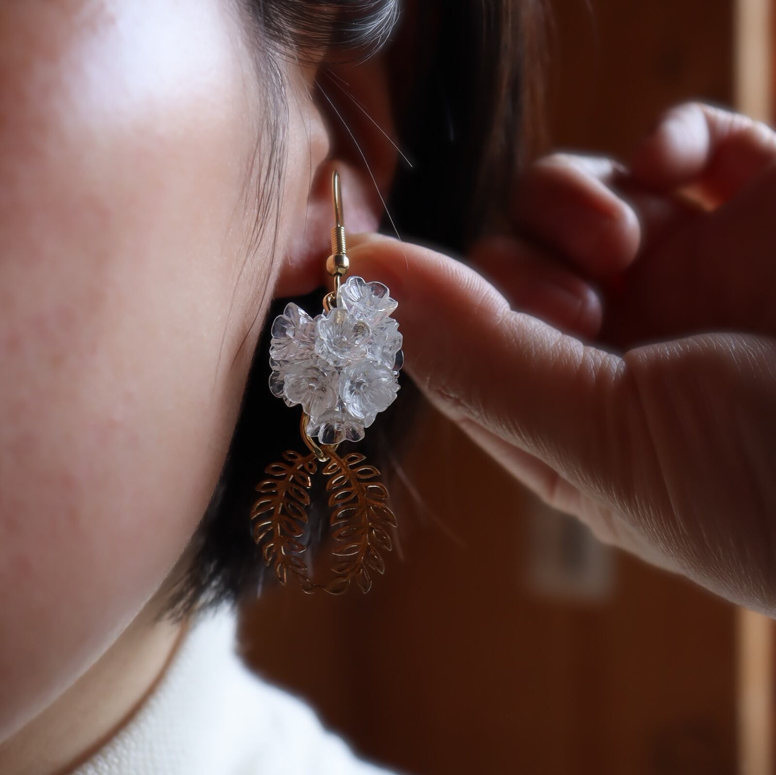 ヴィンテージのガラスビーズを使用した、上品で大人の雰囲気を纏う耳飾りのご紹介です。