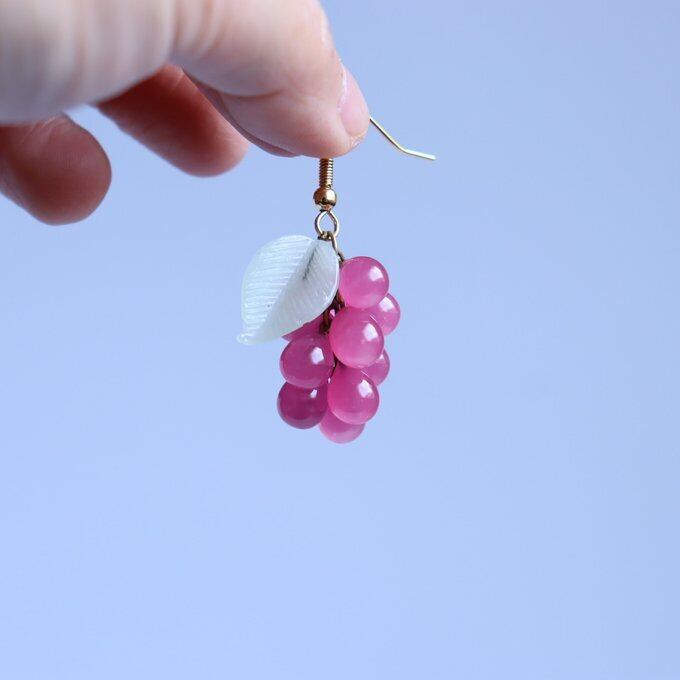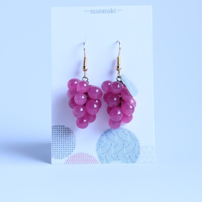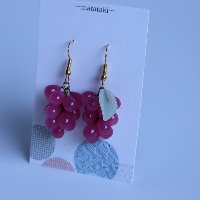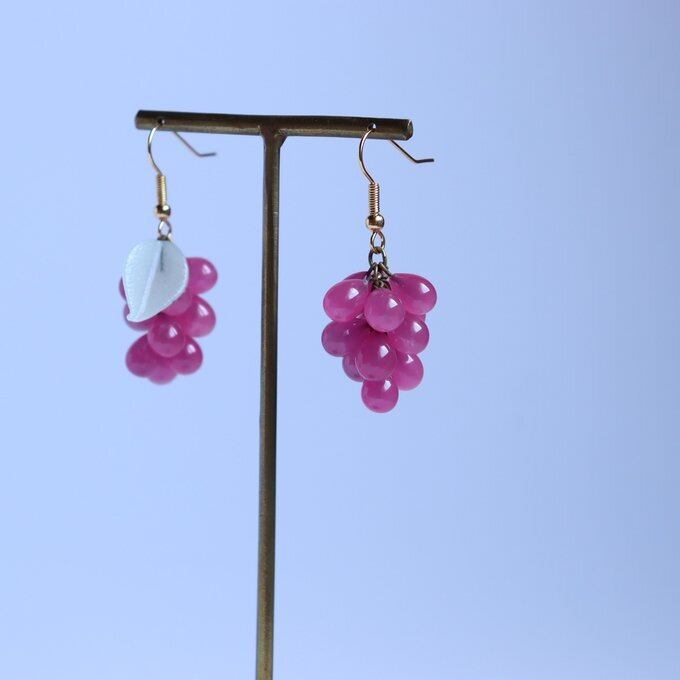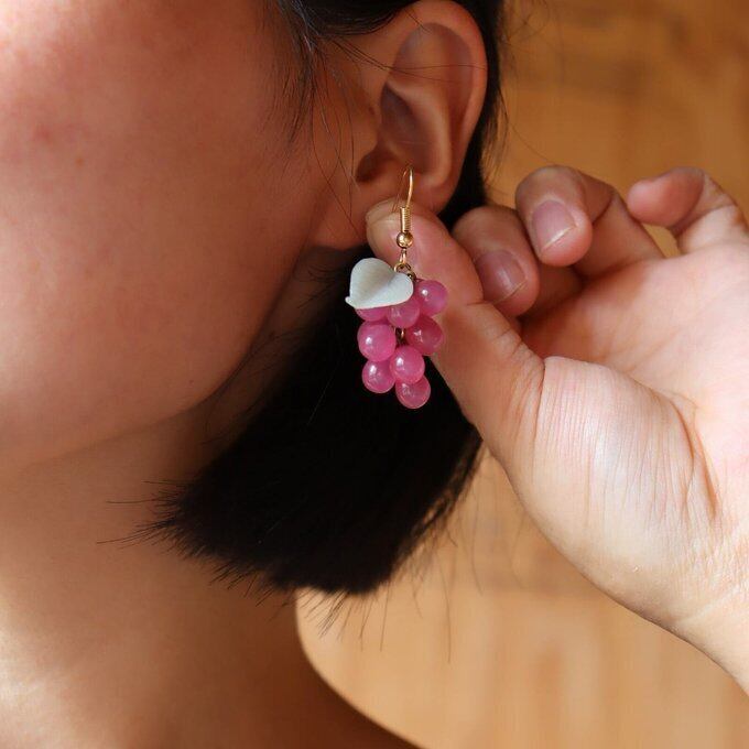海外製のヴィンテージガラスビーズを使用した、ぶどうモチーフの耳飾りのご紹介です。