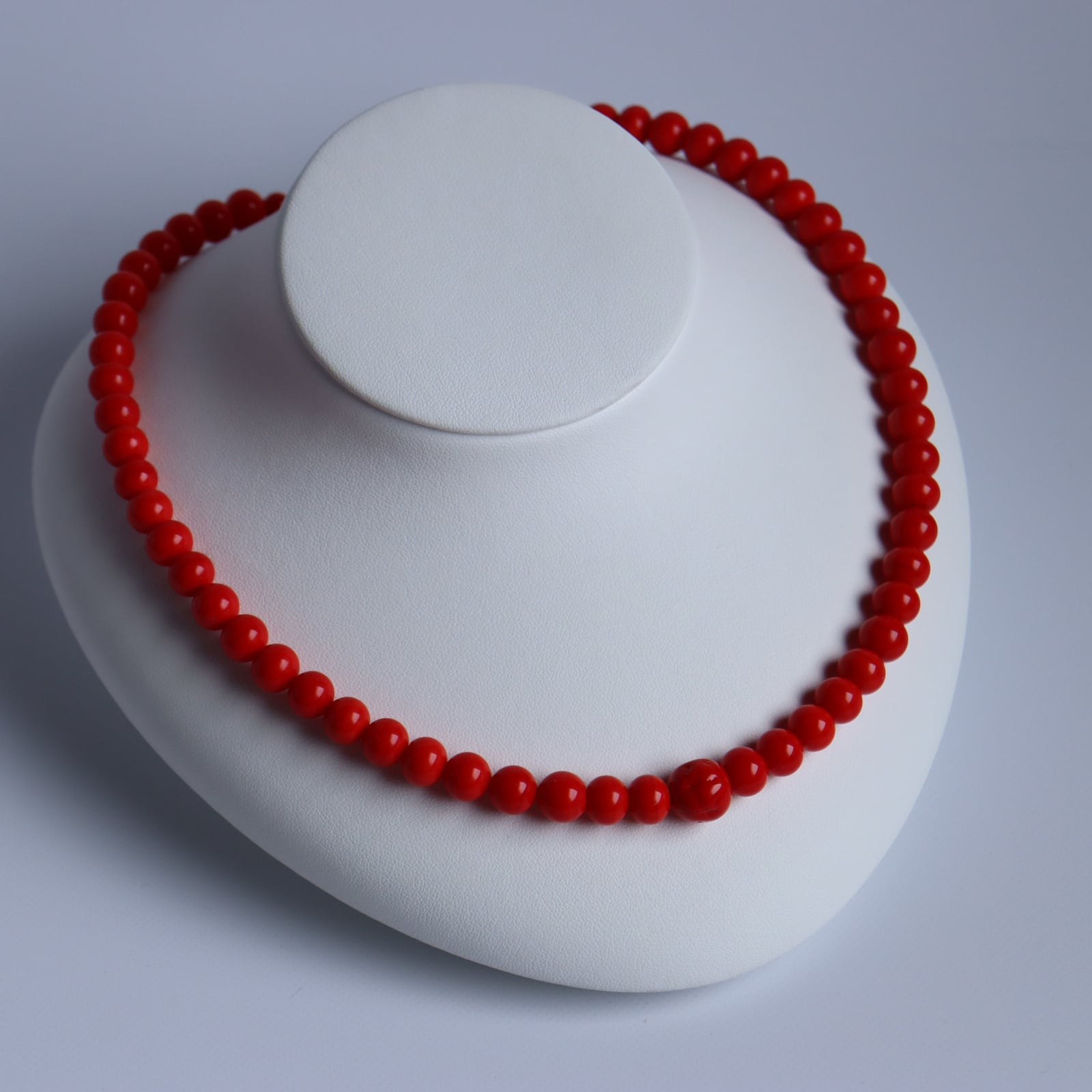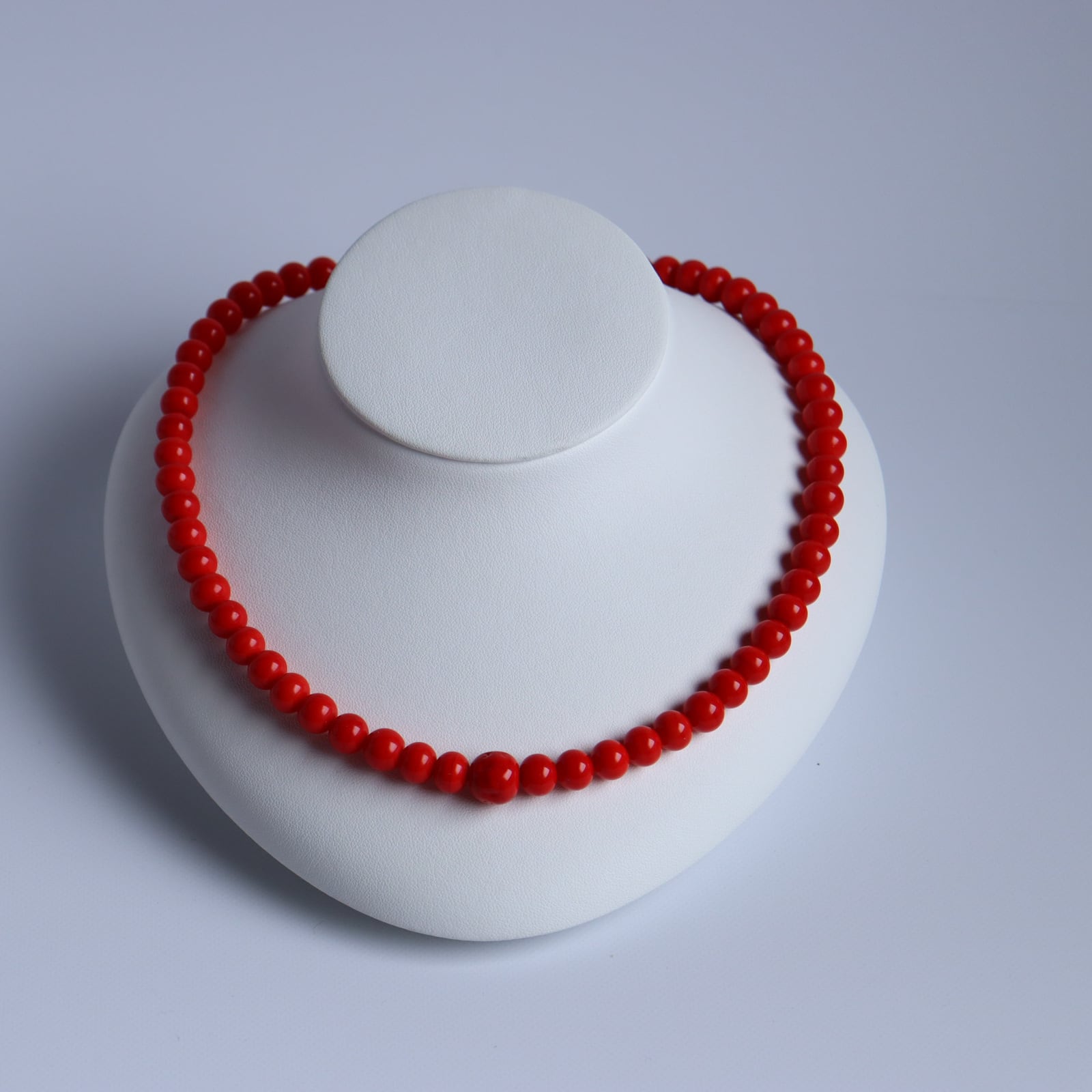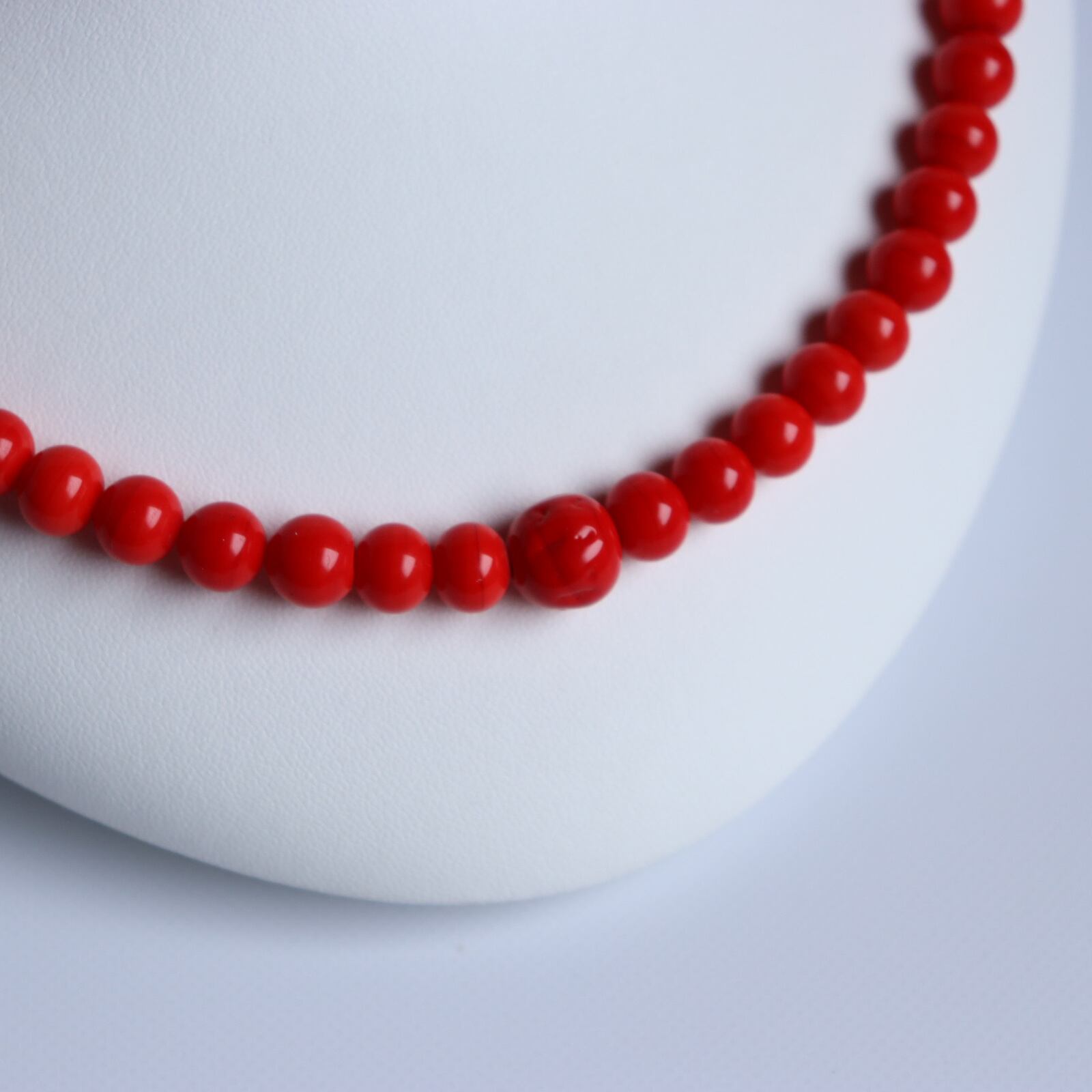 深みのある赤が印象的な、クラシカルな美しさを持つガラスビーズ。