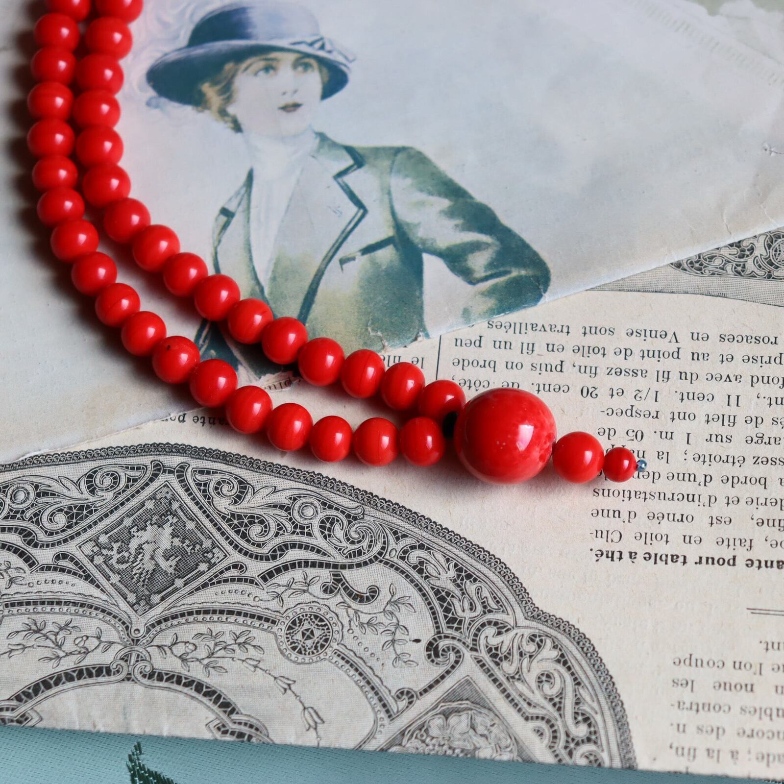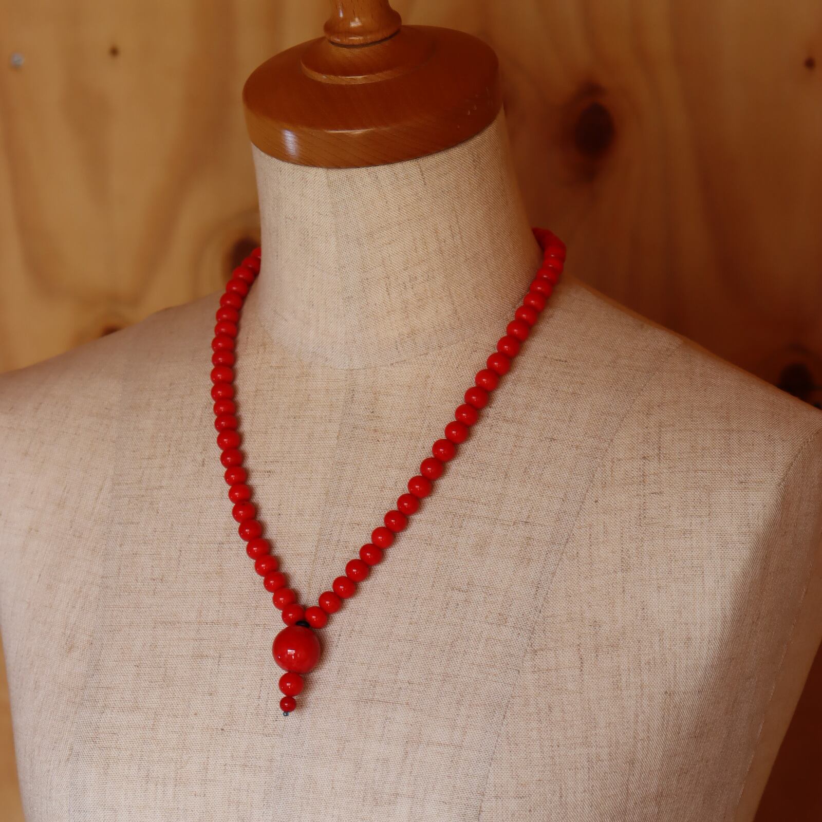 深みのある赤が印象的な、美しいヴィンテージガラスビーズ。