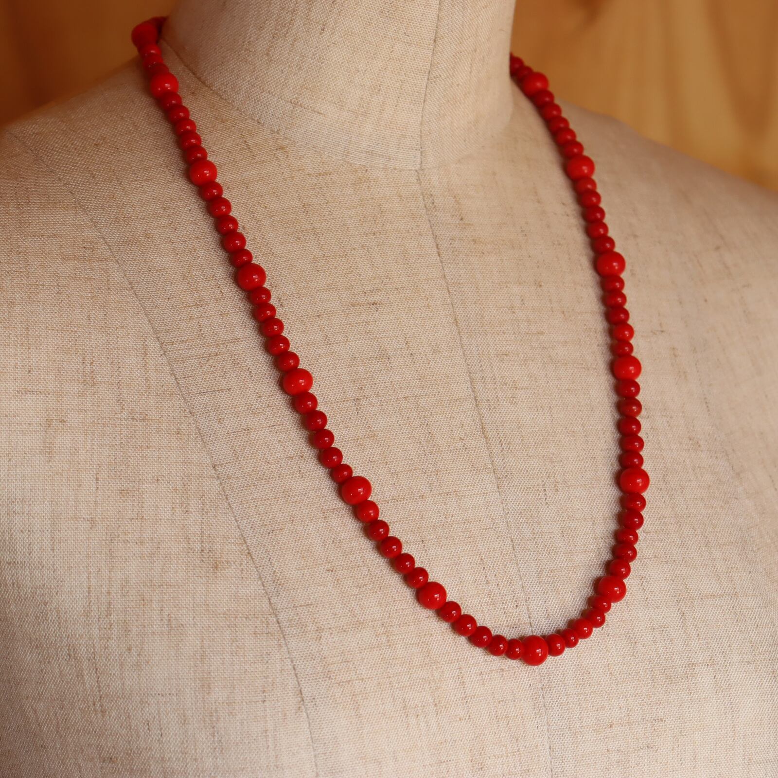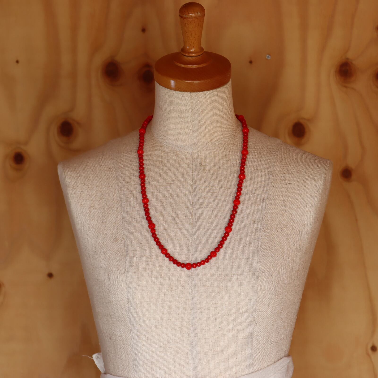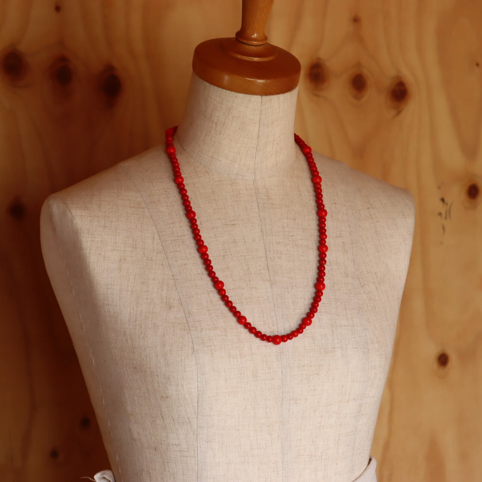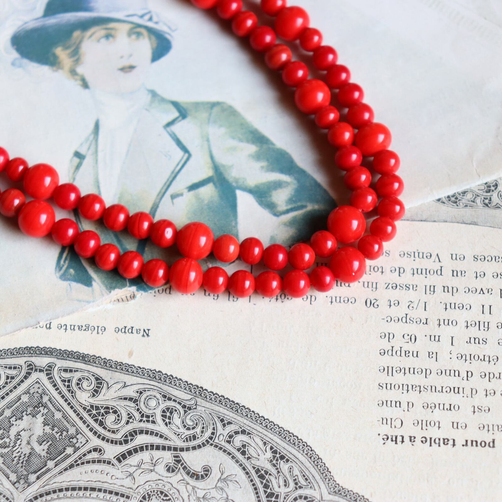 深く美しい赤が印象的なガラスビーズ。