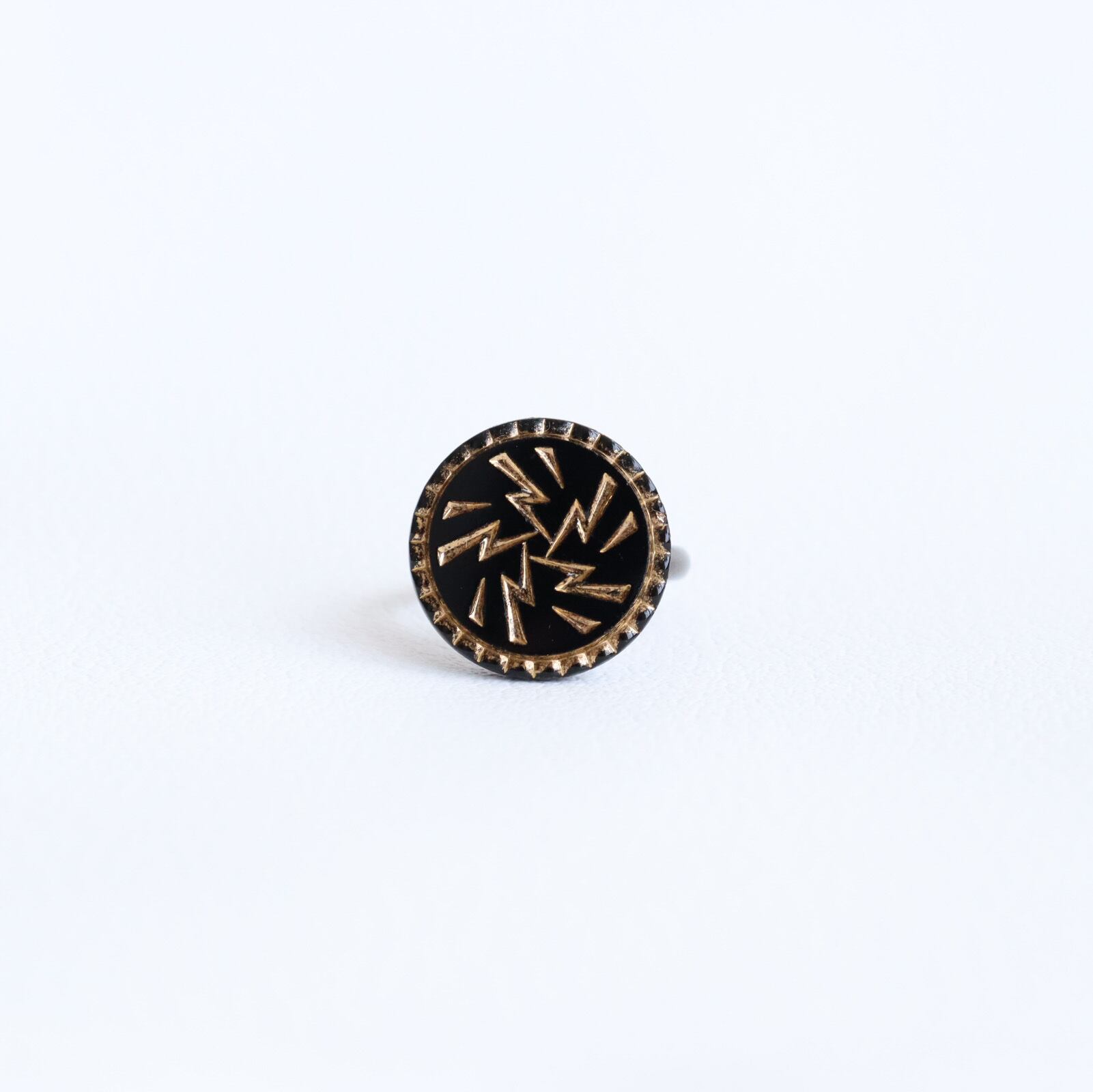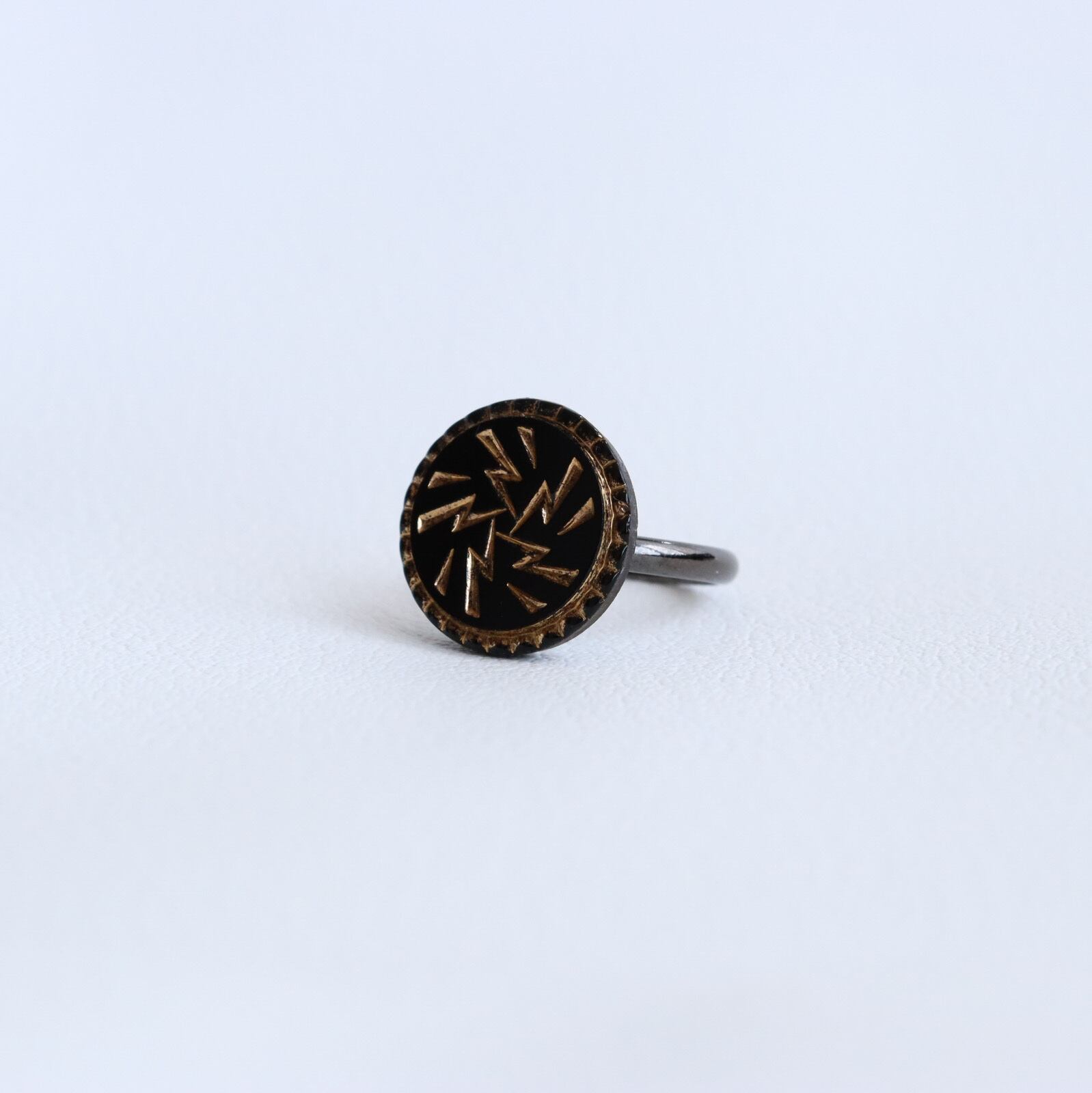 刺激的なデザインのガラスボタンを加工し指輪に仕上げました。