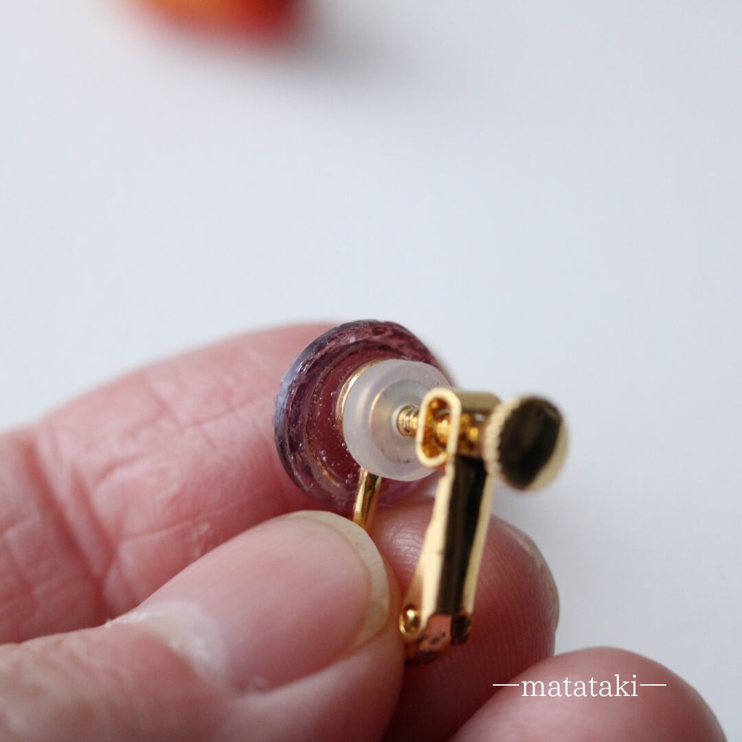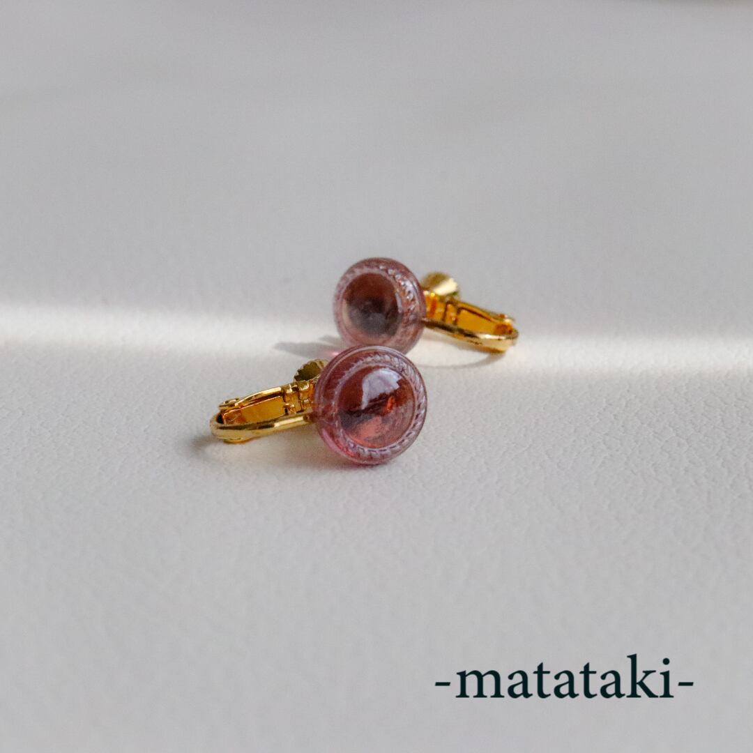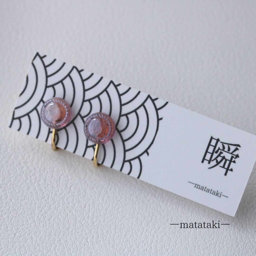そんなコスモスの様な可愛いガラスボタンを使用した小さな耳飾りのご紹介です。