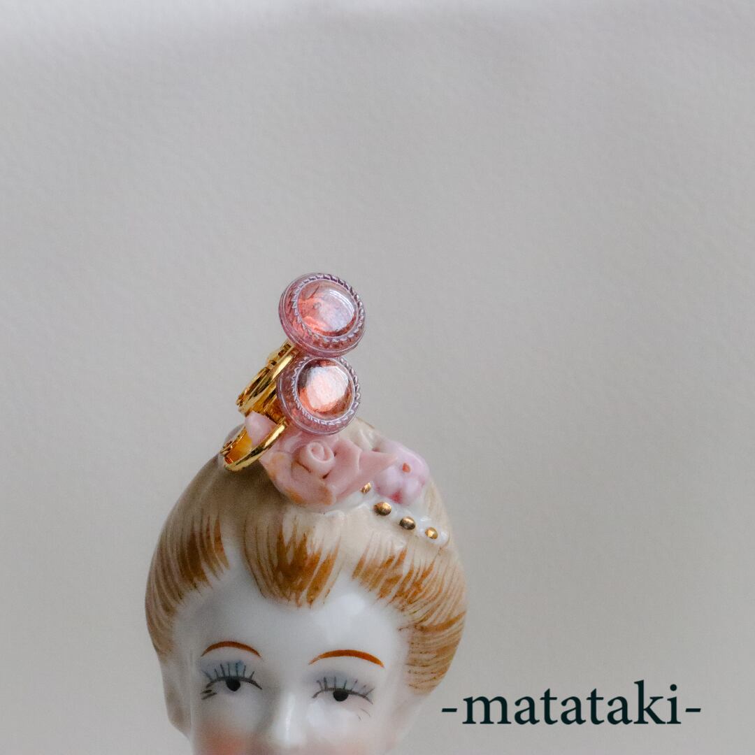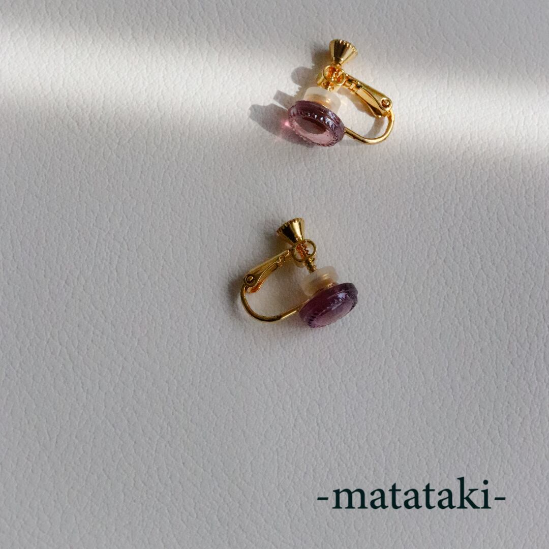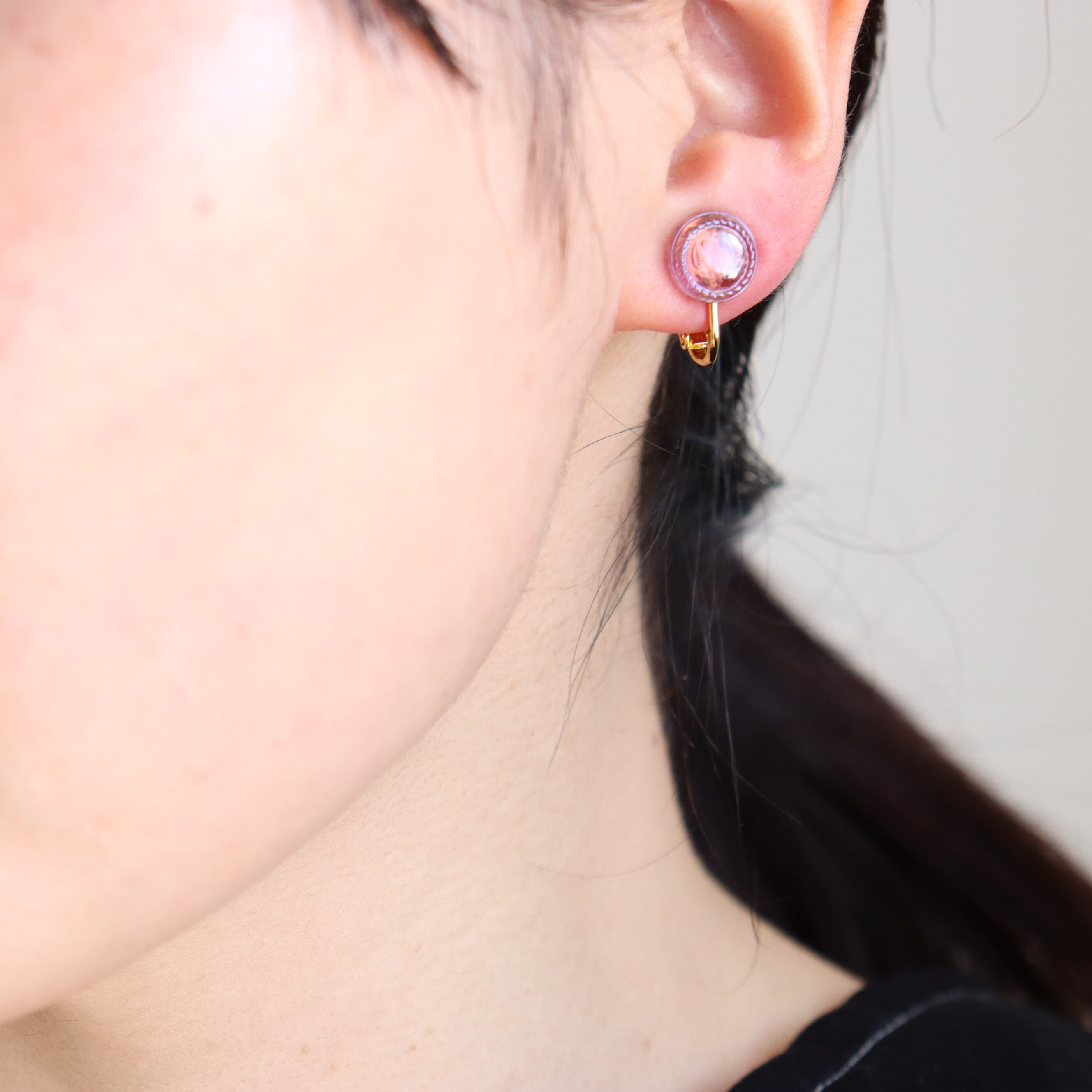 そんなコスモスの様な可愛いガラスボタンを使用した小さな耳飾りのご紹介です。