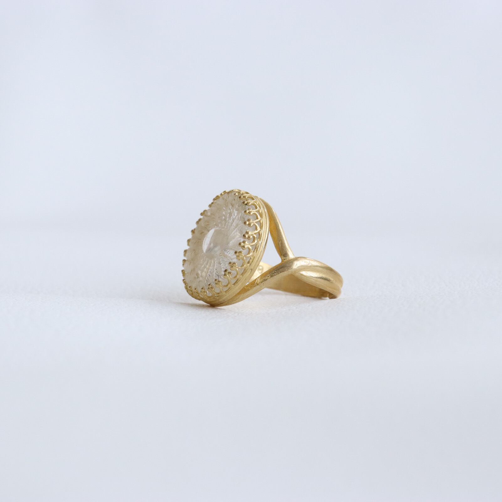 中心の水晶玉の様な光沢感のあるガラスとその周りを囲む