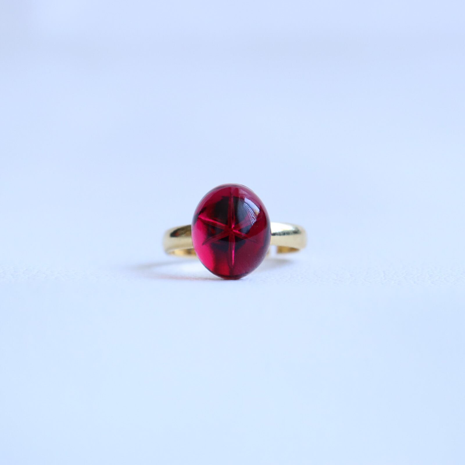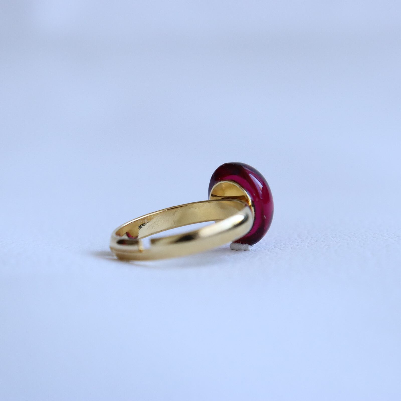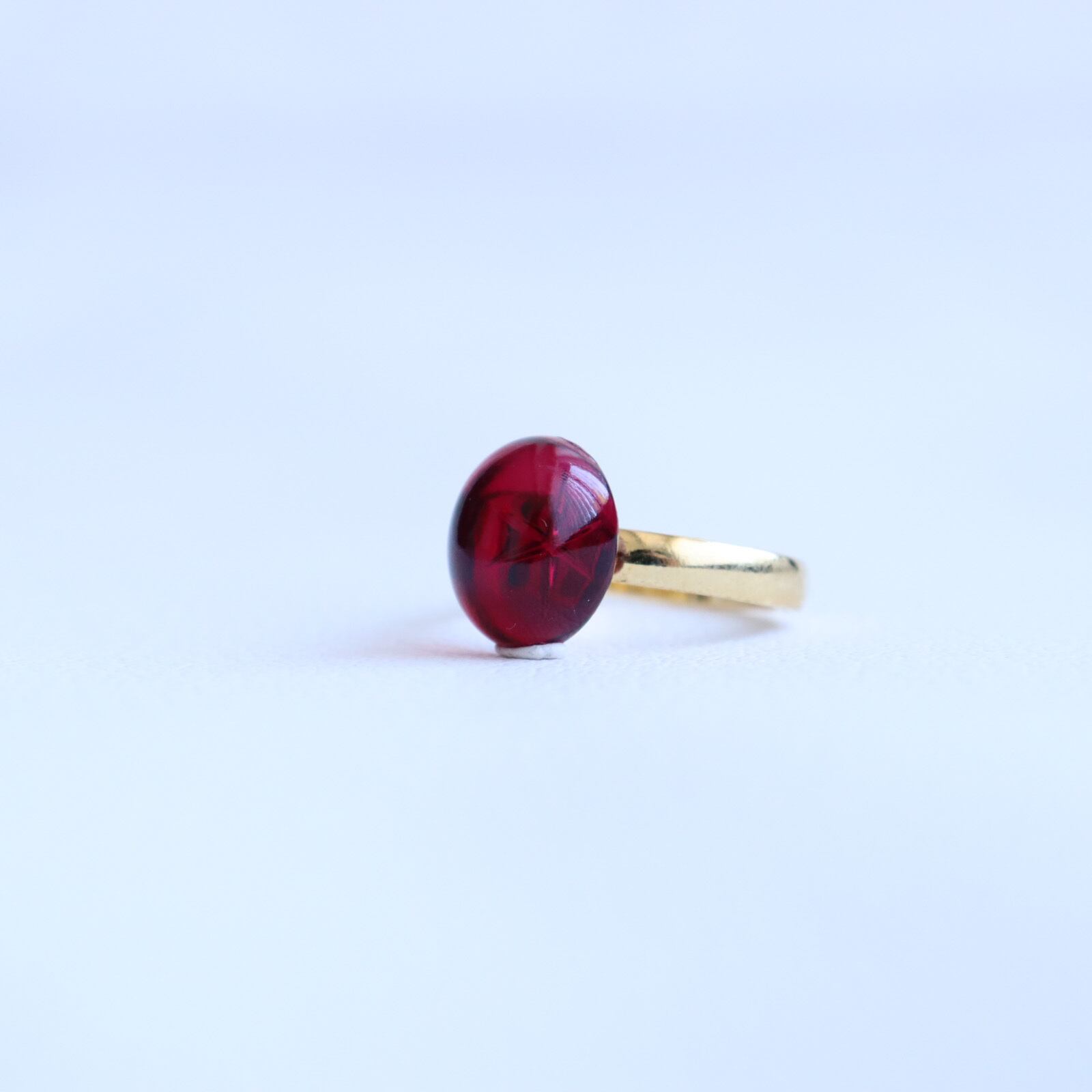 上質な赤のガラスカボションを使用した指輪です