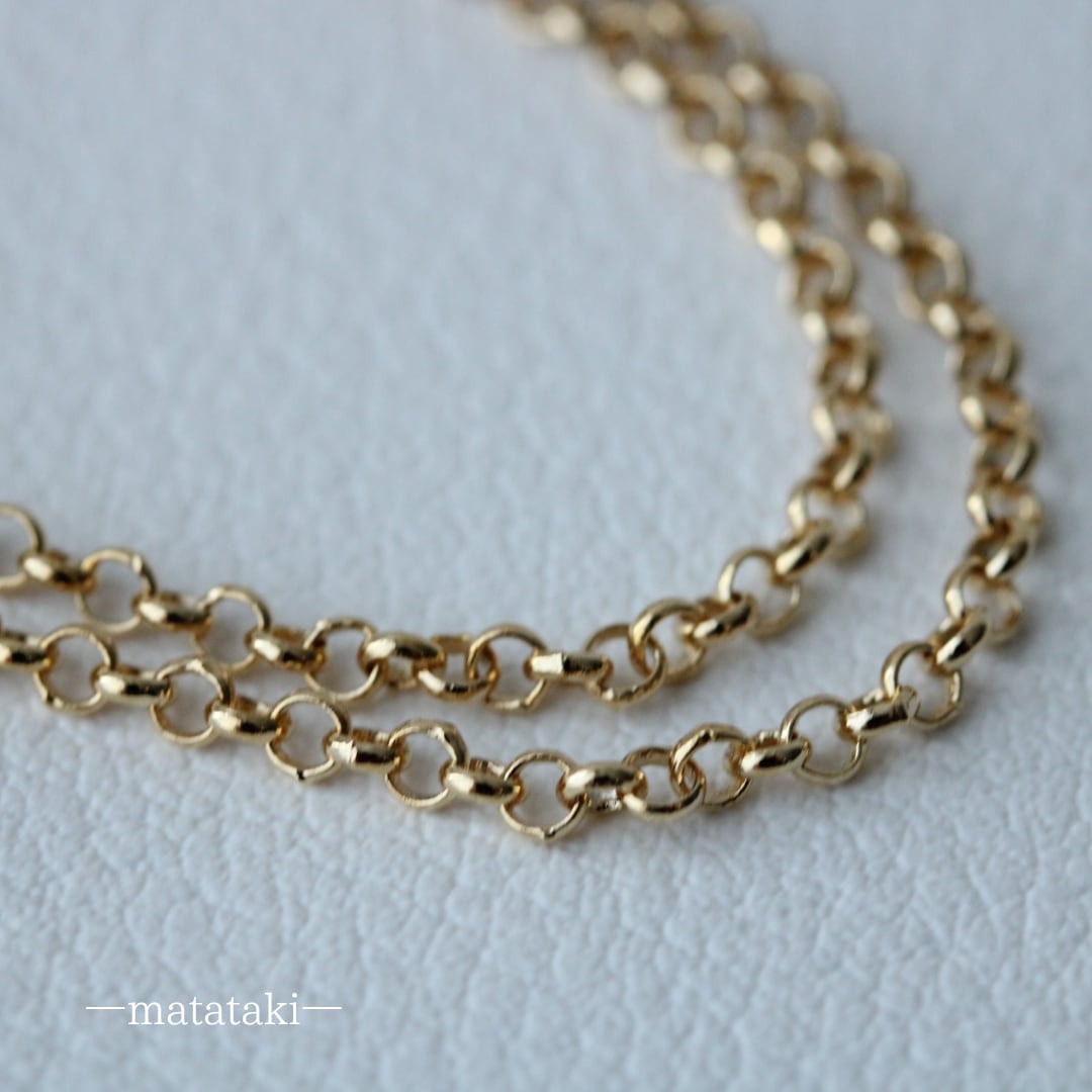 使用したチェーンは均等な円が連なる、金のチェーン。