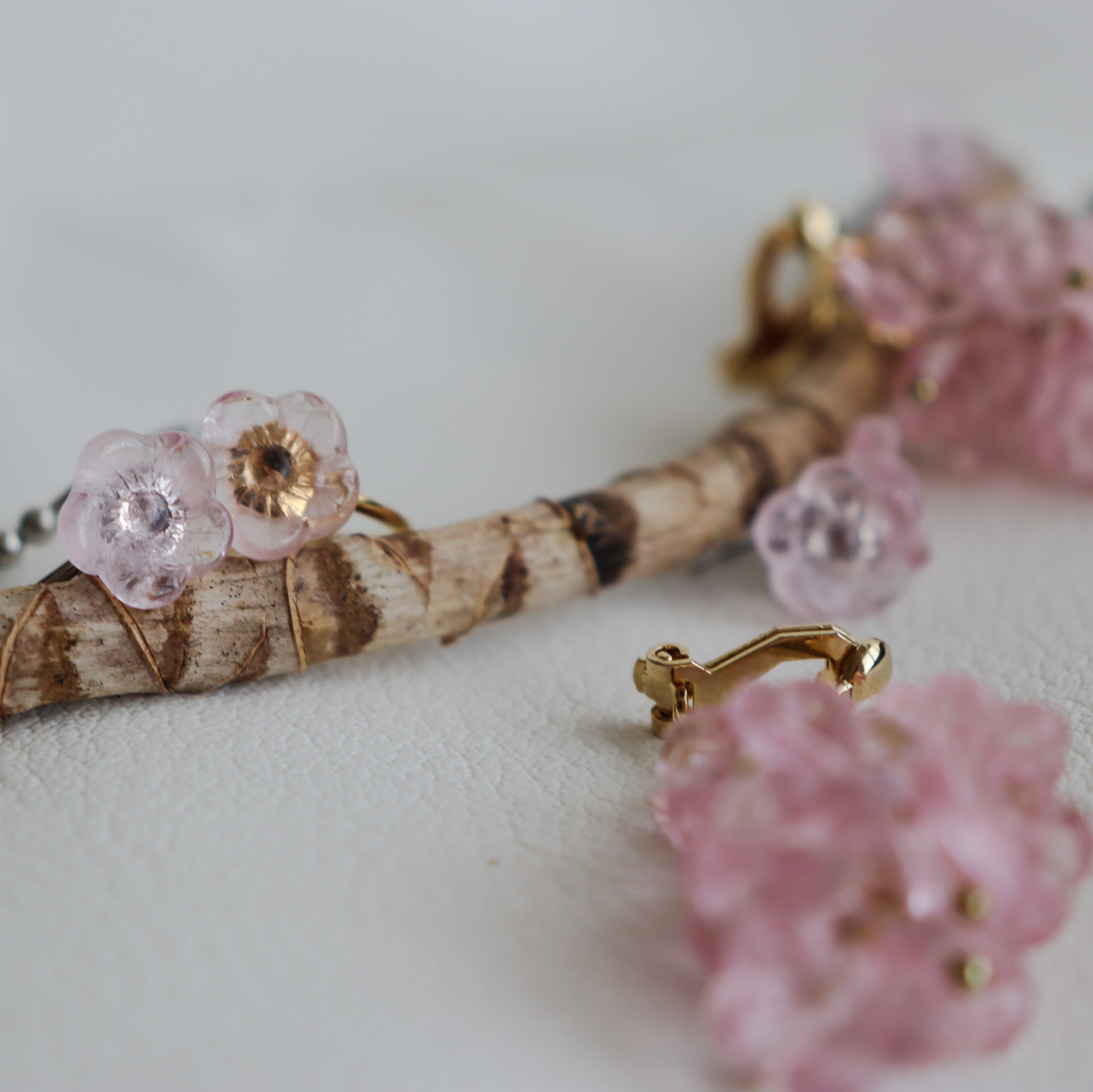 使用したのは、透明感のあるピンク色のガラスビーズ