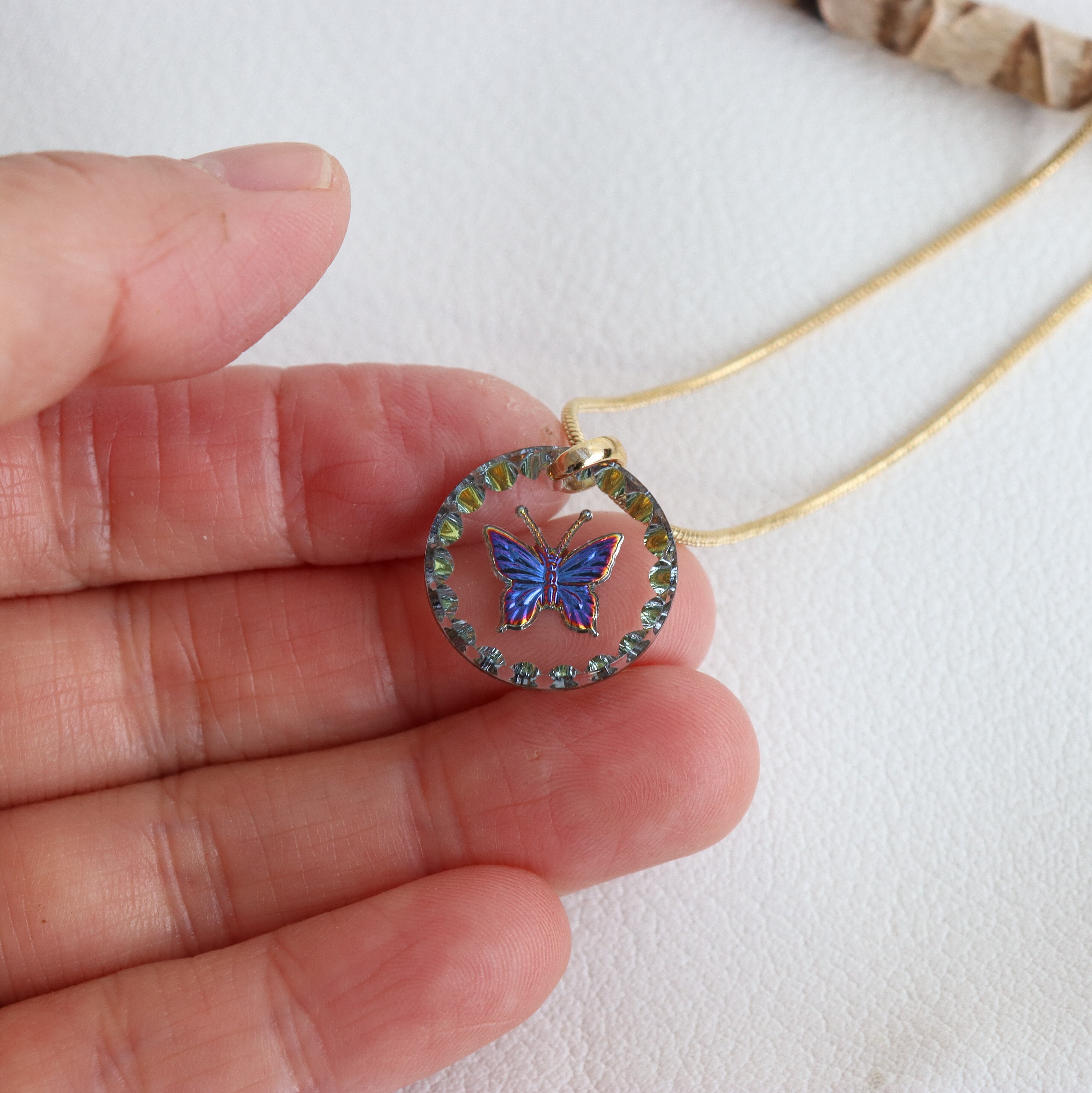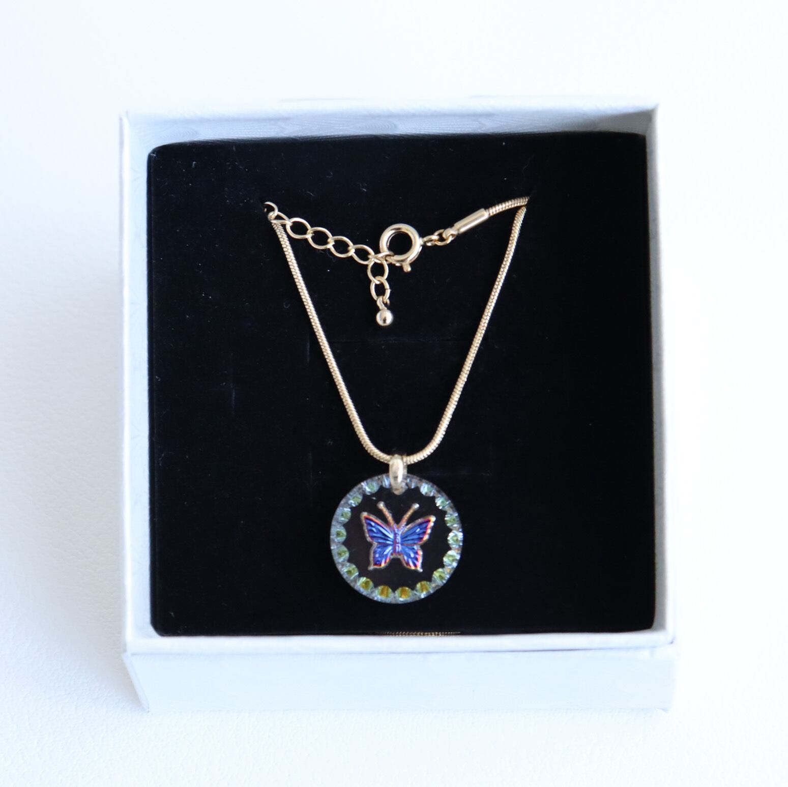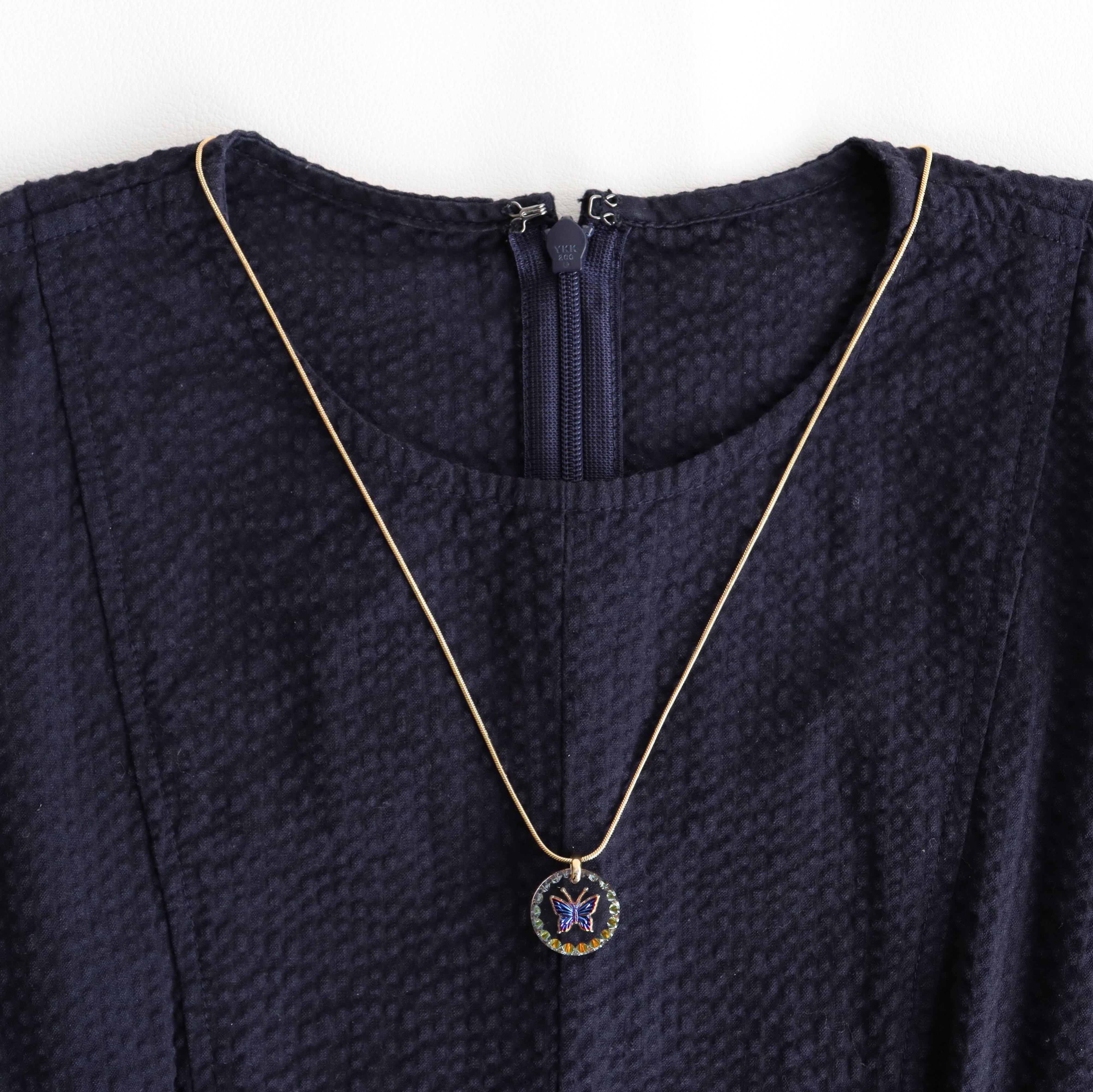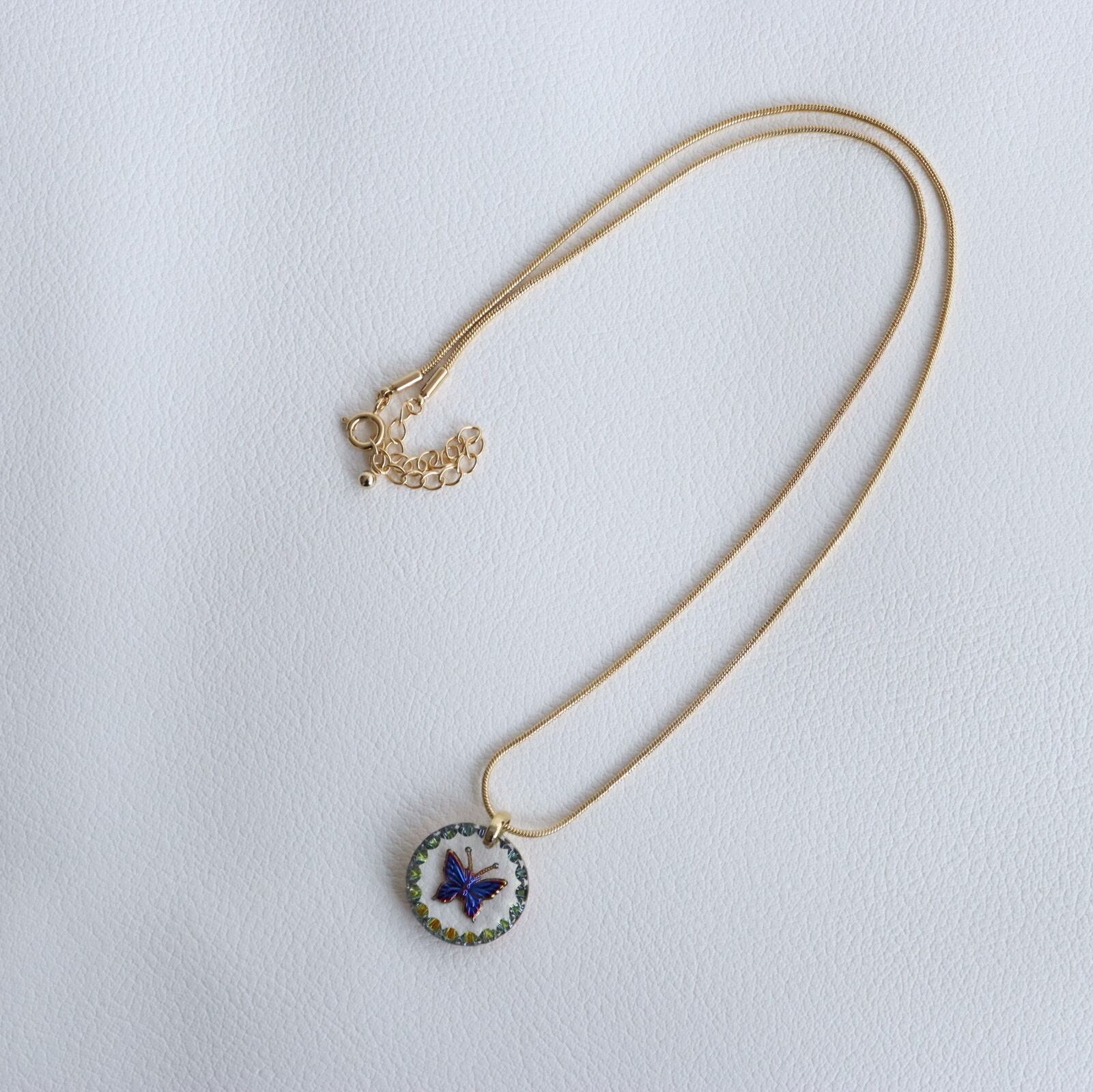 美しい円の中で永遠に羽ばたき続ける蝶が彫り込まれたインタリオのネックレスです。