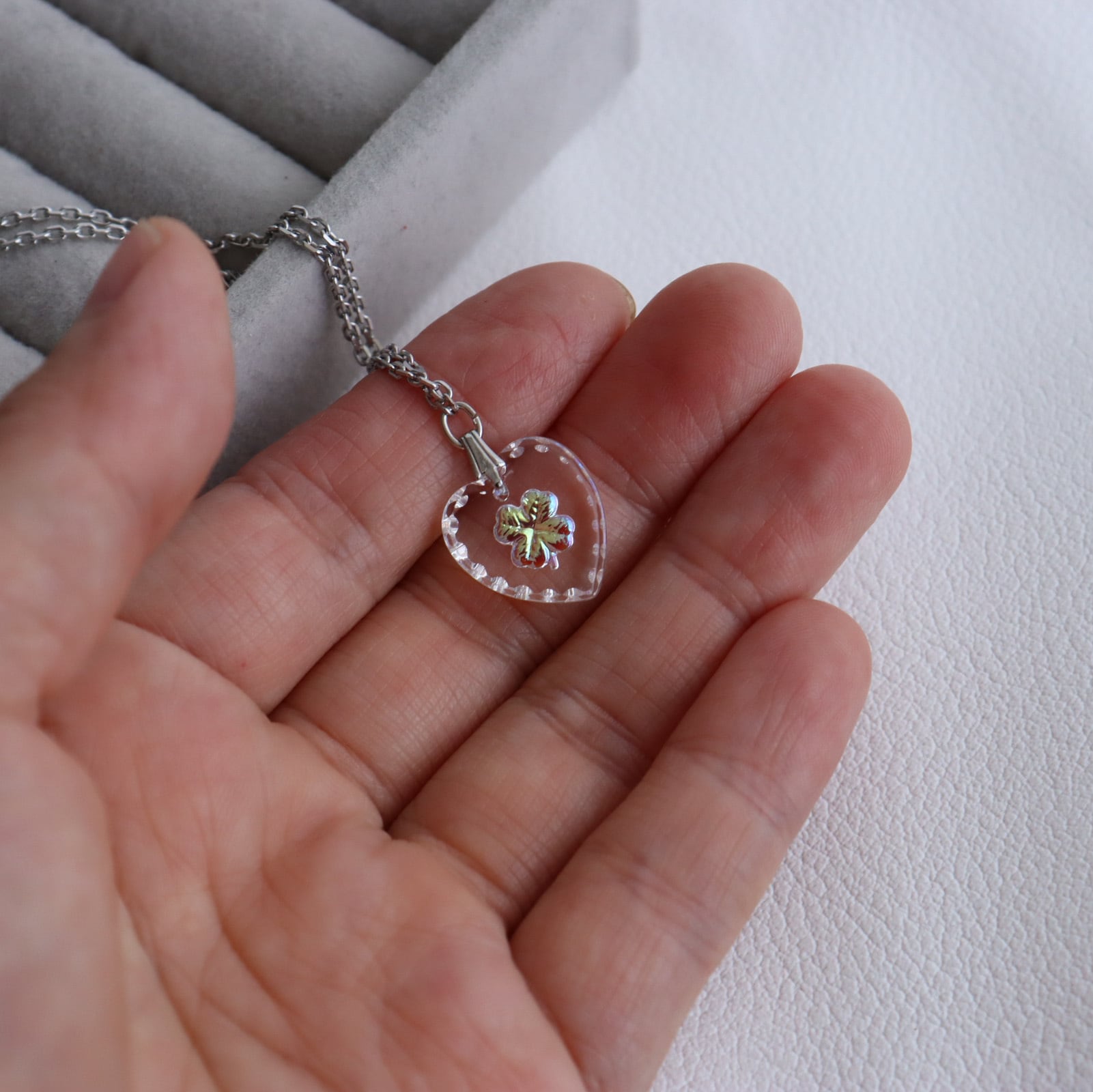 ハートの中に四葉のクローバーが美しいインタリオを使用した