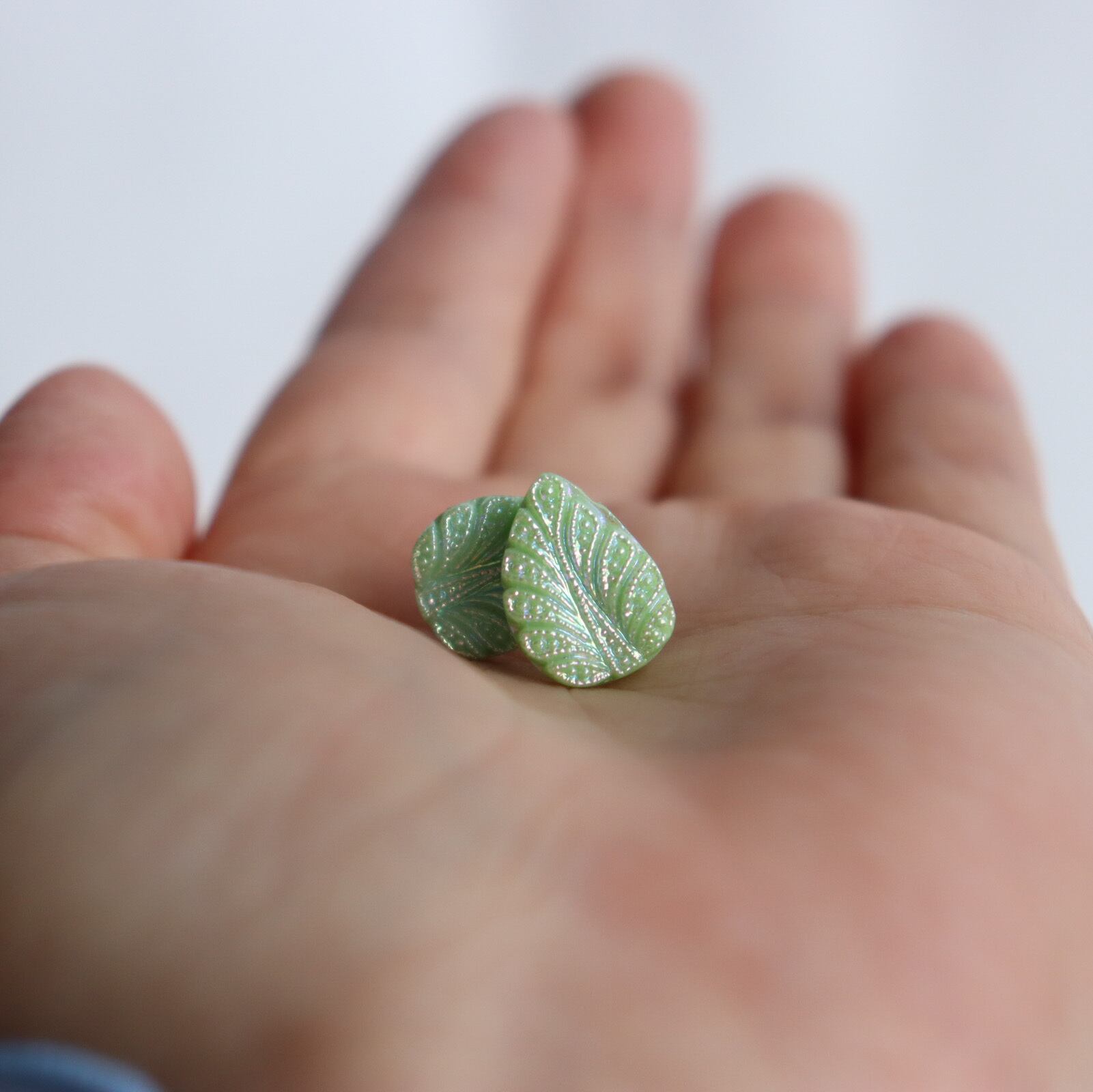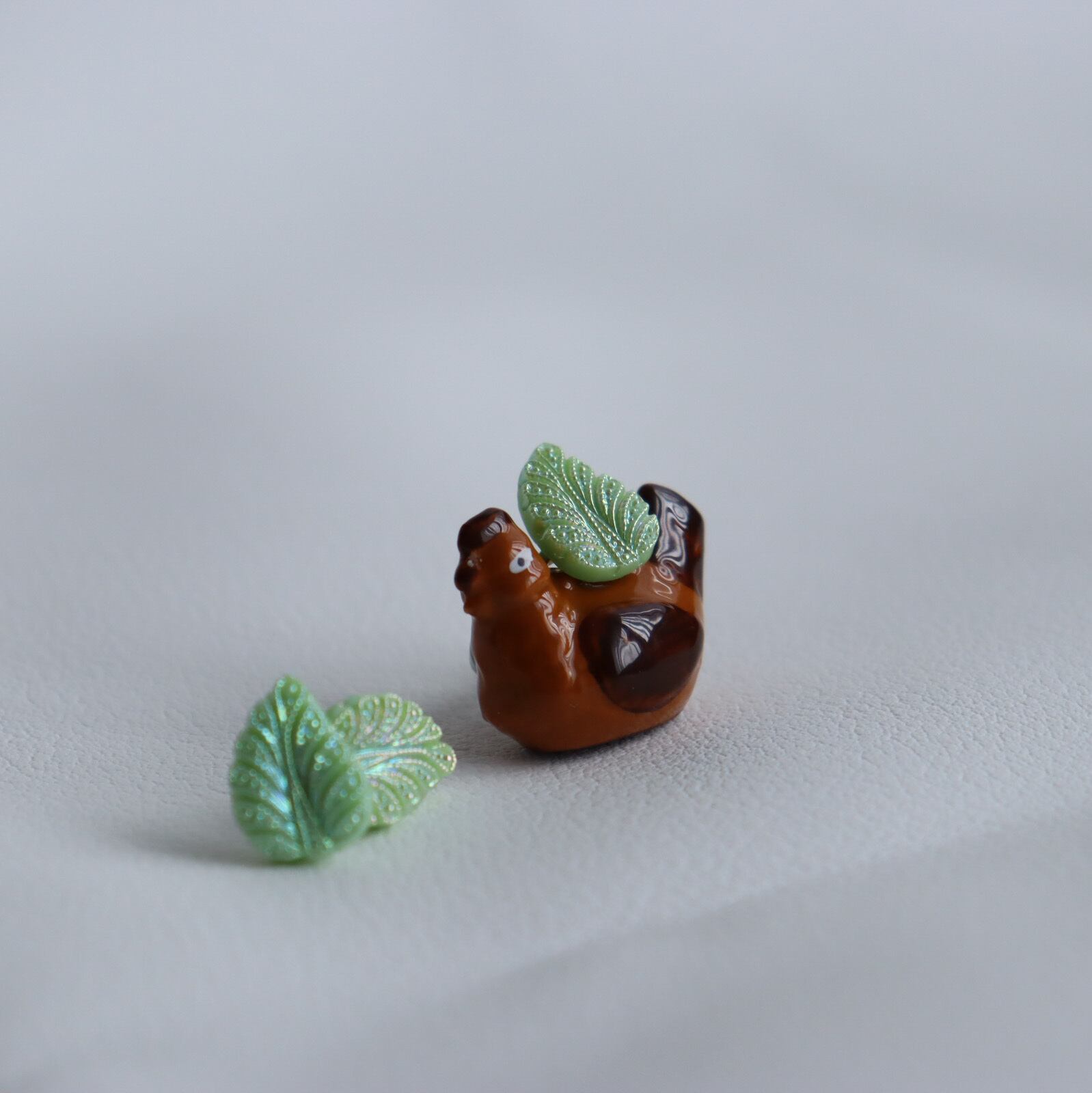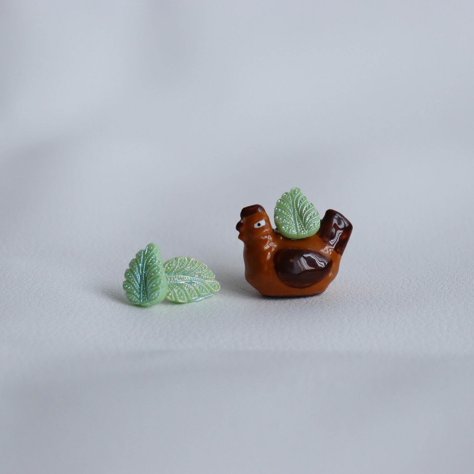 葉っぱをチョンと耳に着けたようなシンプルなデザインの耳飾りに仕上げました。