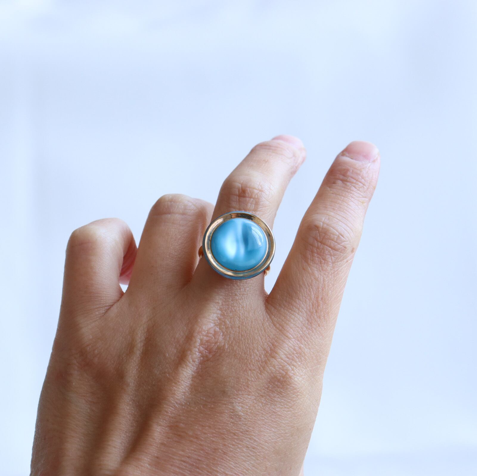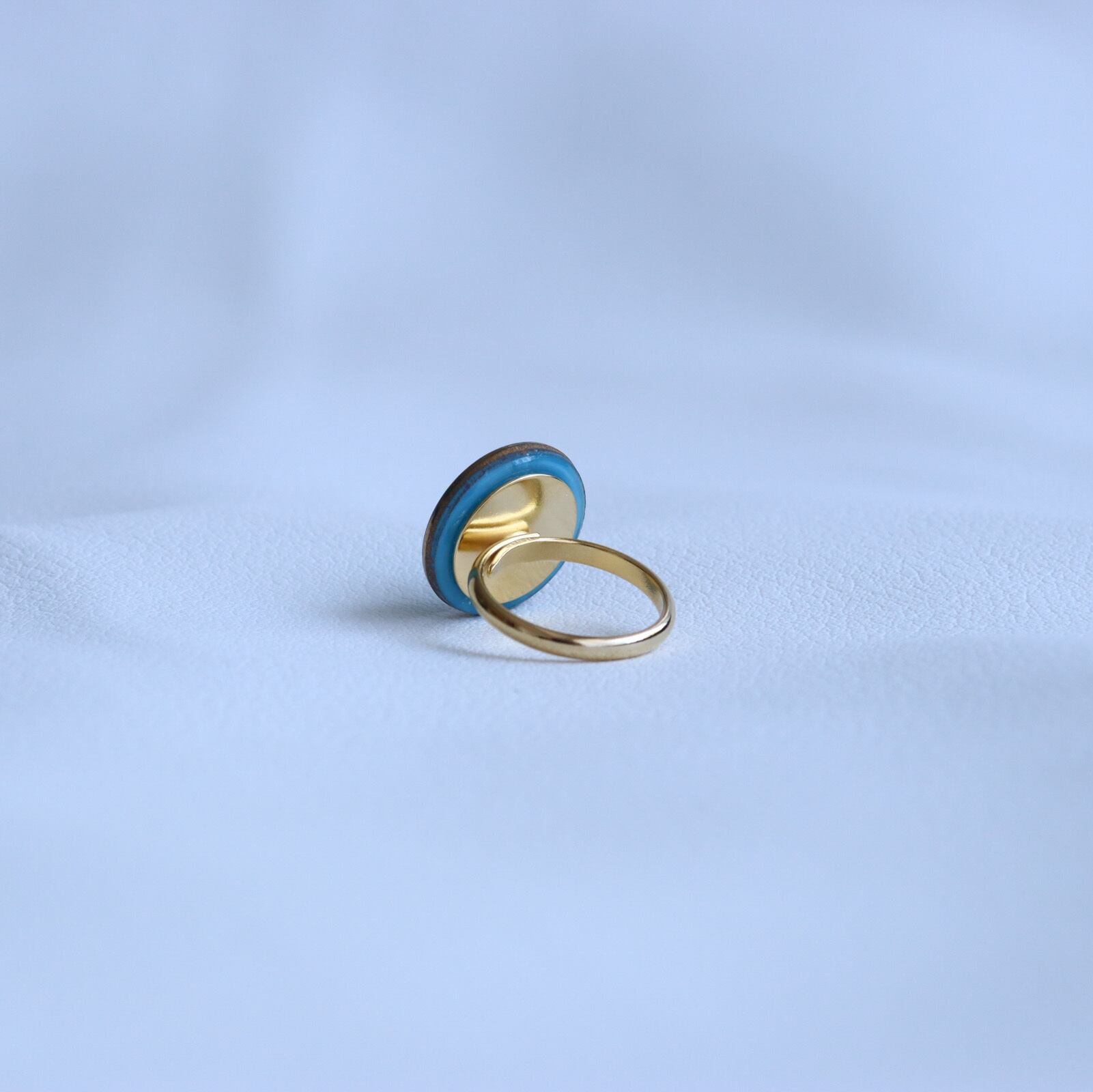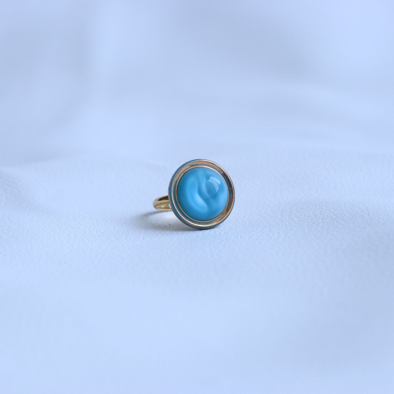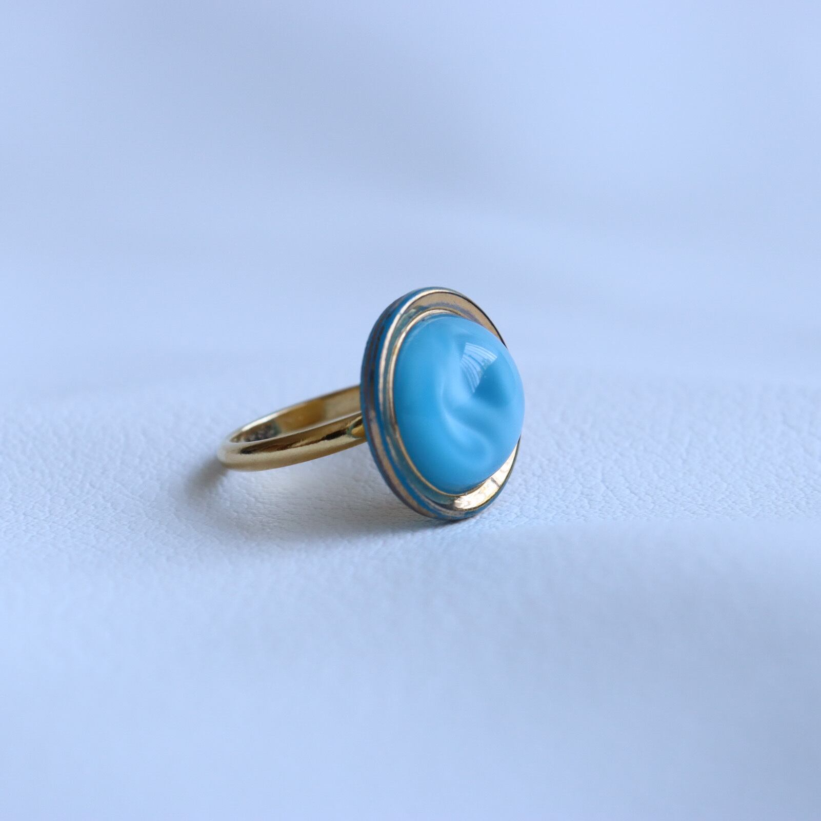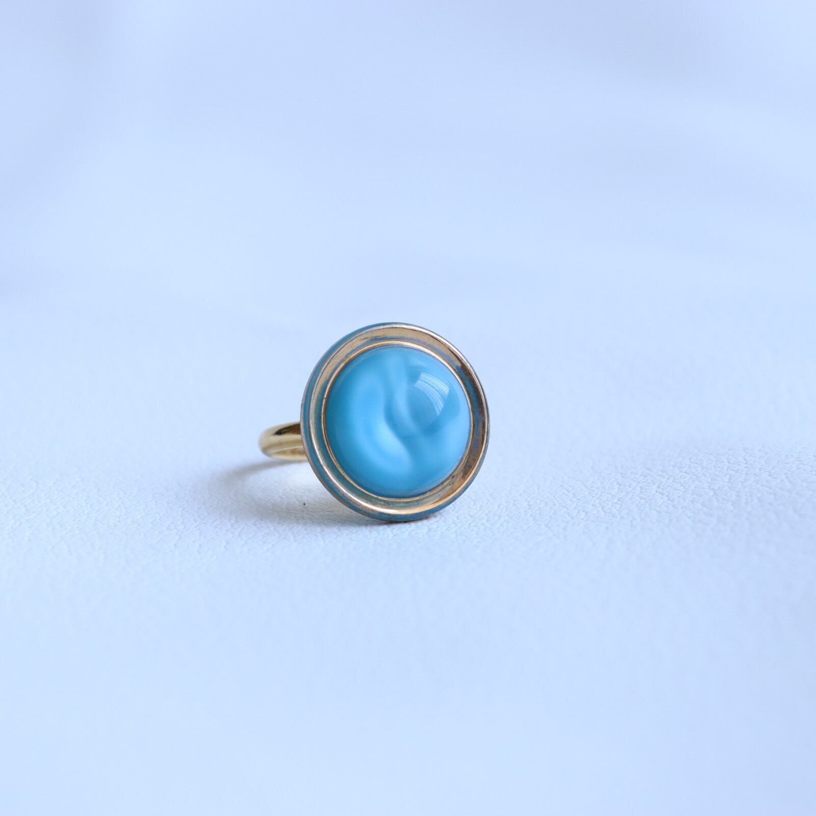 ”ムーングロウガラスボタン”を使用した指輪のご紹介です。