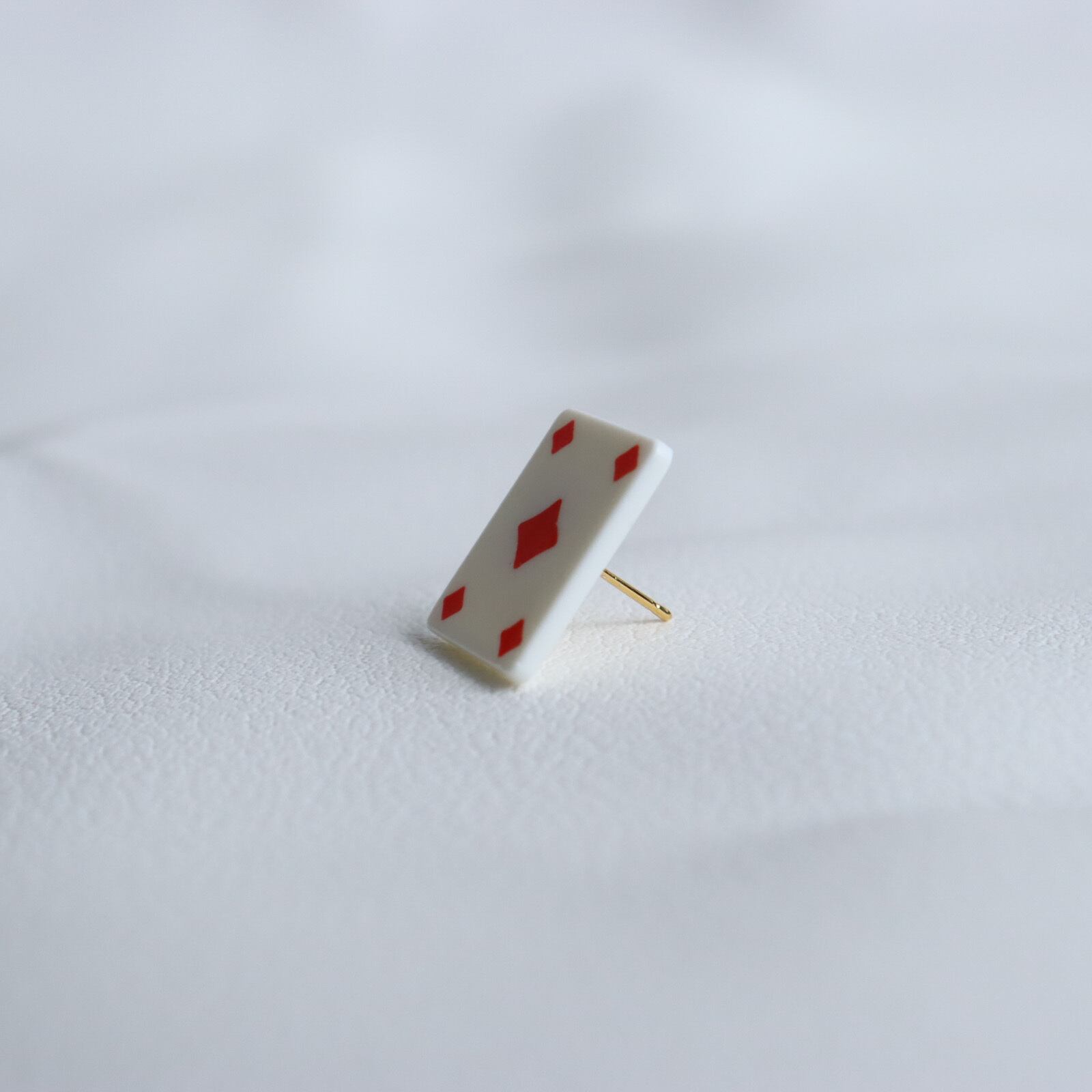 さぁトランプを着けてお出かけ!、、、となんとも非日常的で気分の上がるボタンジュエリーのご紹介です。ボタンの素材はプラスチック。1ミリ程の厚さのとても軽いボタンです。トランプの柄はダイヤのA(エース)。フランス製のボタンです。