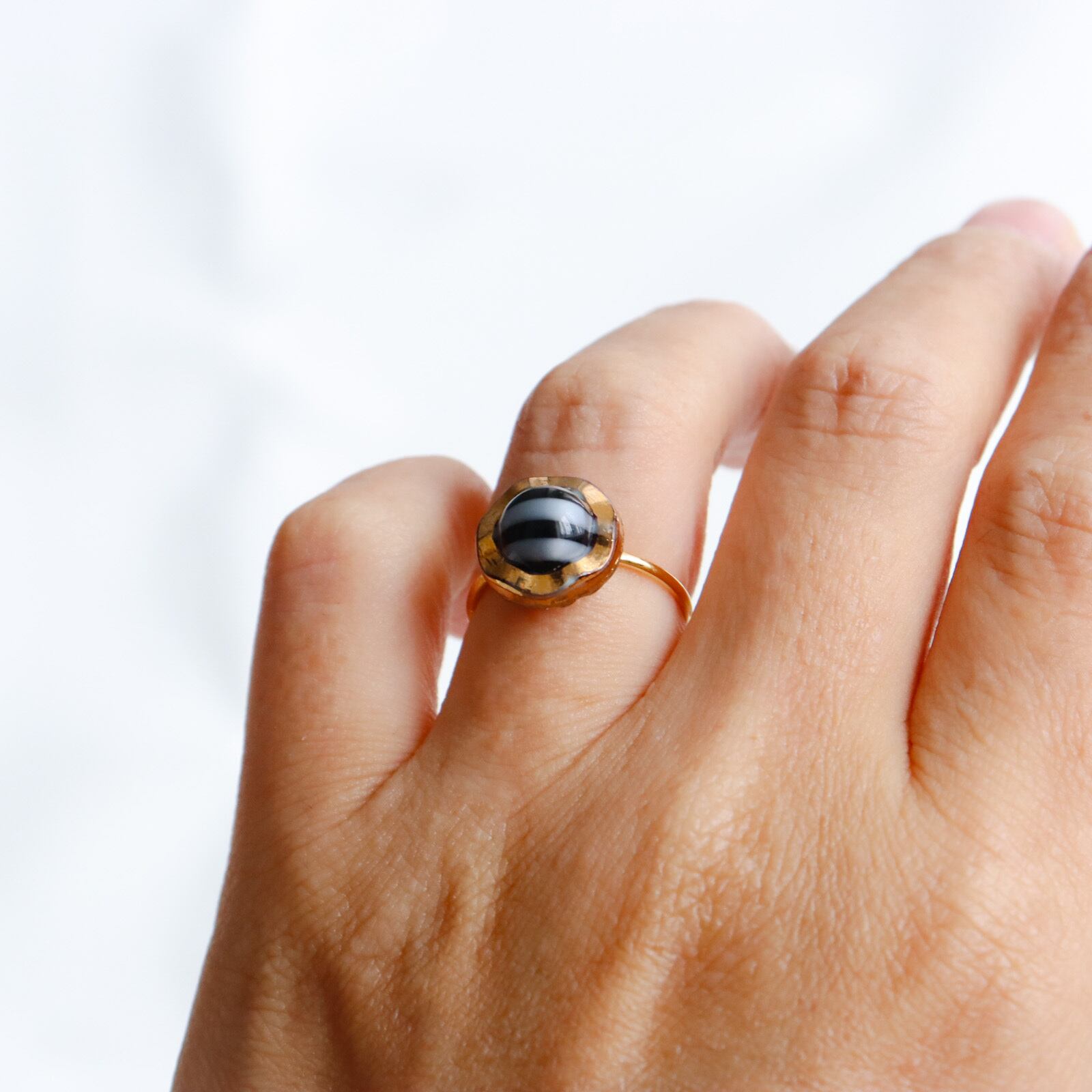 1950年代、ドイツ製造のガラスボタンを加工して、指輪を作成しました。