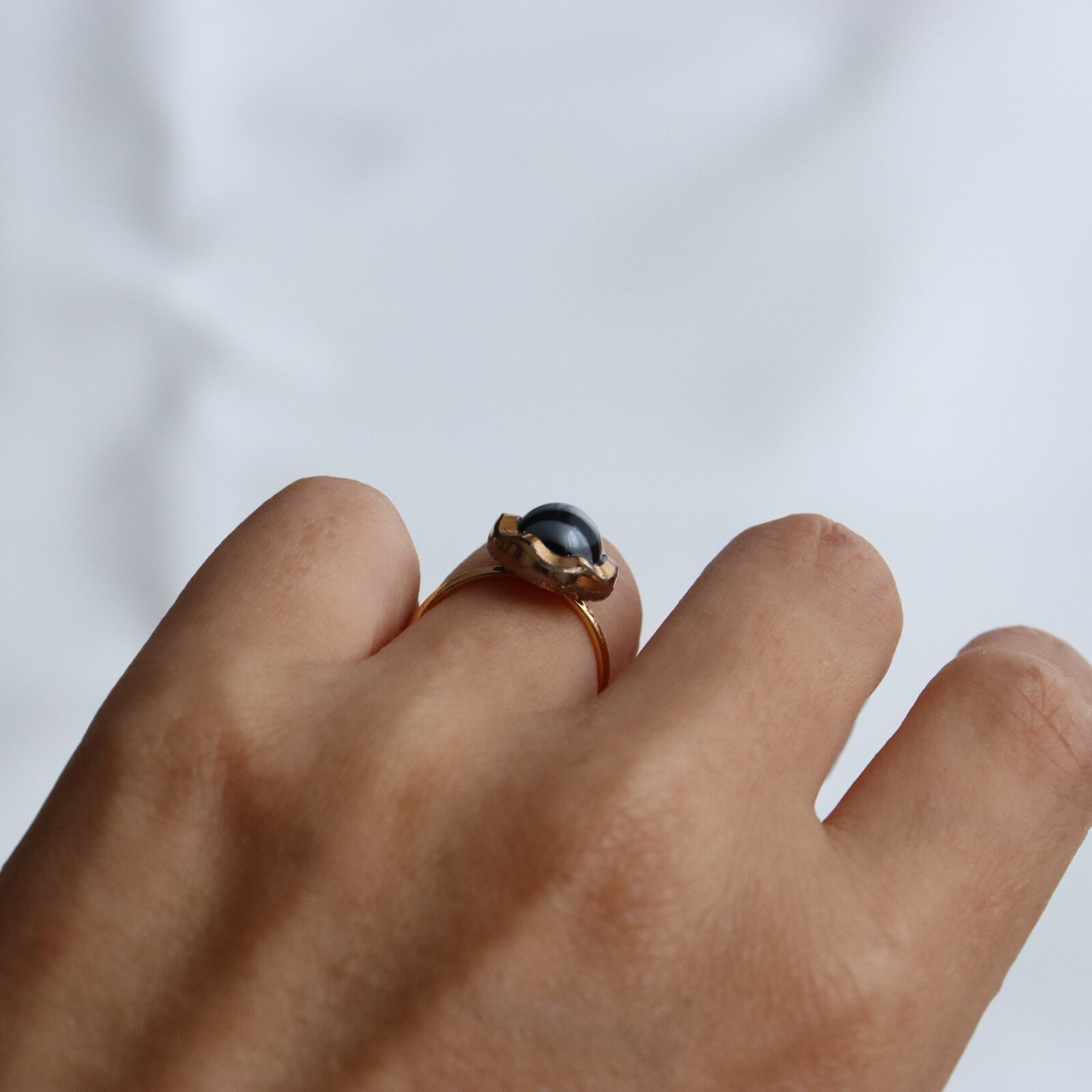 指輪のパーツは10号の細身の金メッキの物を使用しています。サイズ調整可能です。
