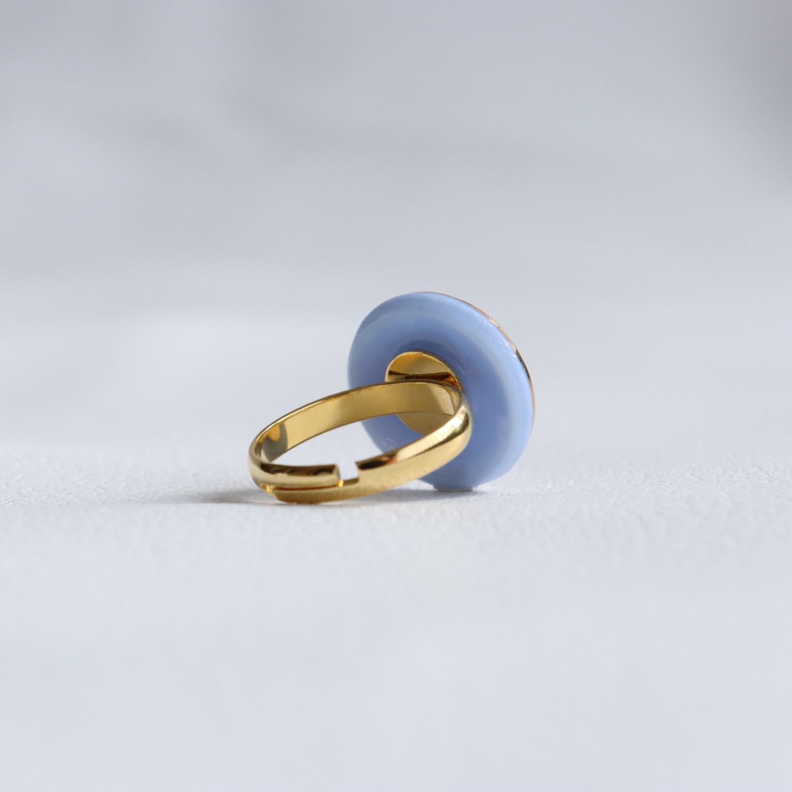 ヴィンテージガラスボタンを加工し指輪を作成しました