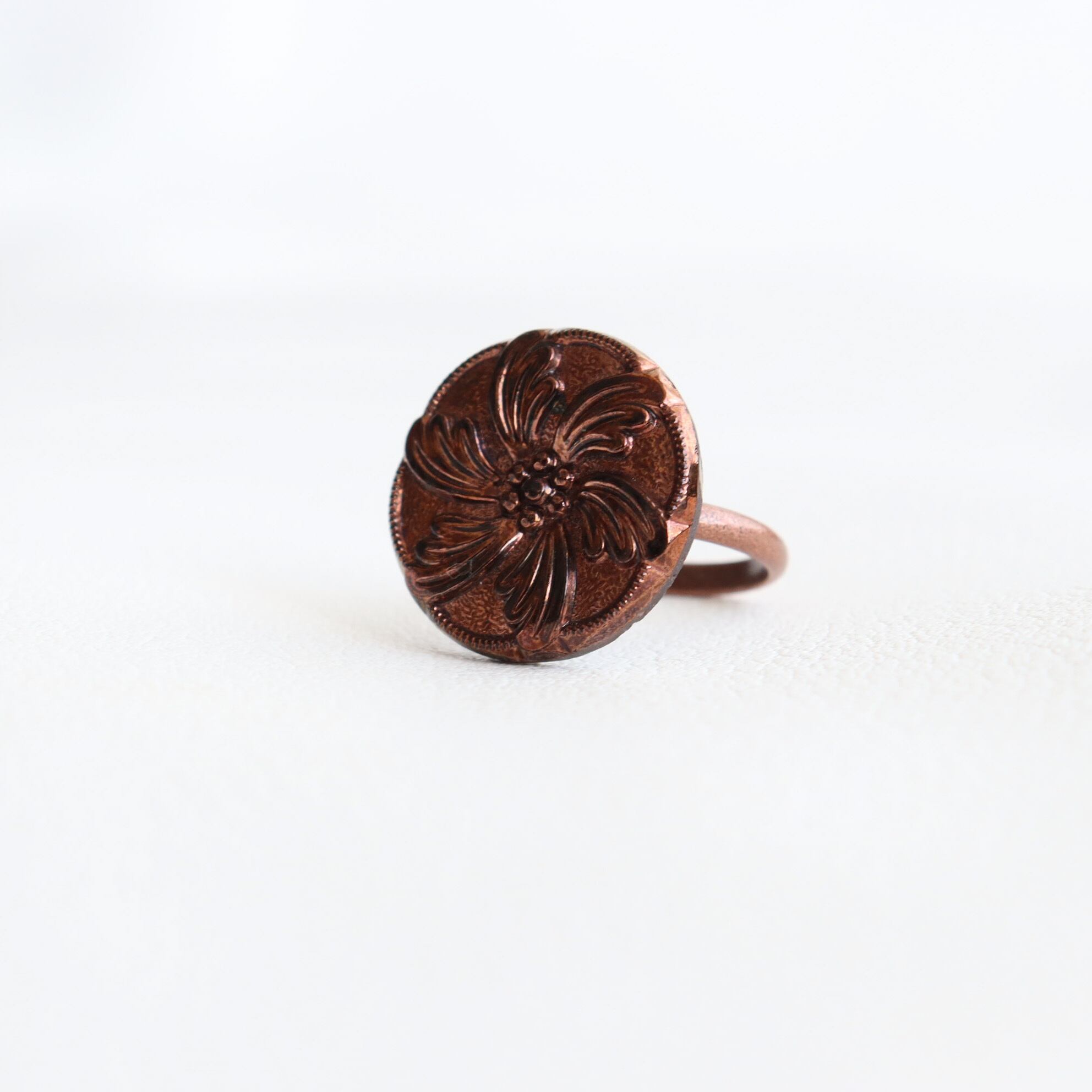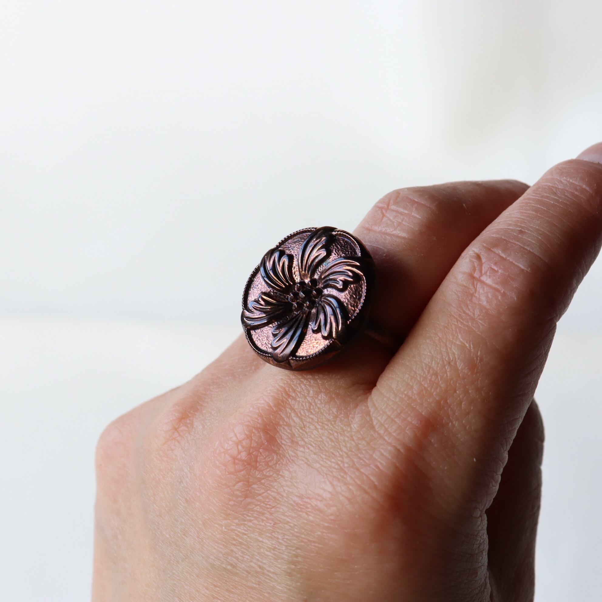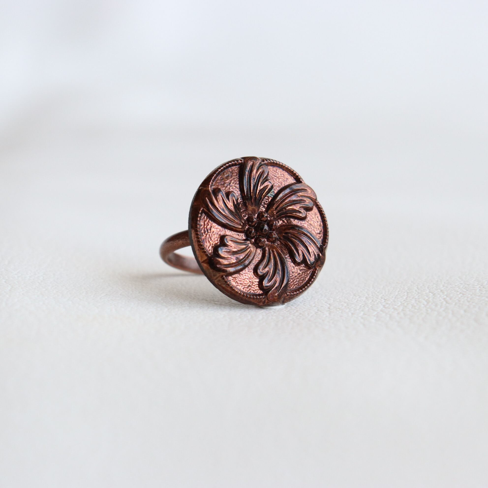 柔らかな銅色が美しい大きなボタンの指輪のご紹介です。