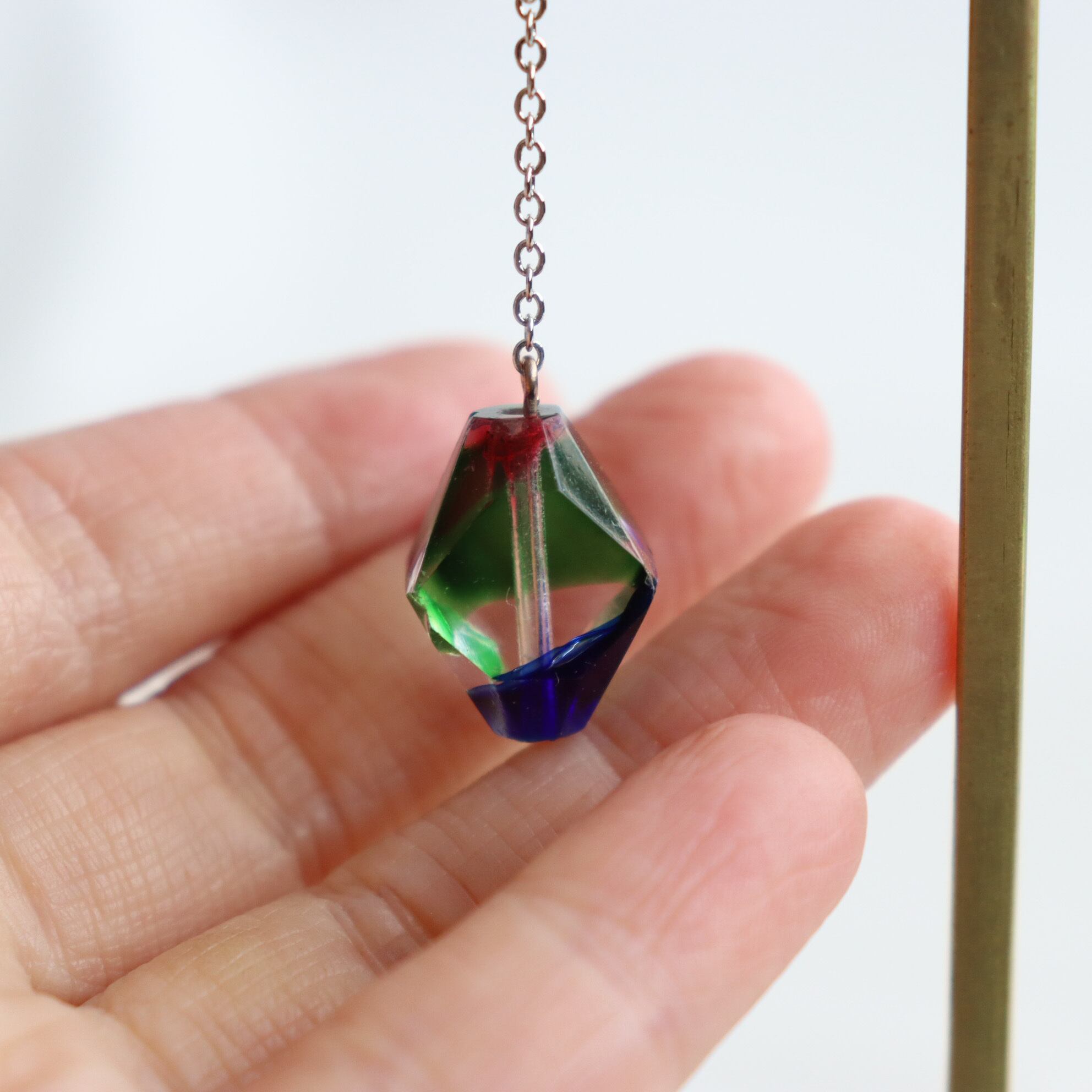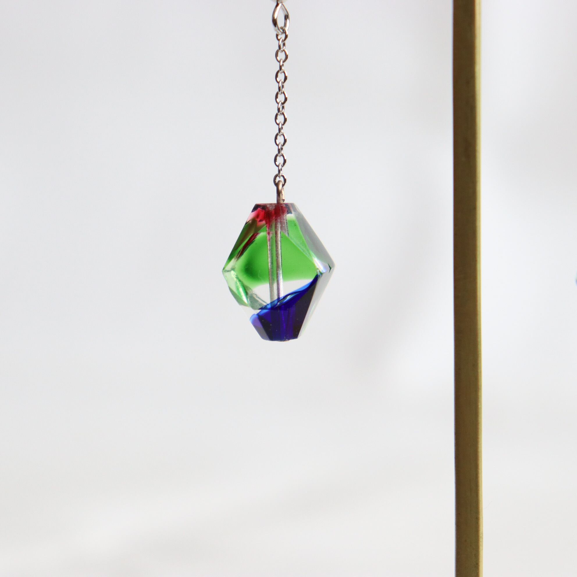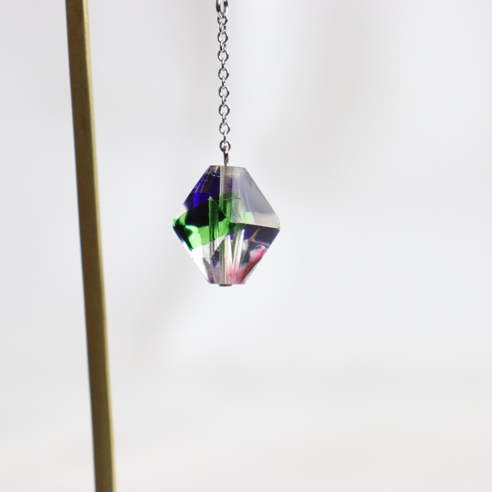 2㎝の大き目ガラスとチェーンを合わせて、揺れる姿が美しいジュエリーに仕上げました。