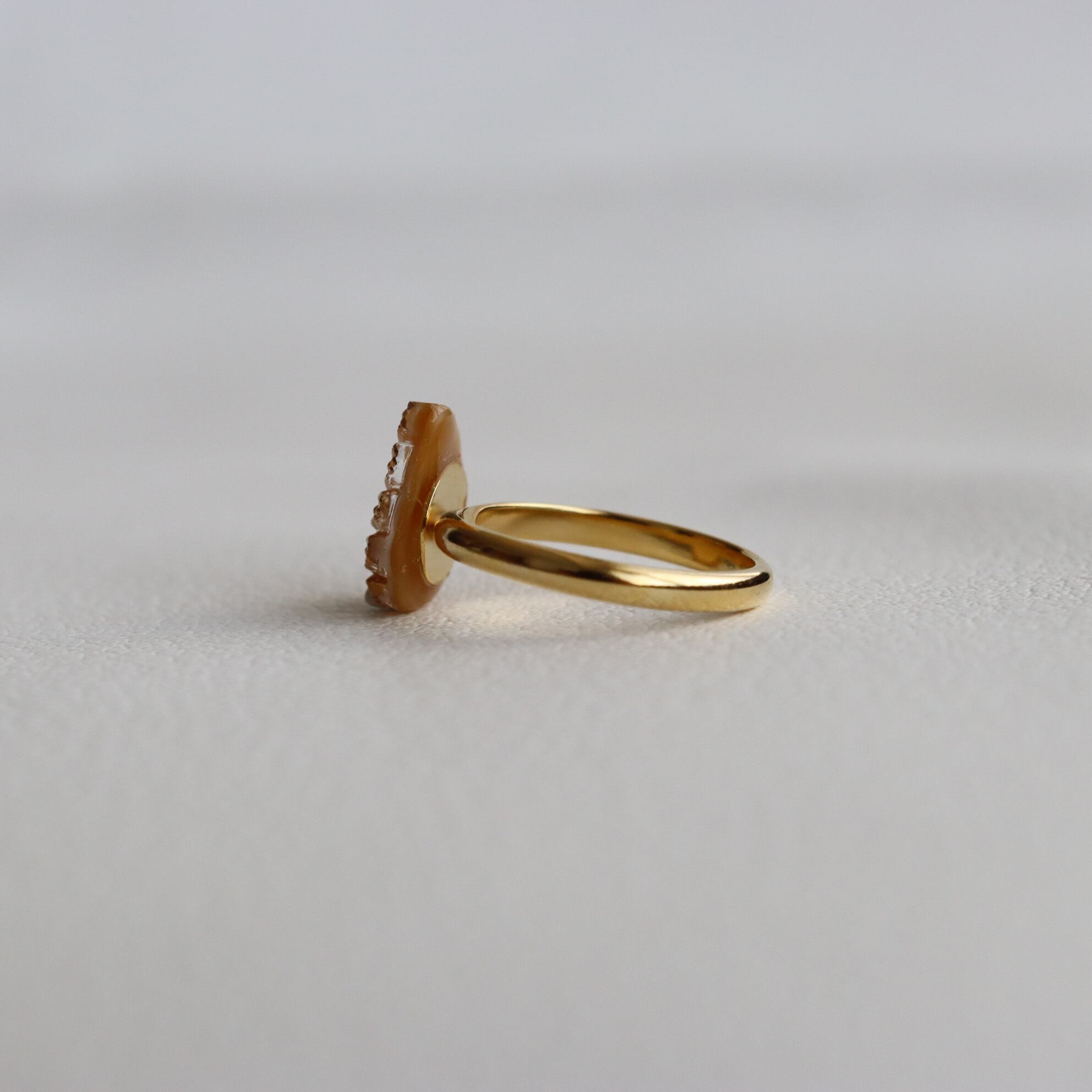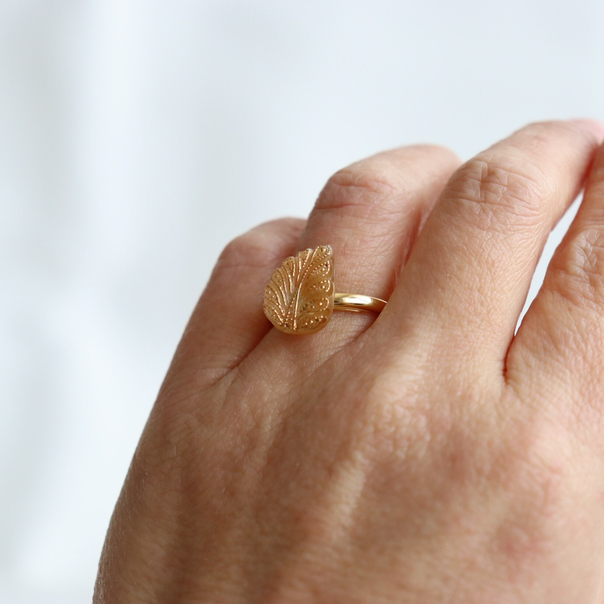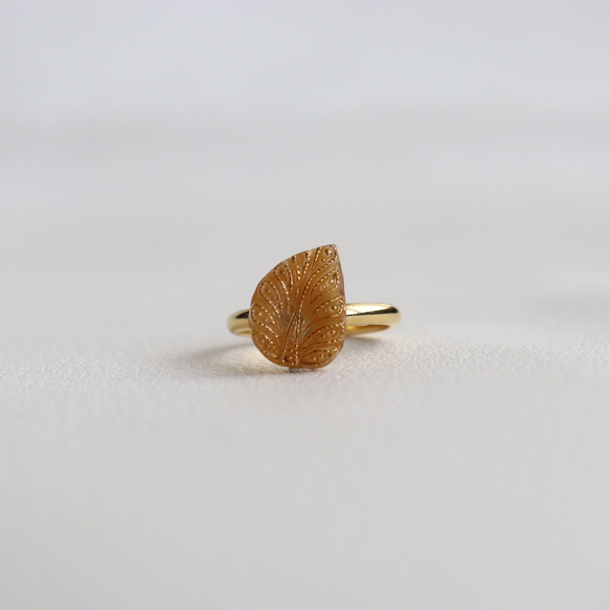 【Thank you sold!】【指輪】 ガラスの葉っぱ オレンジ色