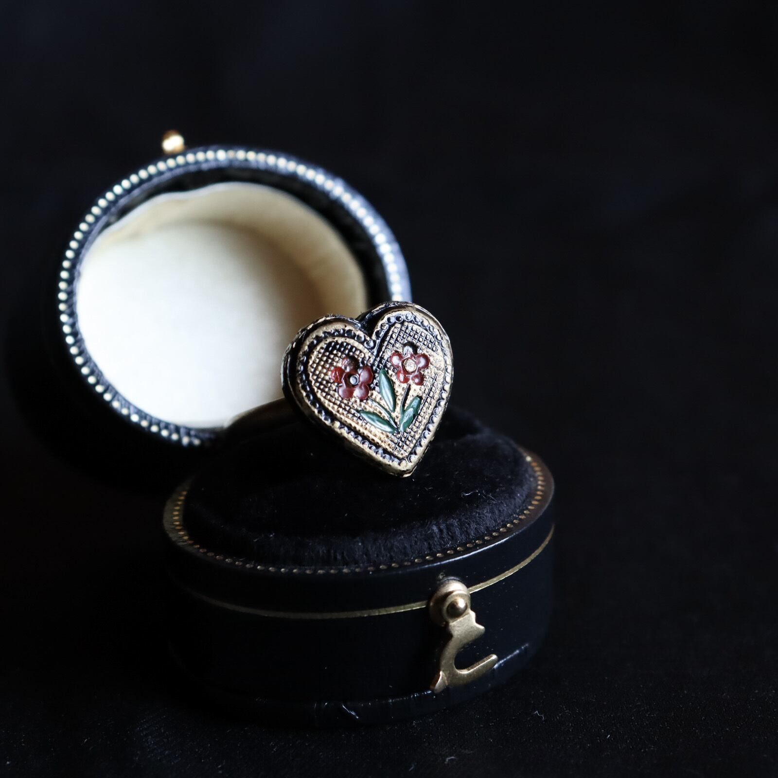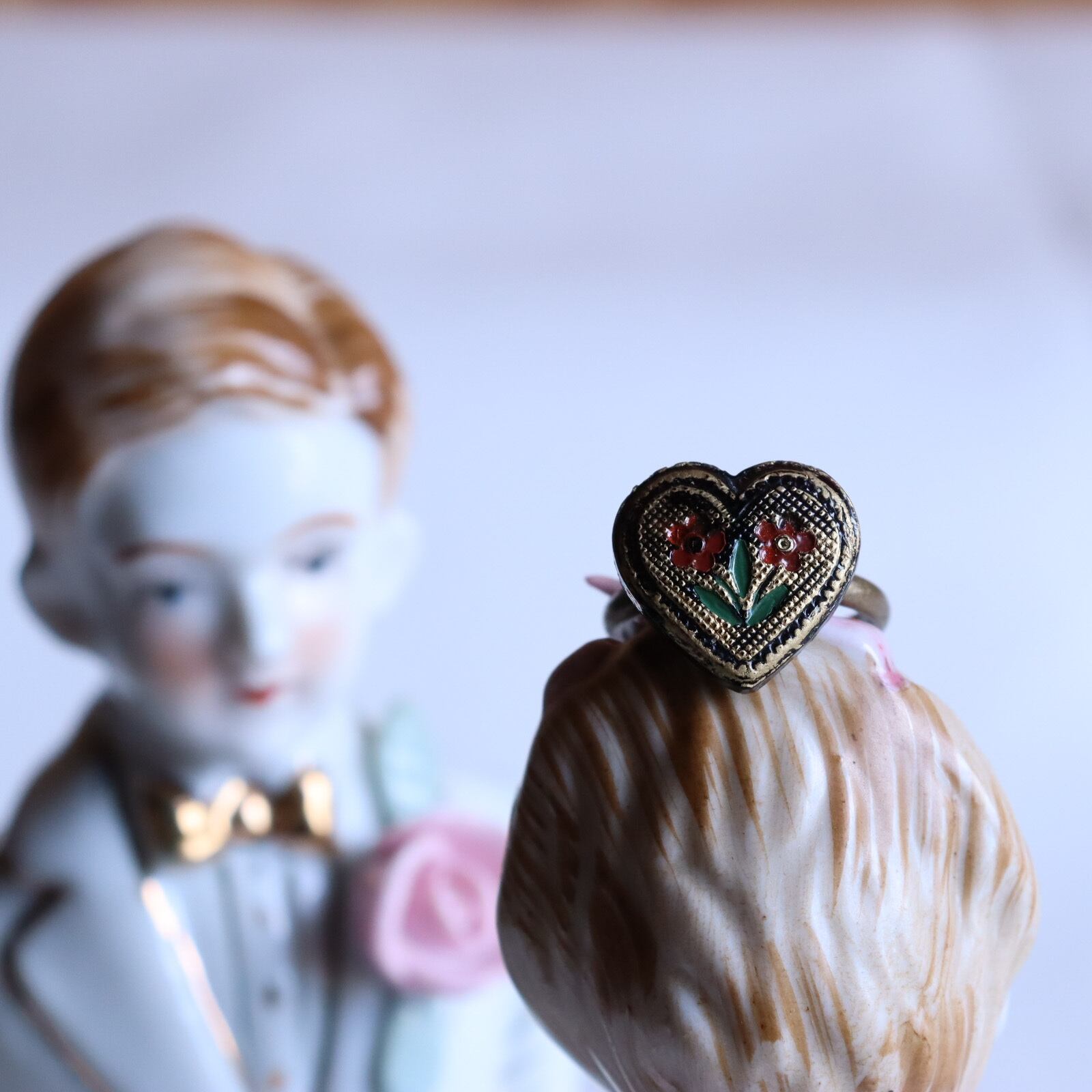 海外製ヴィンテージボタンを加工して可愛いのに、大人クラシックな雰囲気を纏った指輪を製作しました。