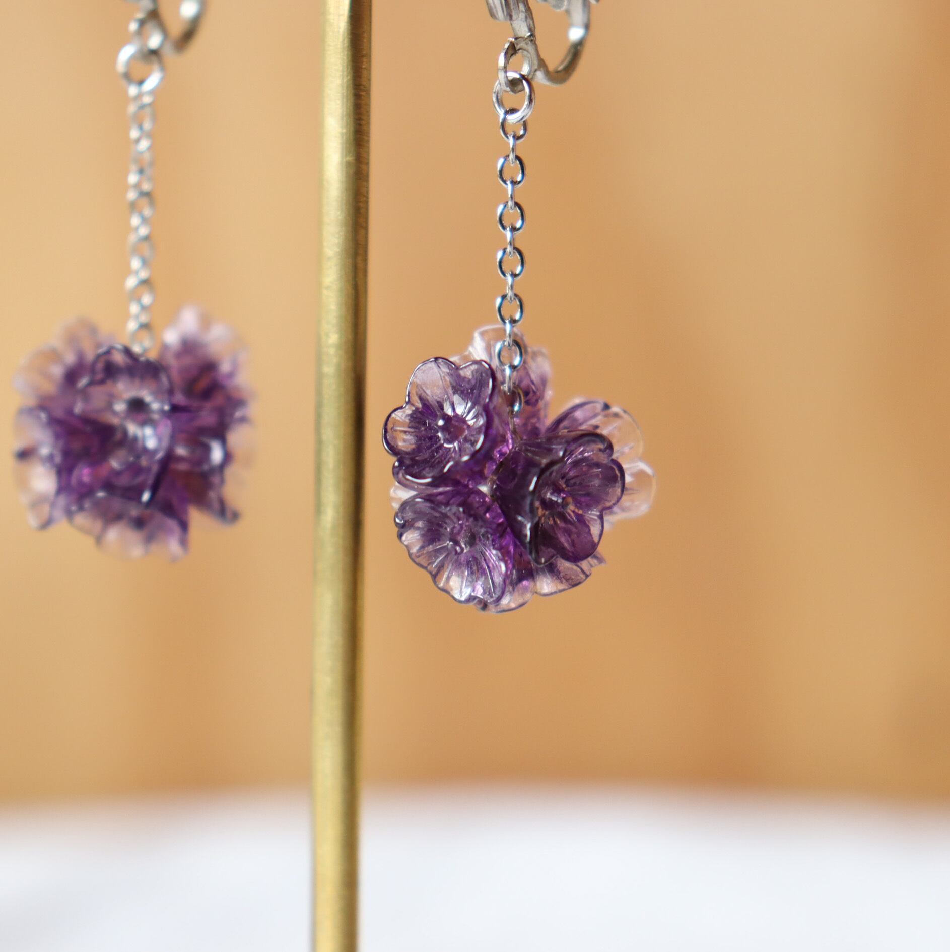 【thank you sold】【ピアス又はイヤリング】 花玉 (紫色)