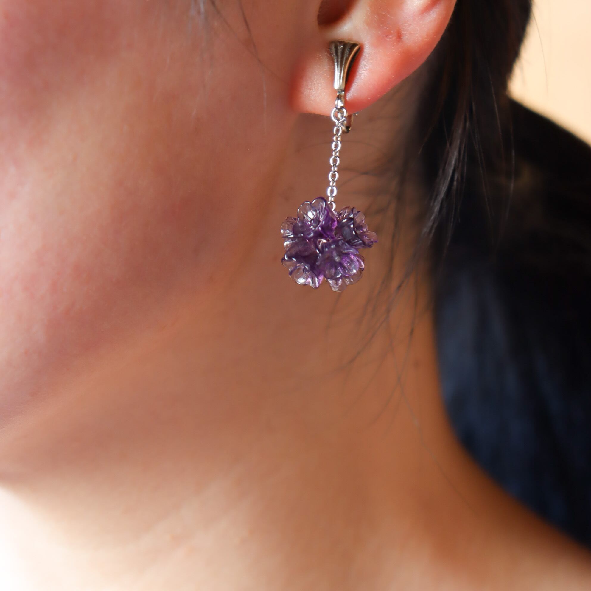 2㎝のチェーンを合わせて耳元で優しく揺れるデザインに。