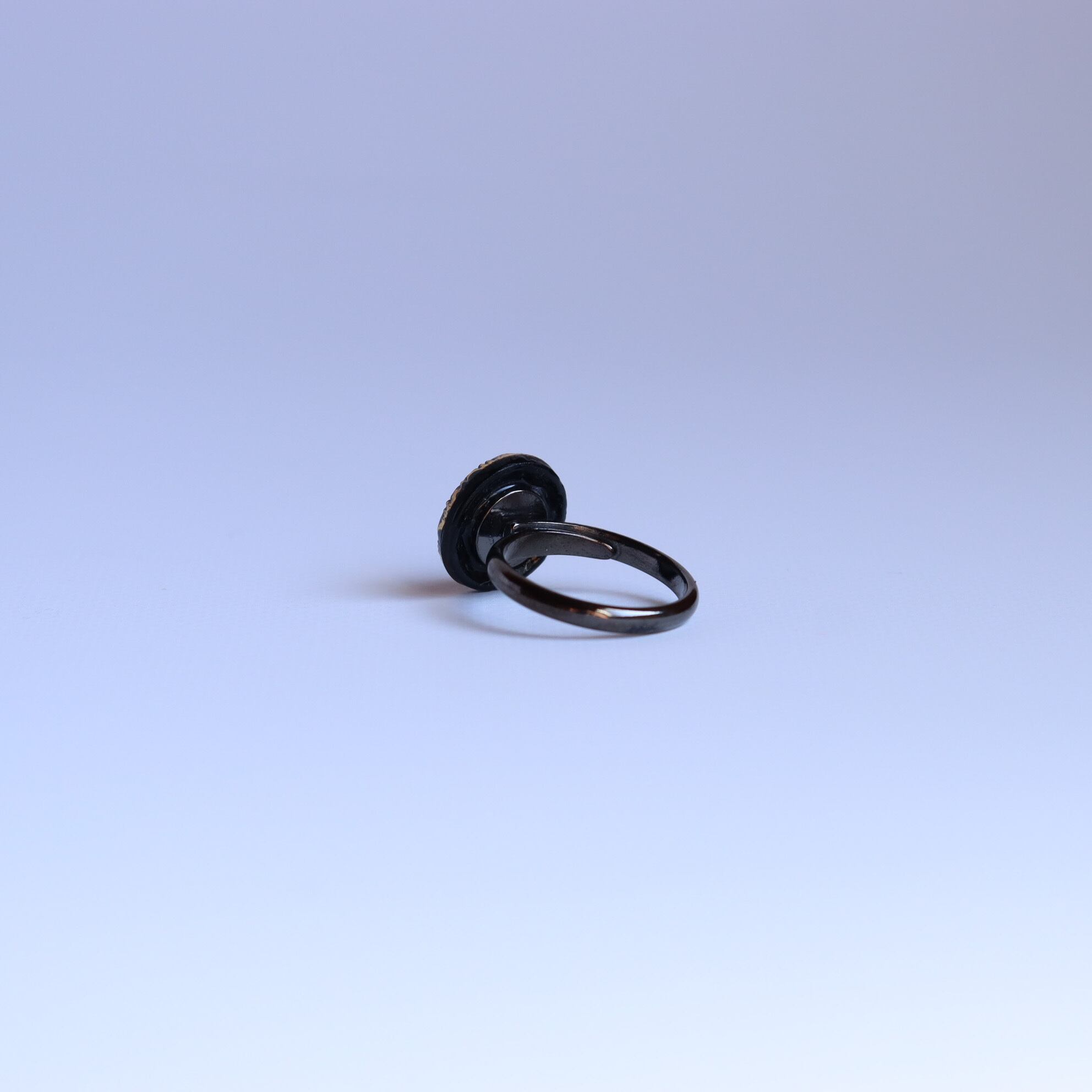 海外製のヴィンテージガラスボタンを1つ1つ加工して作成した