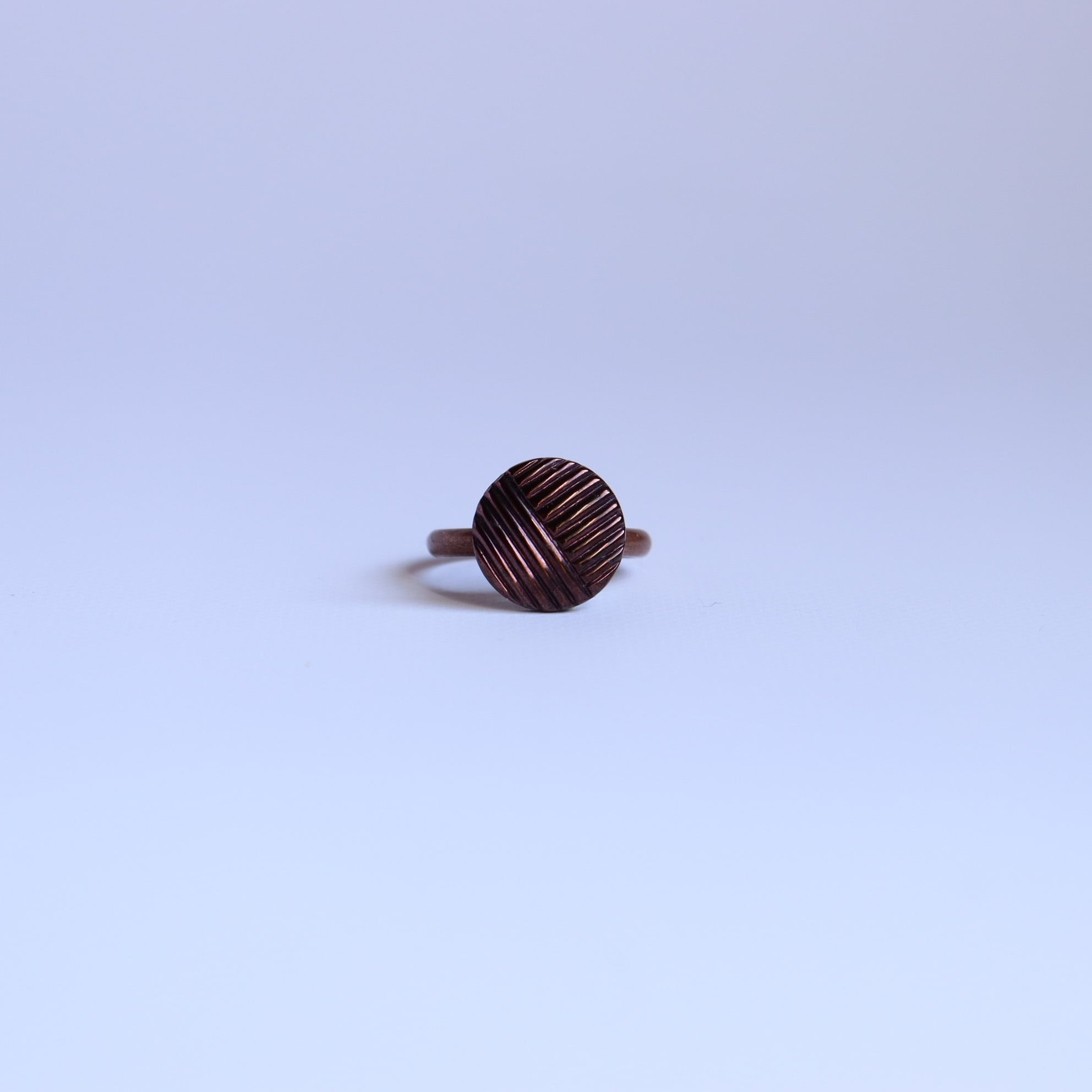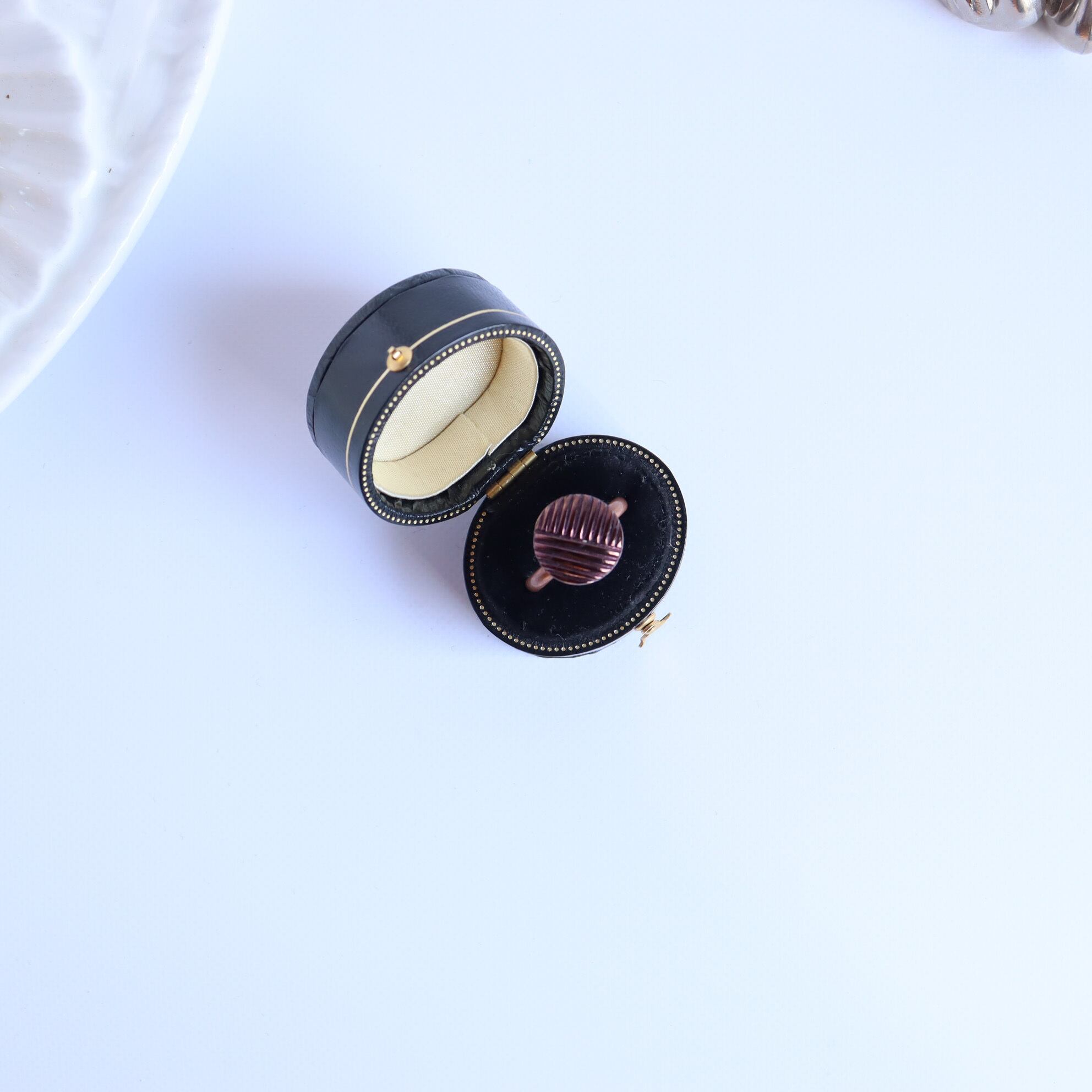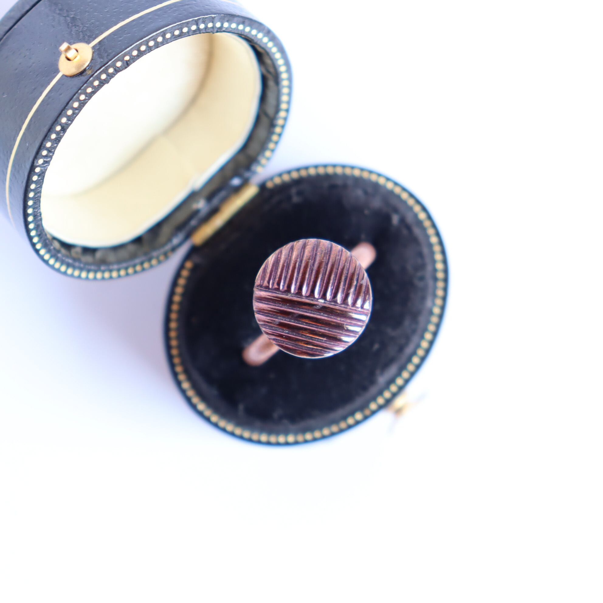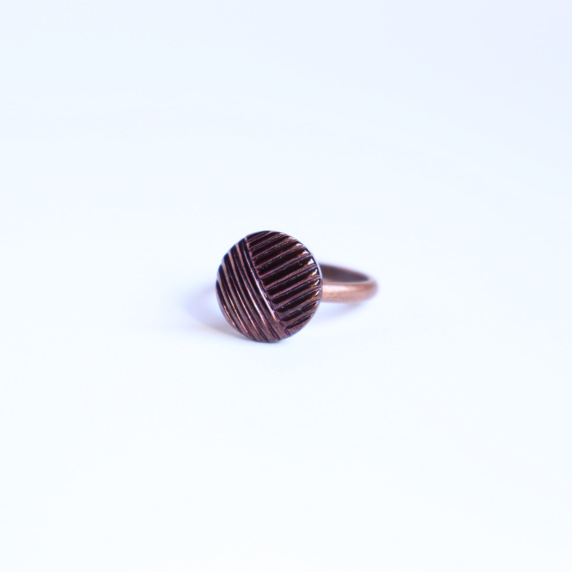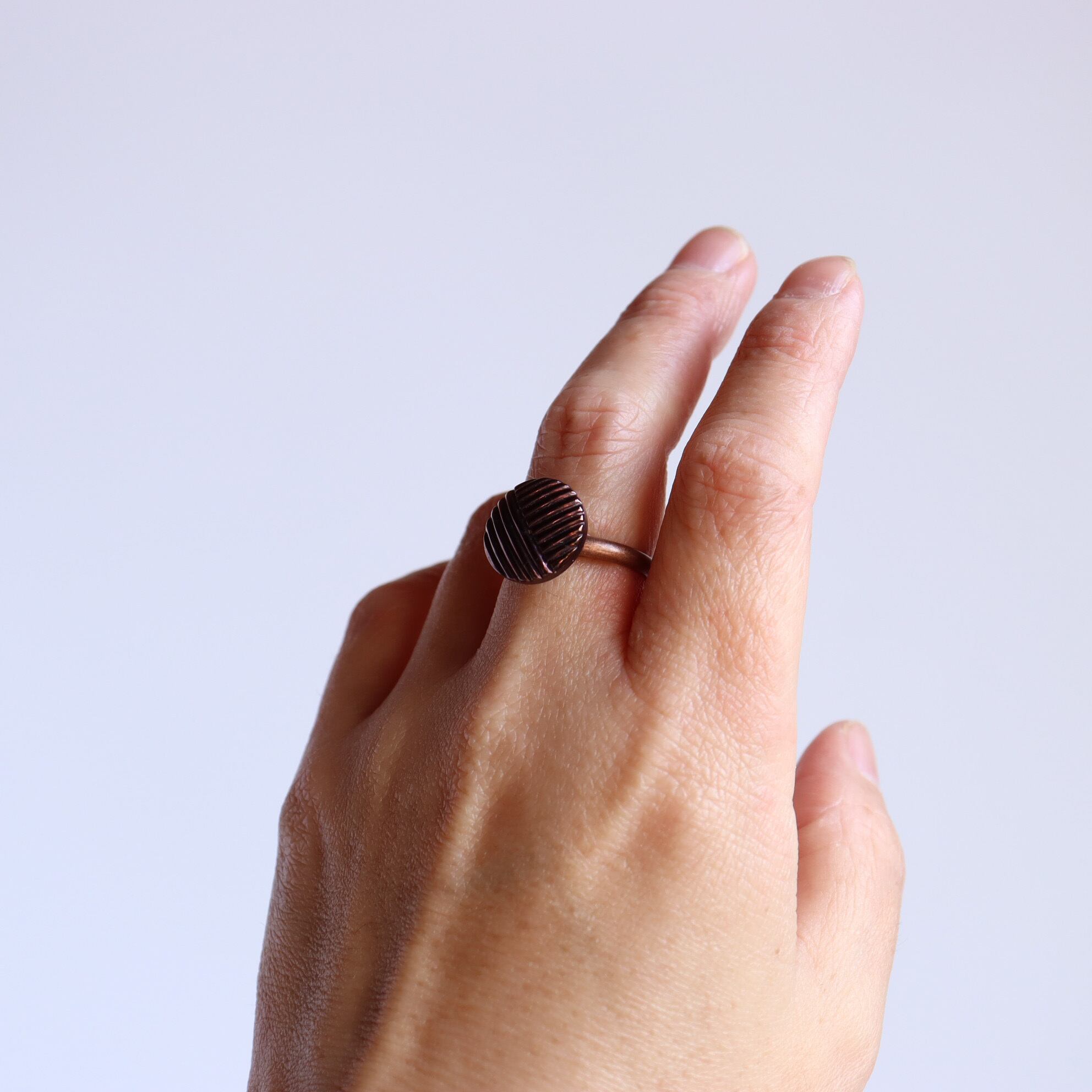 海外製のヴィンテージガラスボタンをひとつひとつ丁寧に加工してお作りした、世界にひとつだけの指輪です。